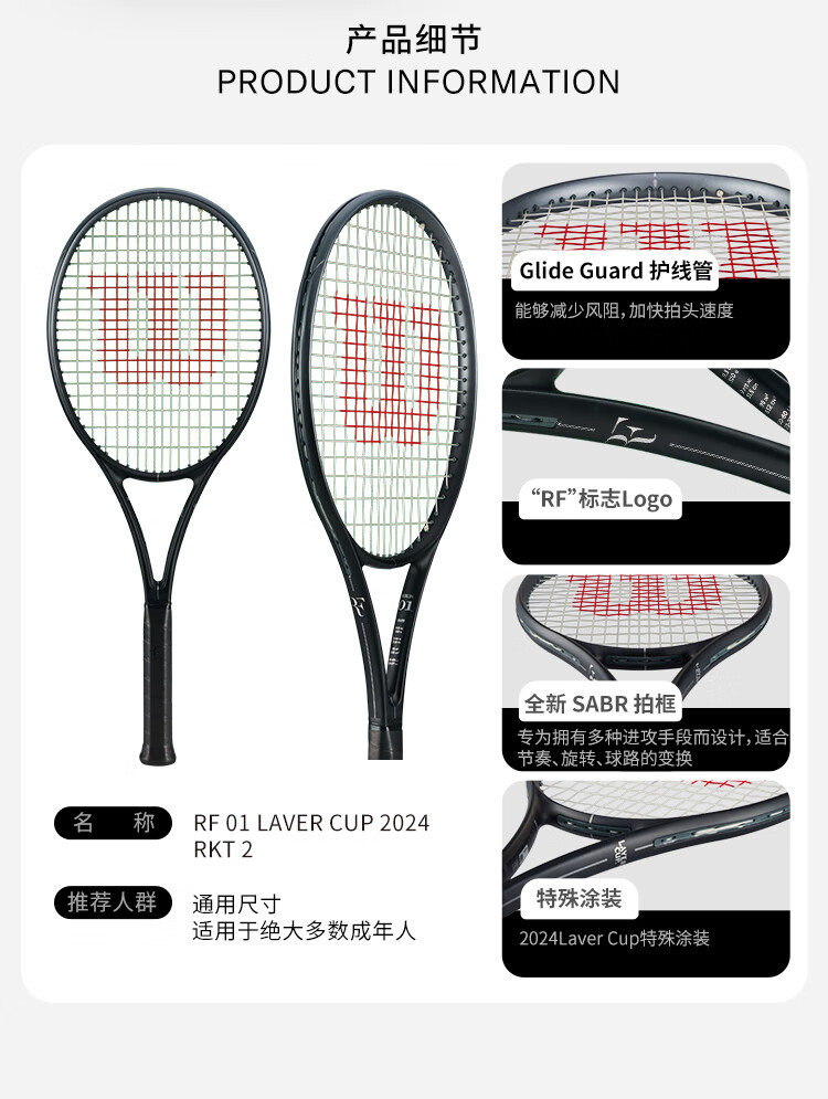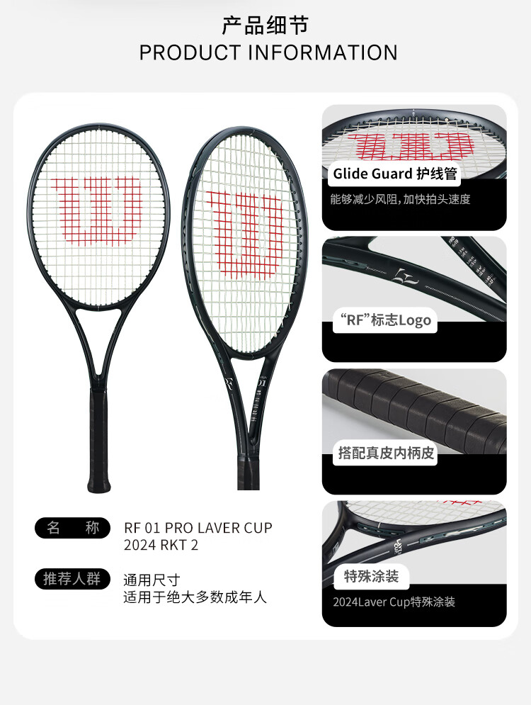 威尔胜(Wilson)RF 01系列费德勒参与设计全碳素一体专业网球拍 【RF Future】WR166811U2