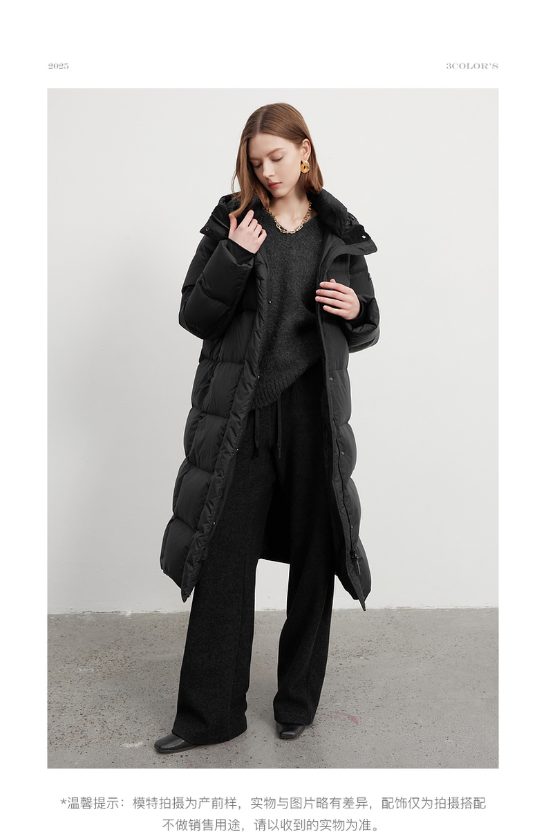 【95白鹅绒】三彩2025冬季新款鹅绒服长款羽绒服防水被子服S