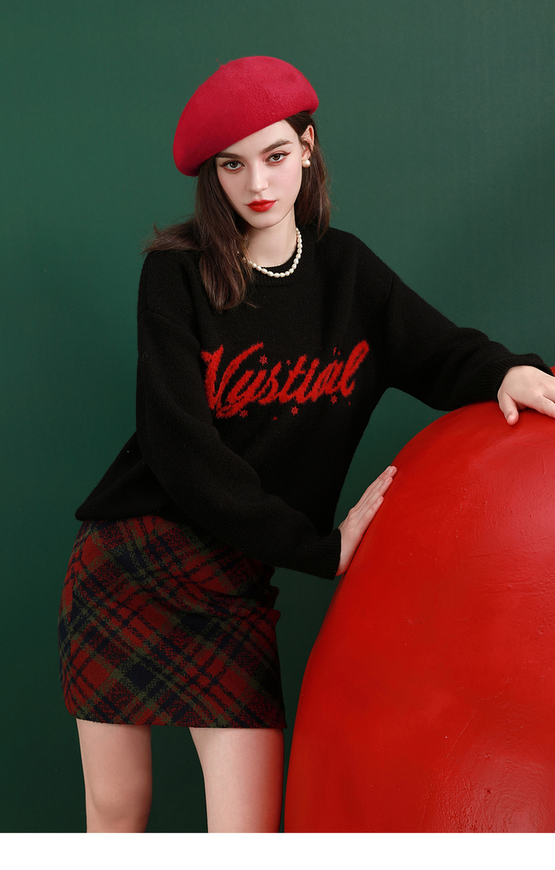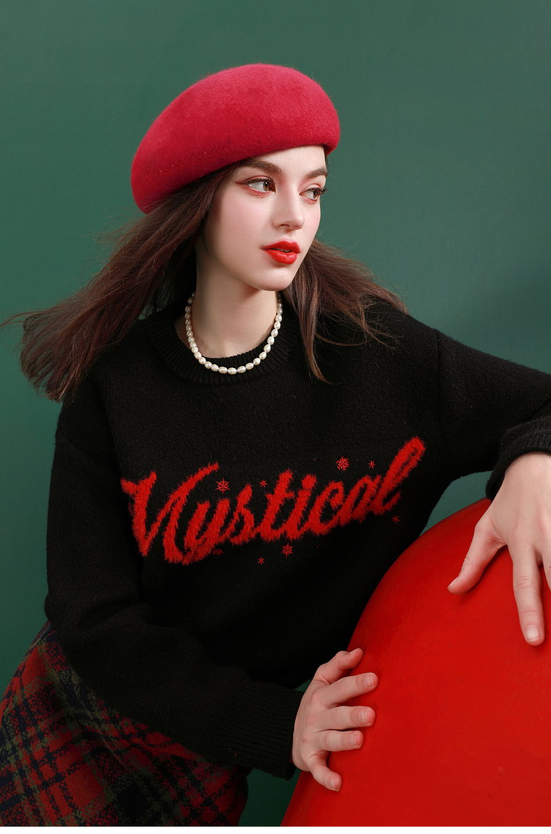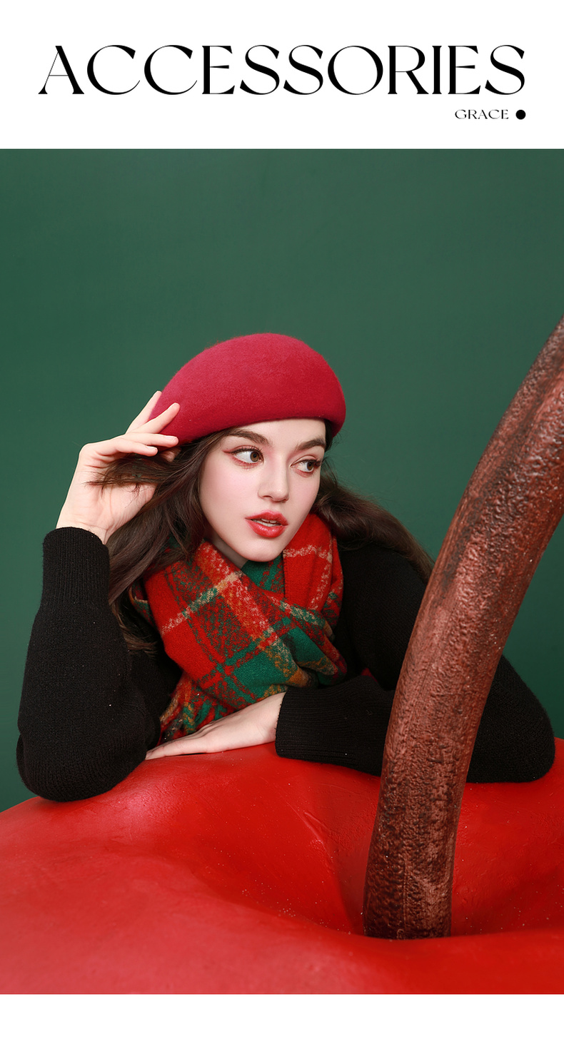 三彩2024新款秋冬绵羊毛贝雷帽保暖帽子本命年红色帽显脸小复古