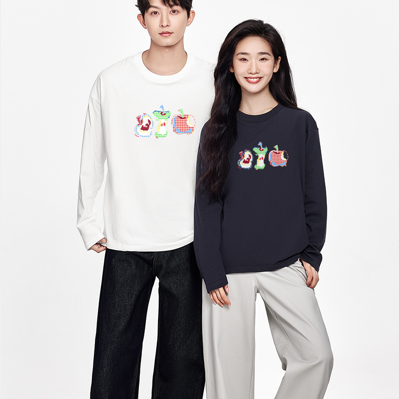 「棉的美学」彩色格纹苹果长袖T恤女小众设计感日系休闲打底上衣