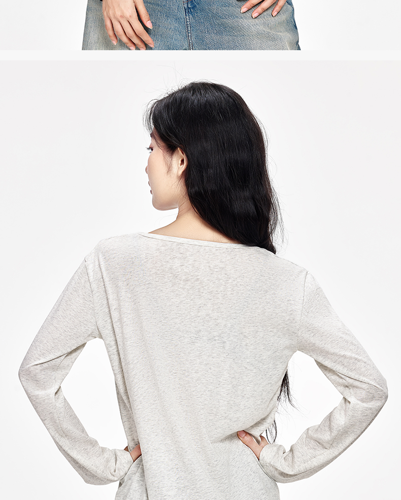 「棉的美学」203g纯棉字体印花T恤秋季薄款内搭日常简约长袖上衣