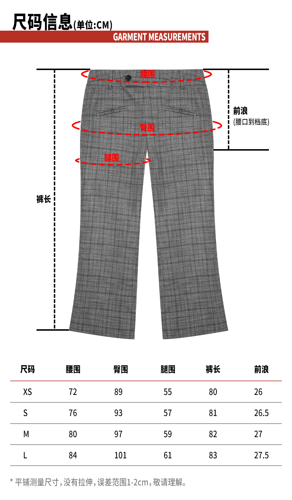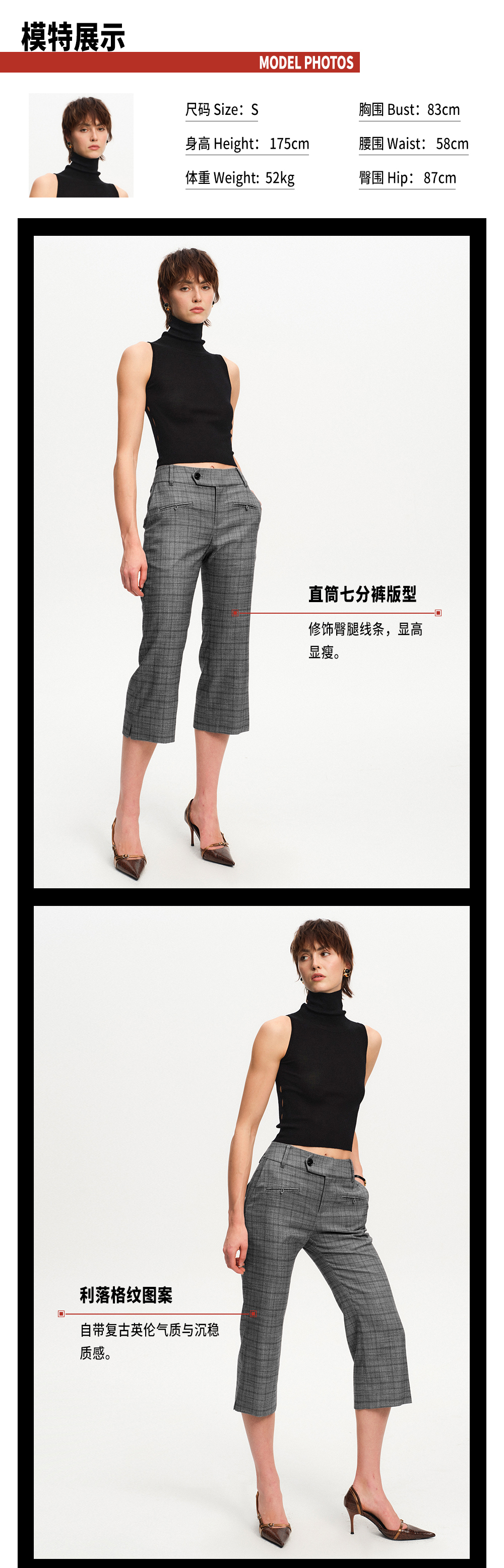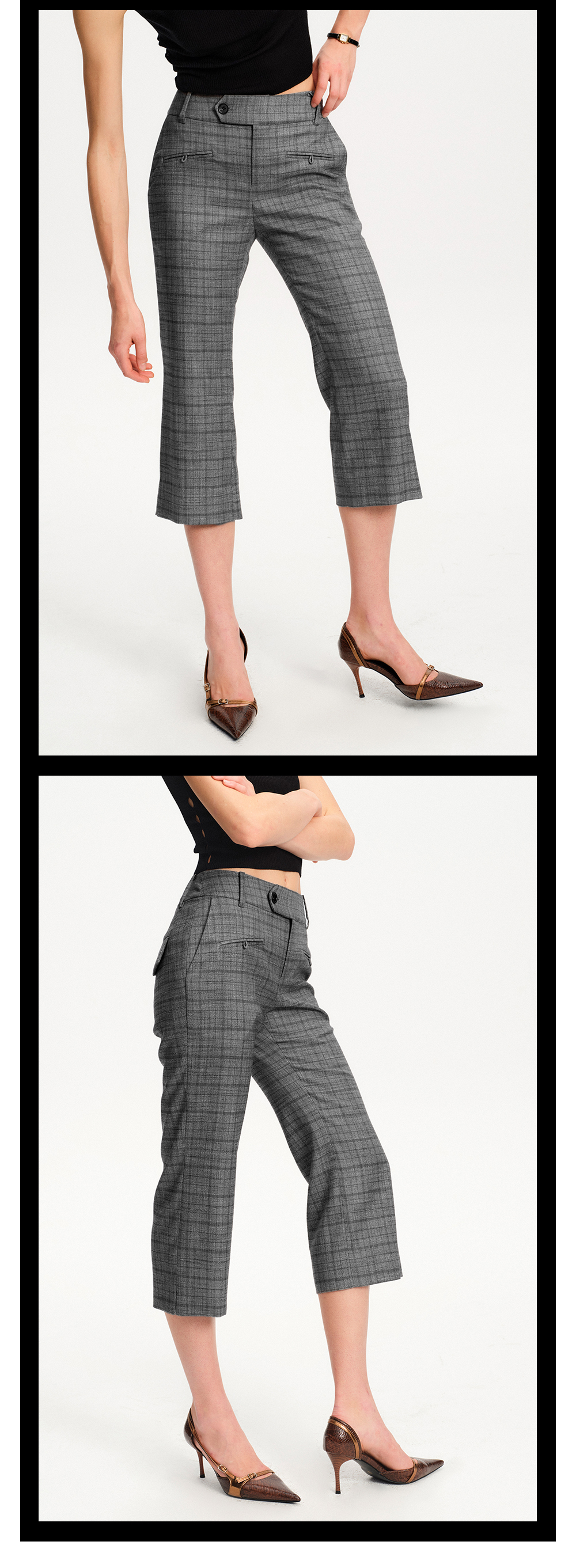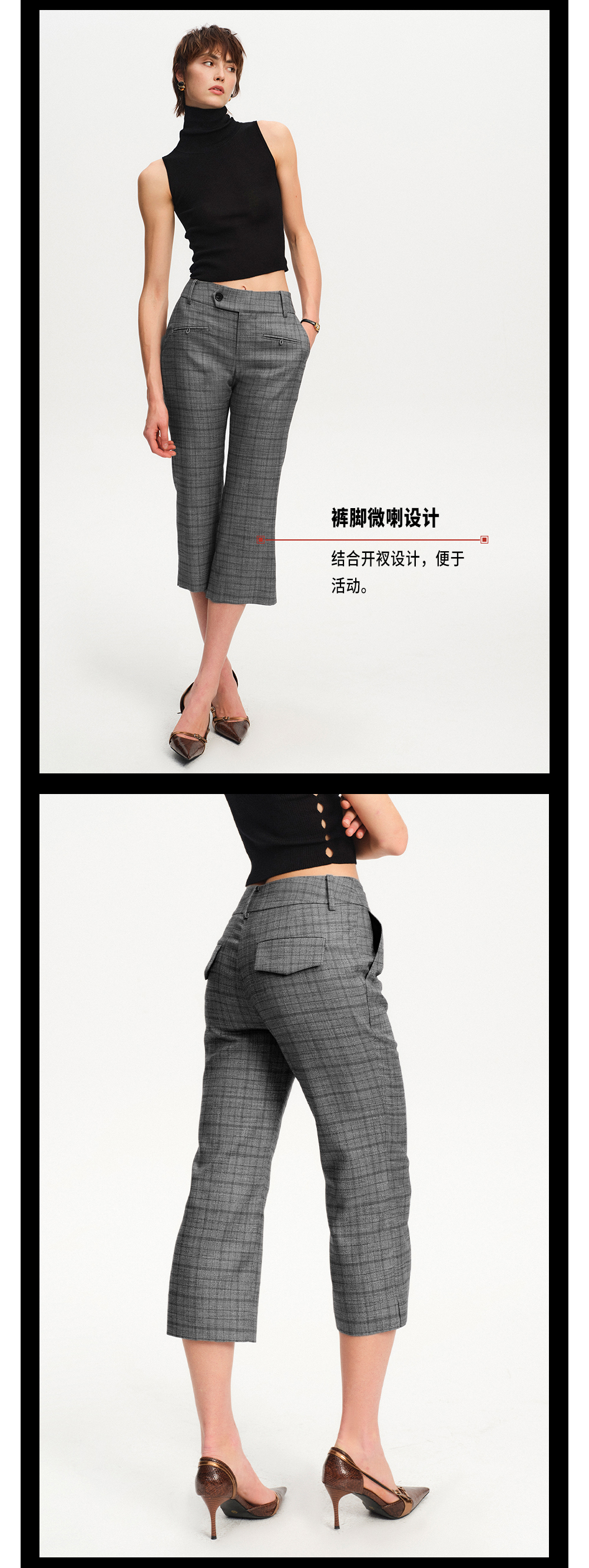 TR她热 柏林漫步 灰色格纹开衩复古通勤简约七分直筒微喇西装裤