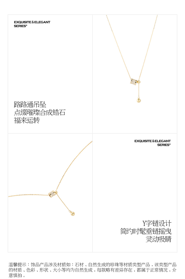 三彩2026新款路路通吊坠Y字项链轻奢锆饰个性通勤约会设计感简约