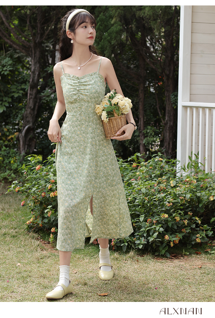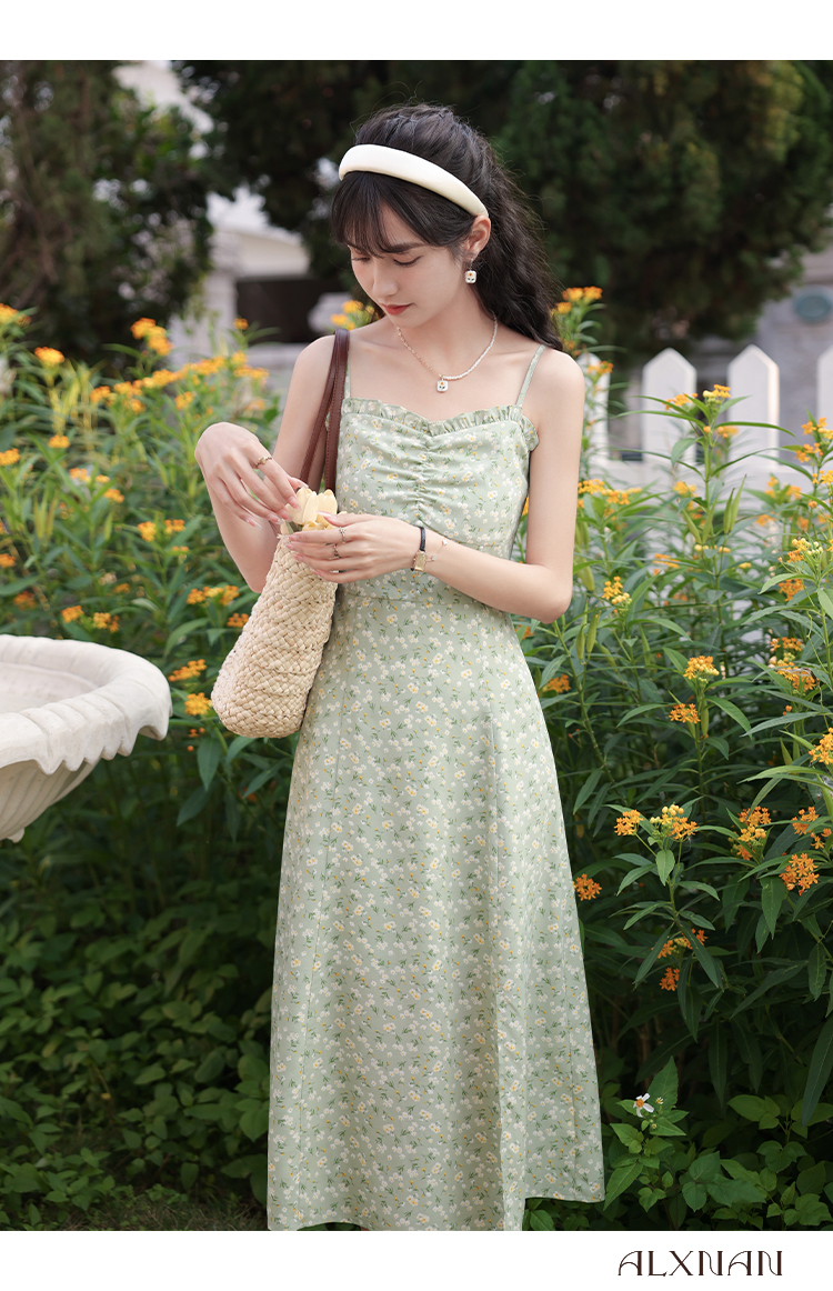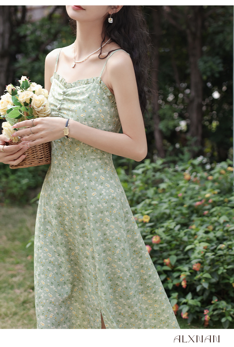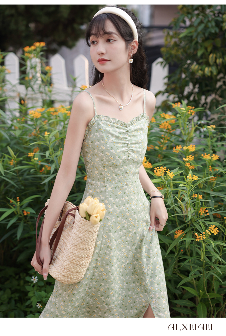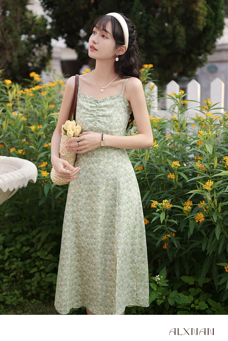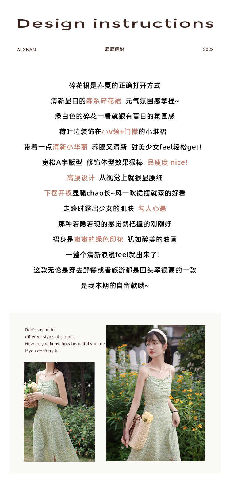 【65折秒杀】鹿向南《绿茵丛林》法式碎花收腰吊带裙小个子女夏设计感连衣裙子LXN29092