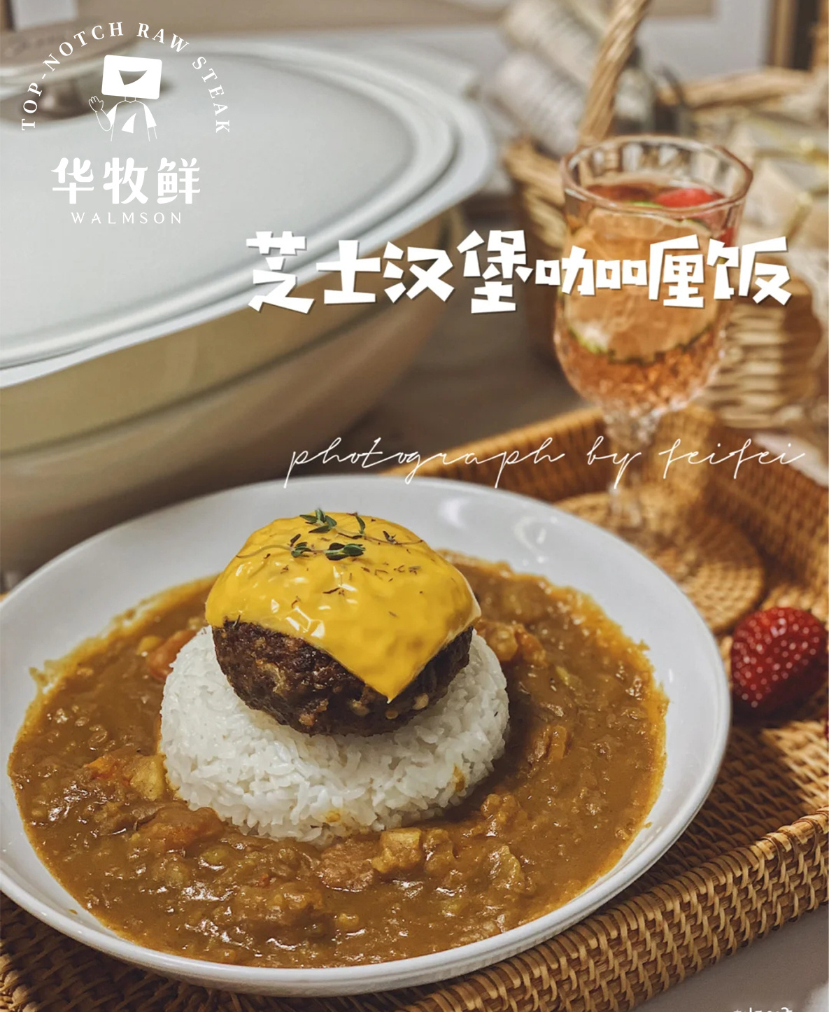 芝士汉堡咖喱饭:牛肉的汁水混合着咖喱的辛辣✅