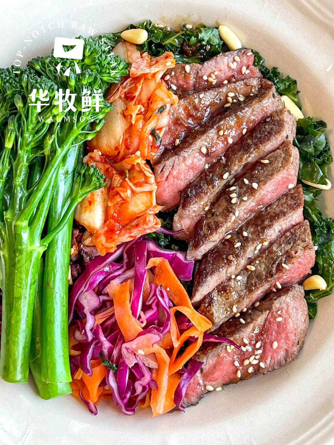 韩式泡菜活力煎牛排能量碗👍 肉眼又嫩又香,咬一口直接biu汁、肉感无敌了。