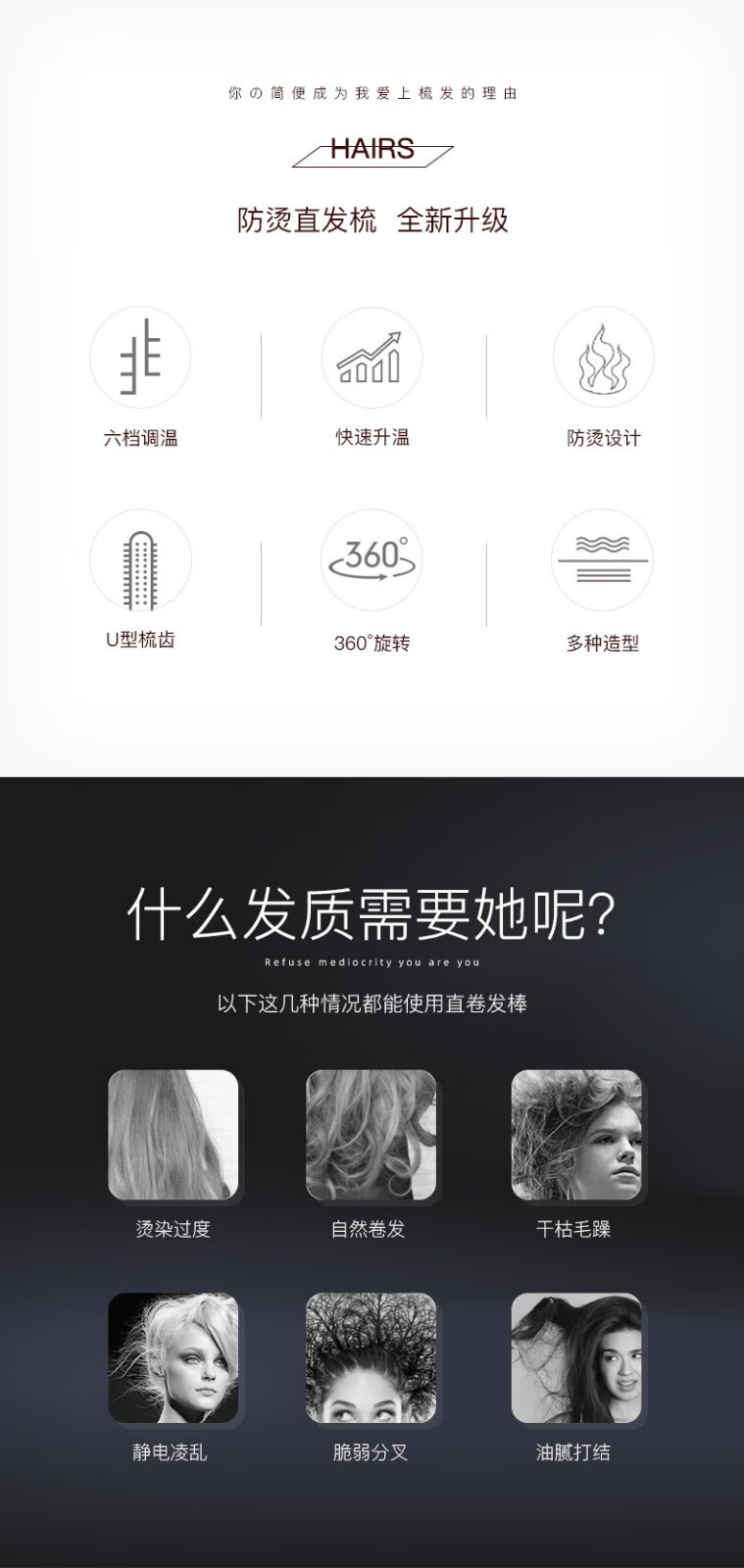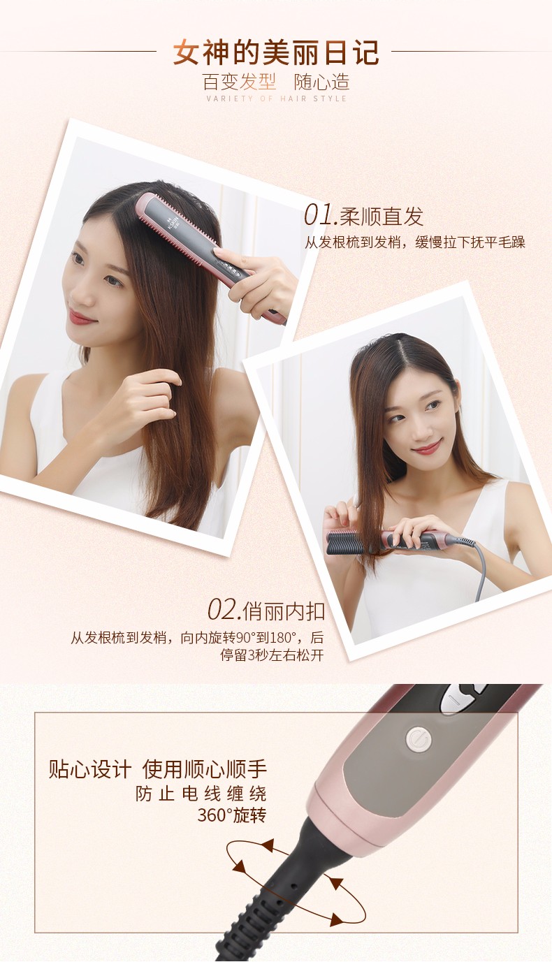 金稻 K-SKIN直发梳负离子卷直发棒两用电梳子夹板防烫直发器 情人节礼物送女友 38妇女节礼物 生日礼物 KD383白色