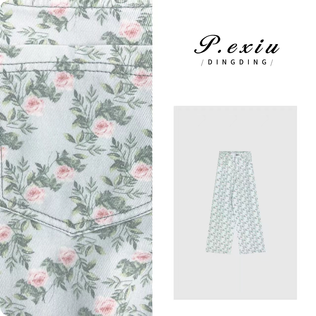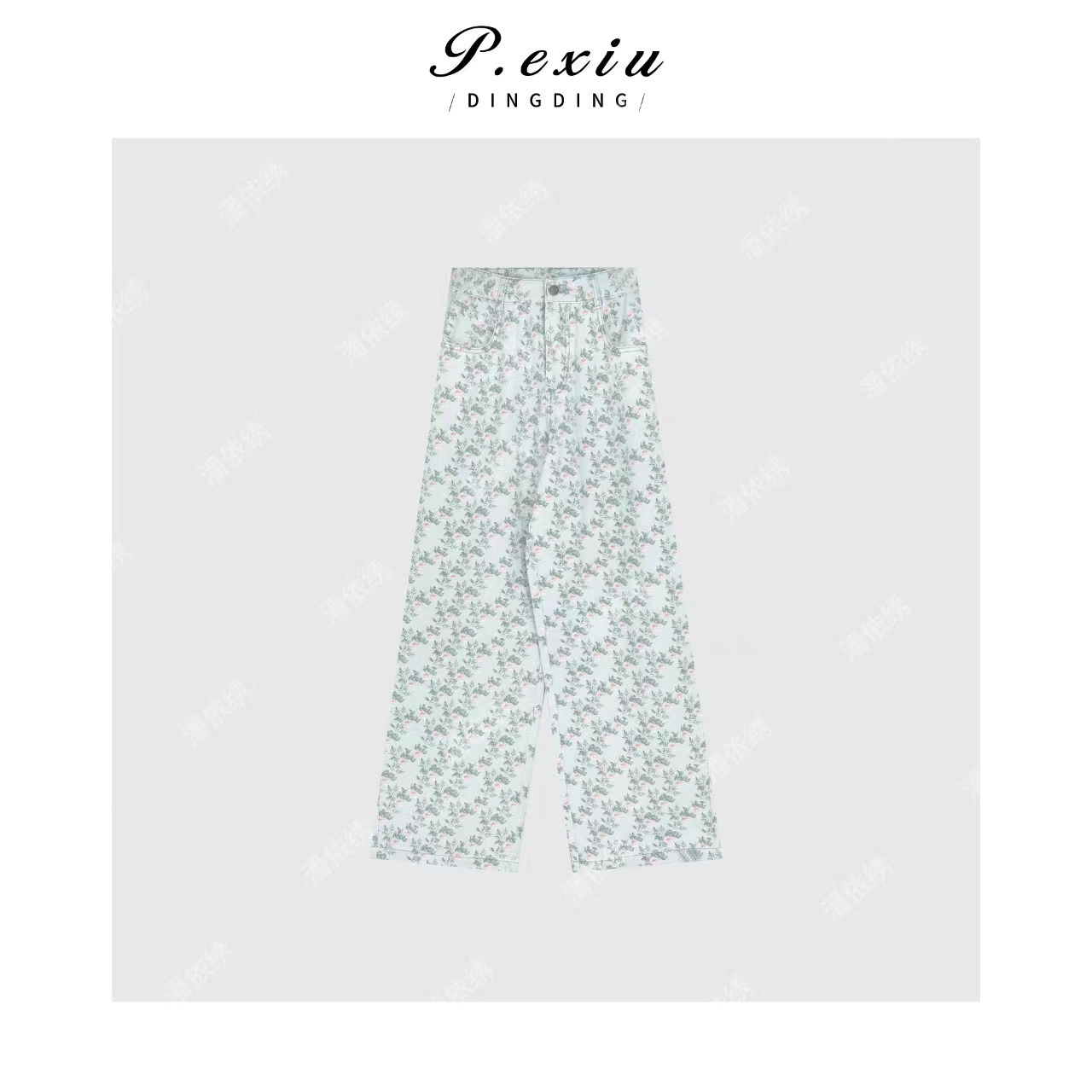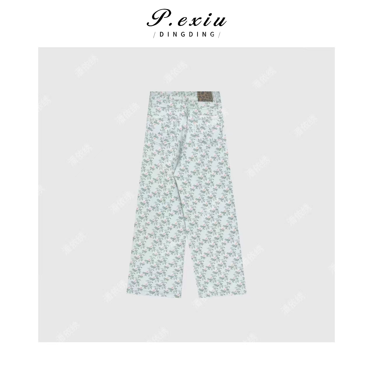 03-4潘依绣丁丁宠粉PanYiXiu/潘依绣【花园日记】100%棉花朵满印直筒牛仔裤 D6579
