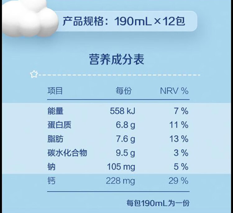 蒙牛 未来星双原生纯牛奶全脂灭菌乳利乐苗条装190ml×12包