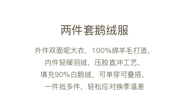 【90白鹅绒】三彩2025冬季新款羽绒服大衣两件套长款连帽M
