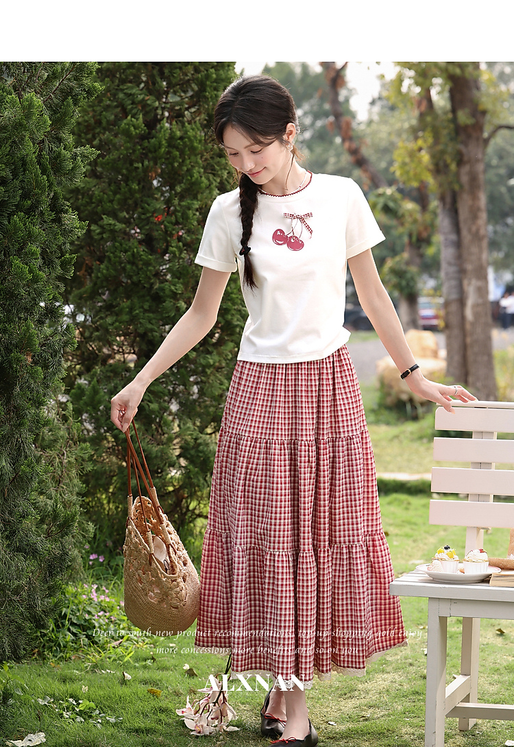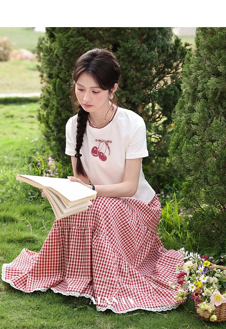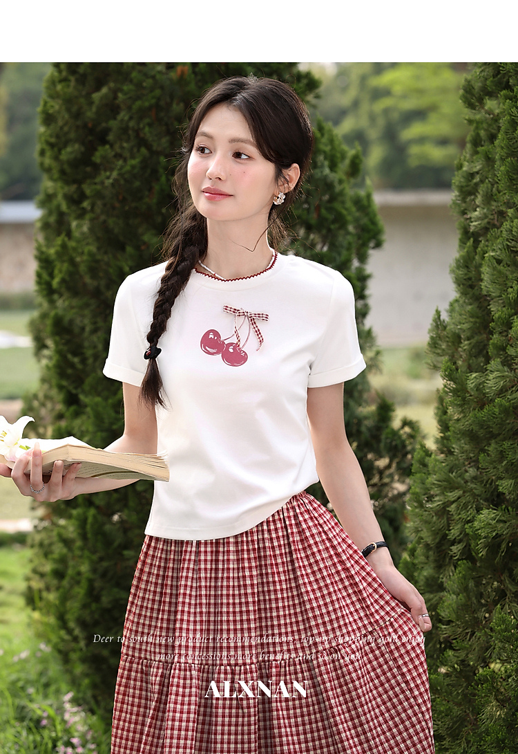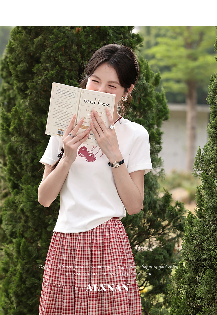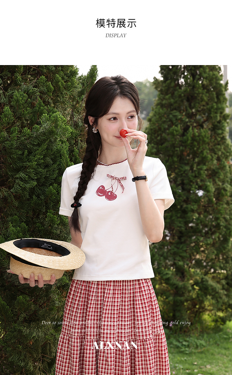 鹿向南【0417/20:00新品前1小时7折限量100件】圆领米白色T恤樱桃