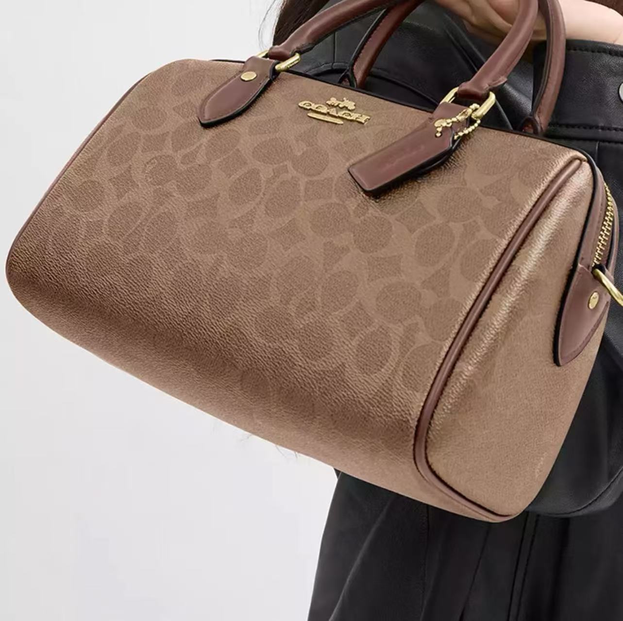COACH Rowan 25 棕褐色拼棕色波士顿手提包
