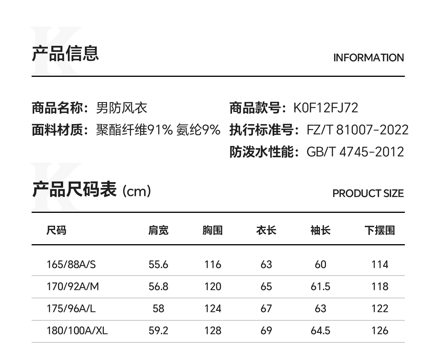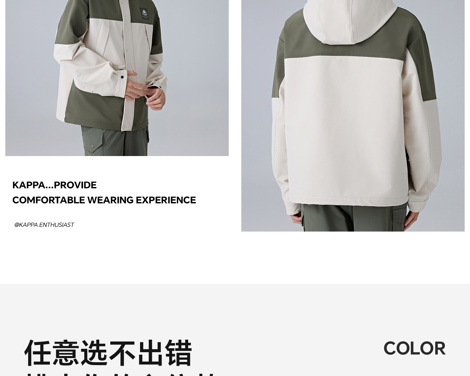 Kappa卡帕背靠背2025新款户外运动防风衣男款防泼水夹克休闲外套K0F12FJ72