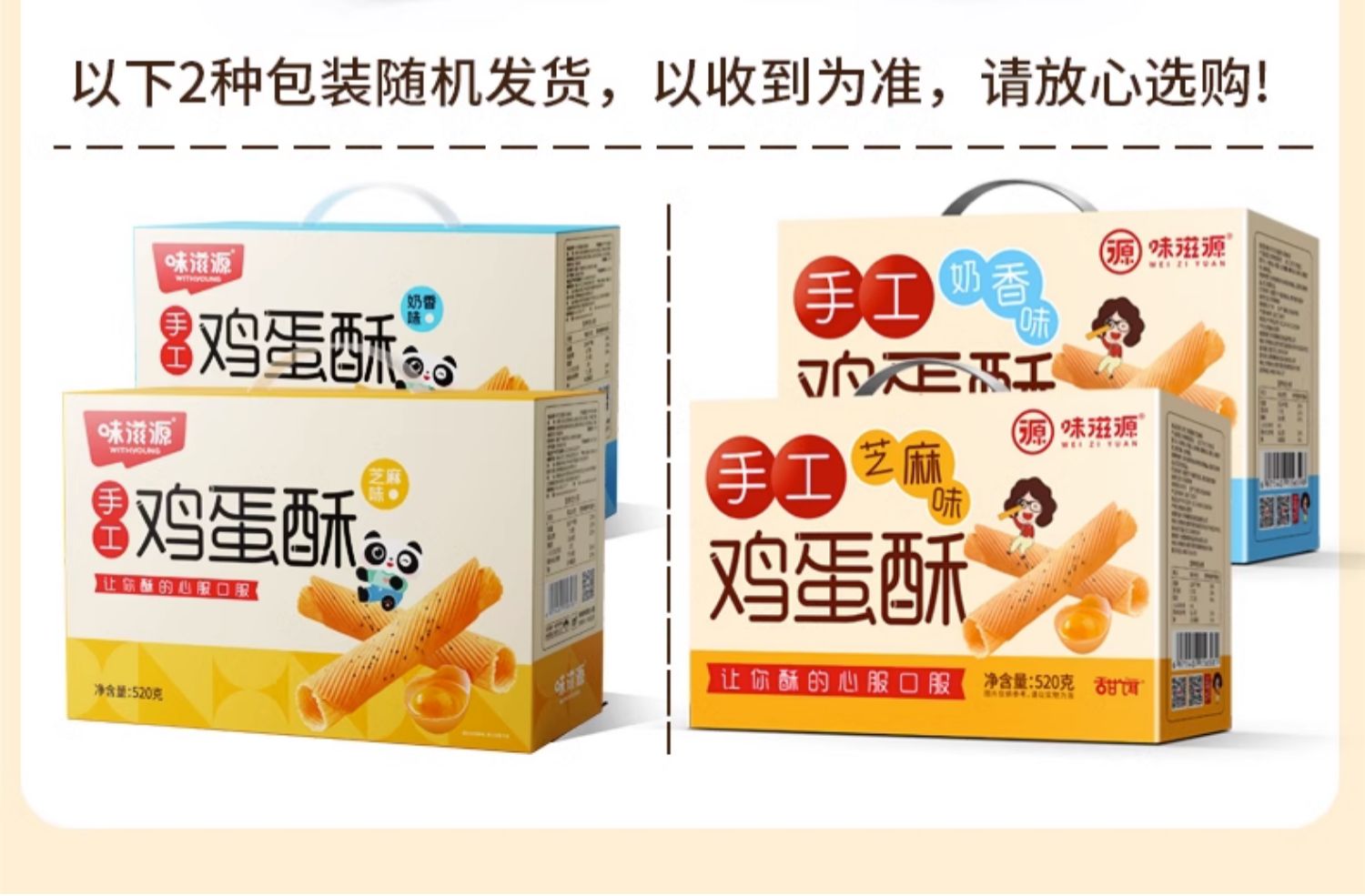 【味滋源】鸡蛋卷酥520g整箱礼盒 零食老式手工蛋黄凤凰卷饼干休闲食品
