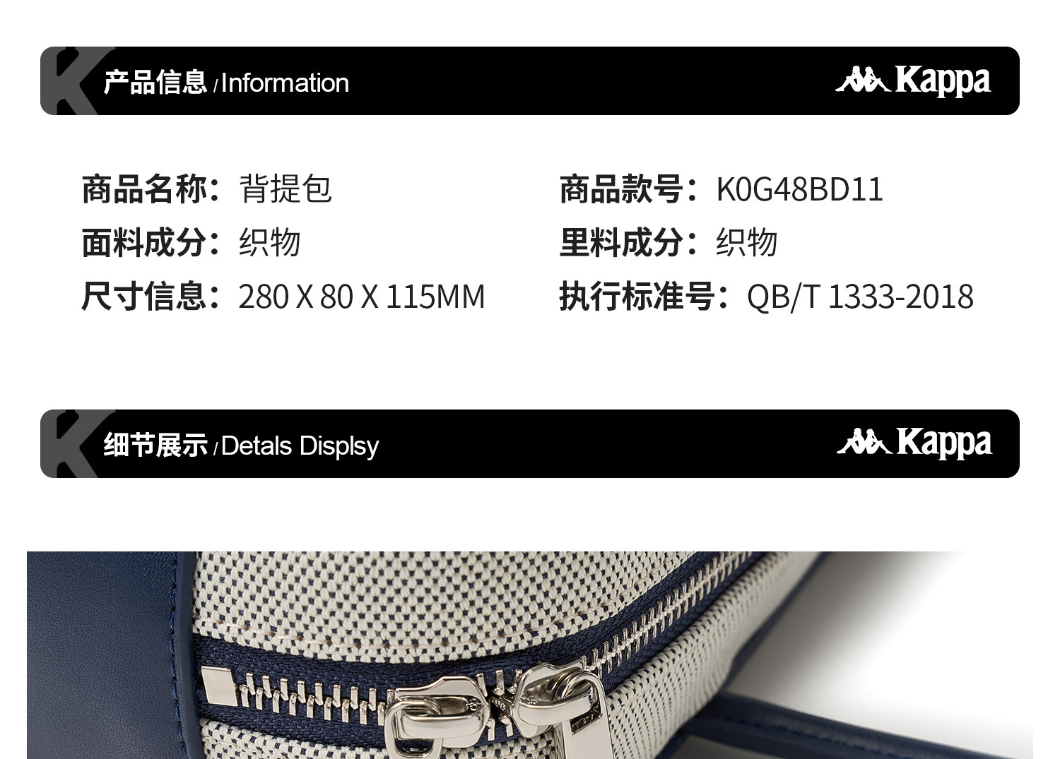 Kappa 卡帕背靠背新款休闲保龄球包手提包男女通用法棍包通勤包K0G48BD11