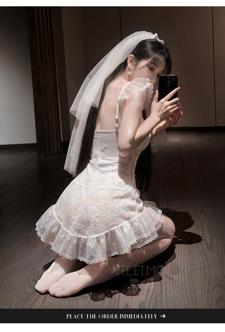 【情趣内衣】霏慕 钢圈棉垫蕾丝透纱鱼尾裙6415