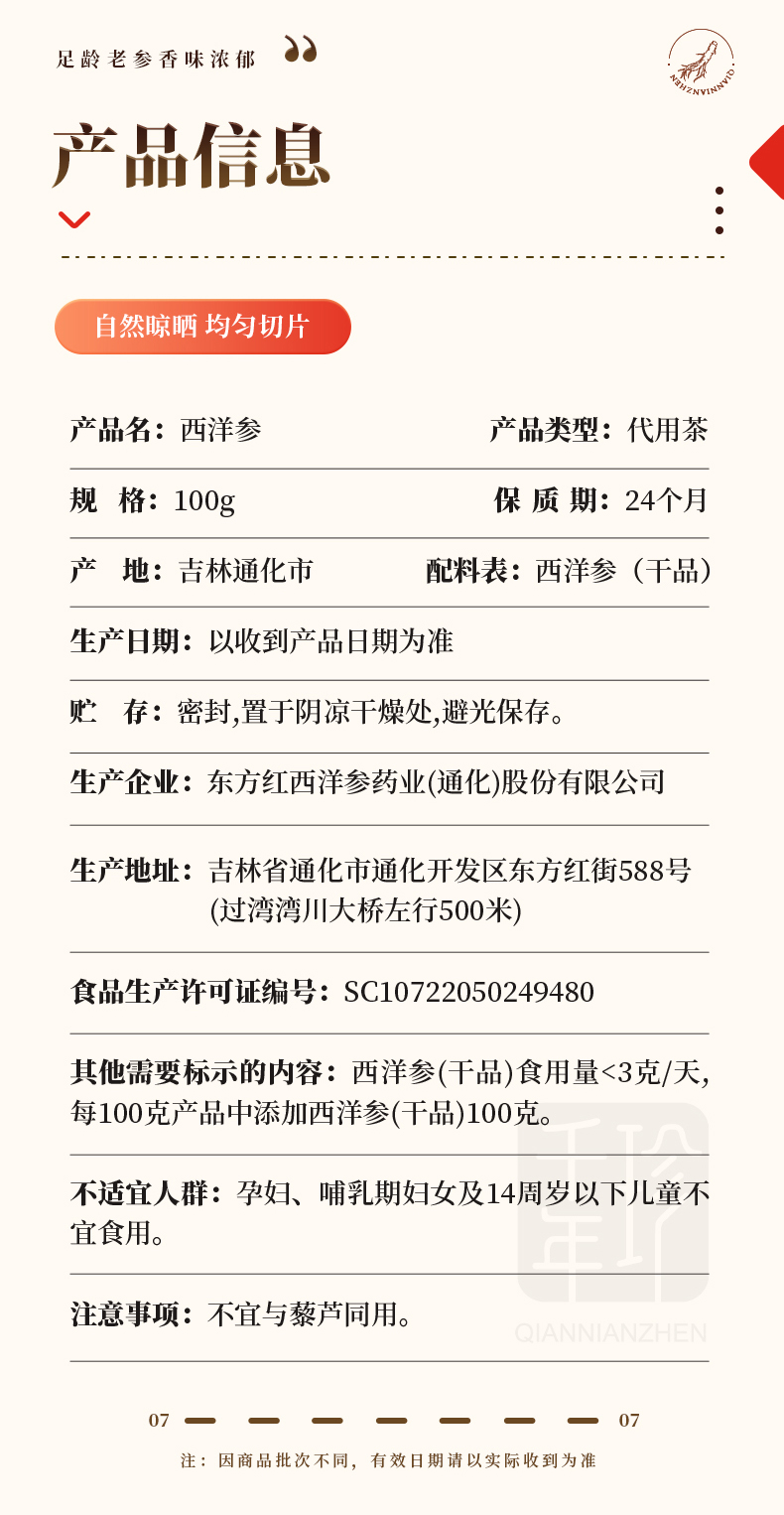 100g/罐 西洋参片(1.6cm) 与辉同款