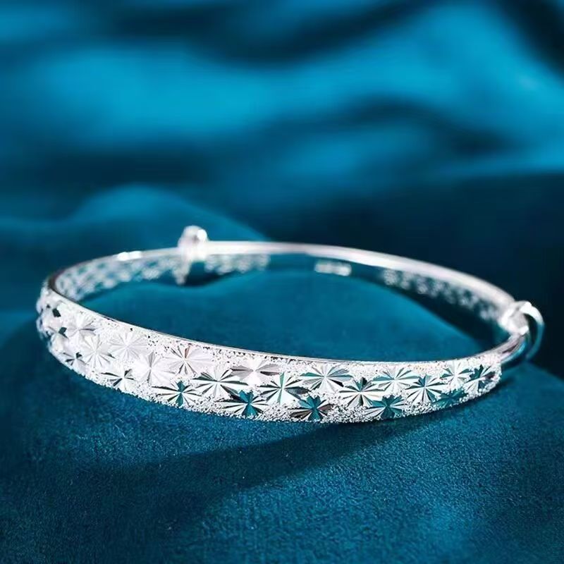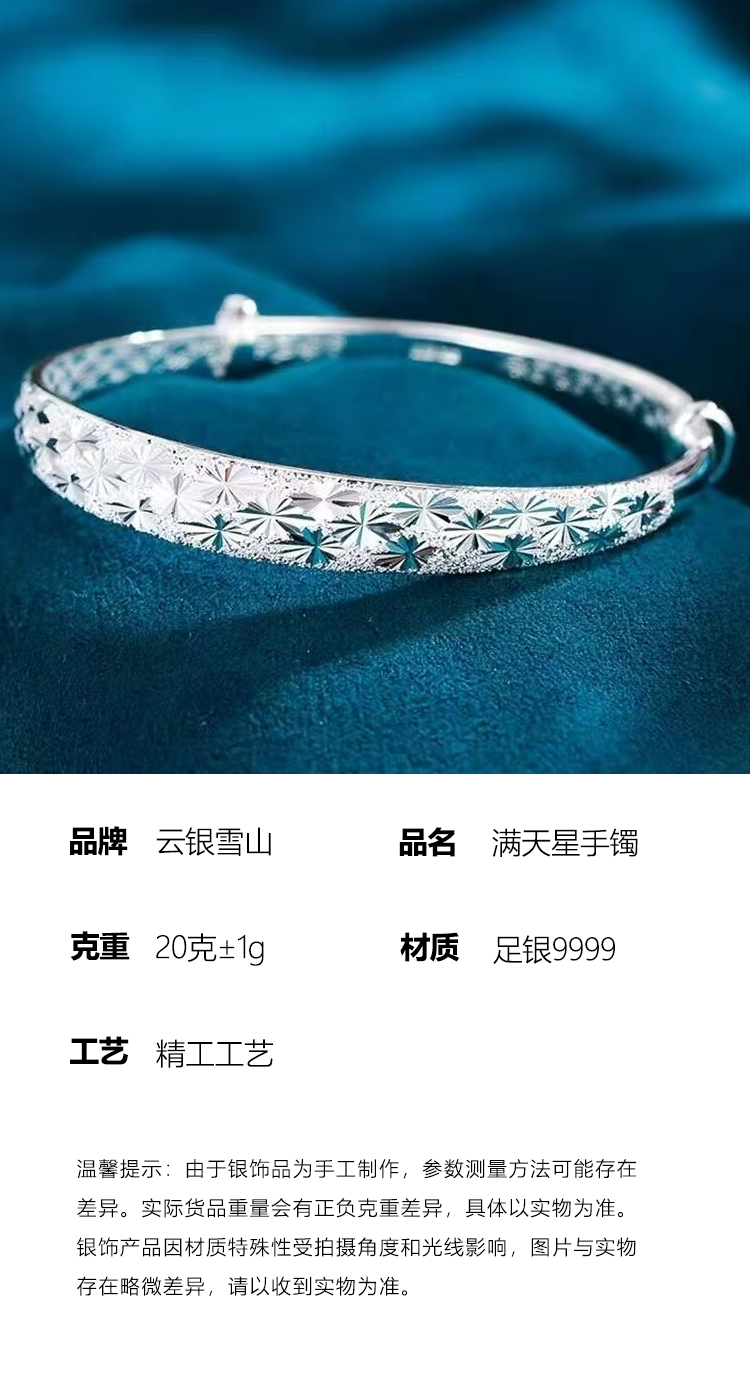 已下架【足银9999】云银雪山 满天星手镯 (20g±1g/个) 配盒 精工工艺