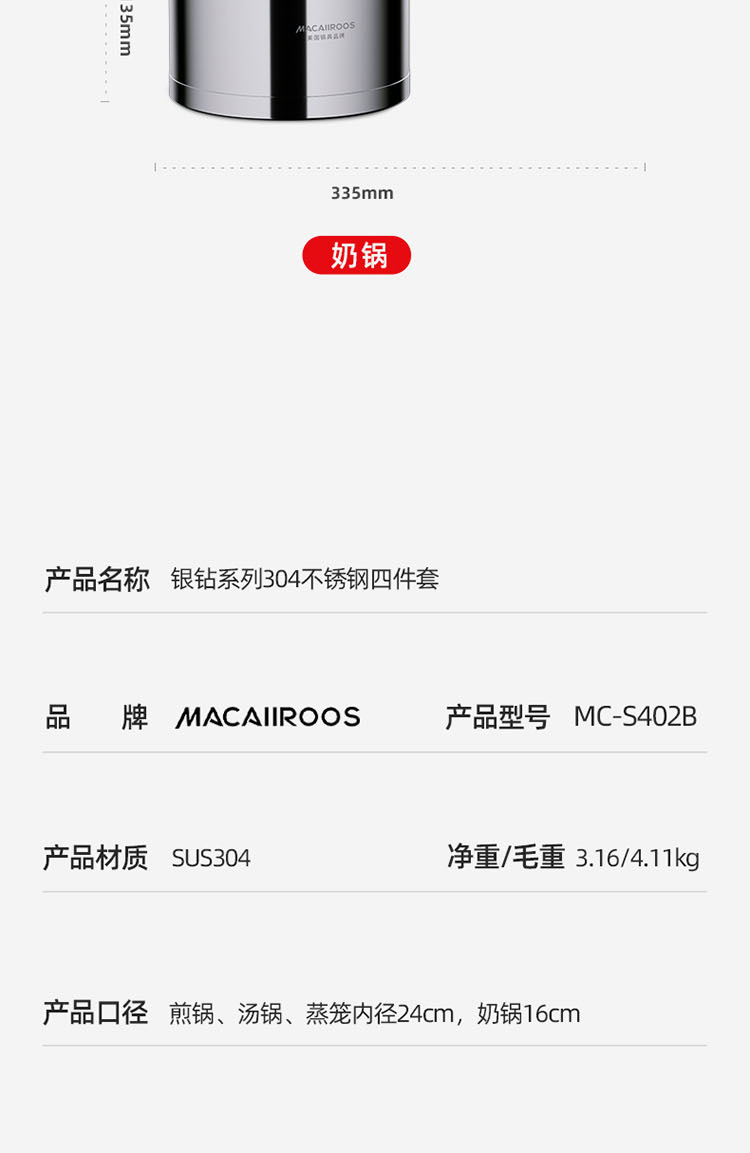 迈卡罗银钻系列304不锈钢四件套MC-S402B