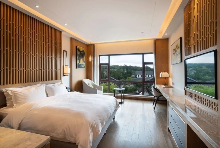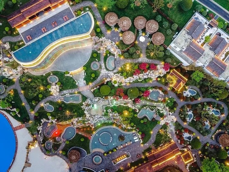 满目苍翠绿浪翻涌,从近旁葱郁草木,到远处朦胧山影,视野所及皆成风景长卷。看山水相映成趣,是眼波里的灵动诗意;泡进温泉汤池,任暖流缠裹,喧嚣被隔绝,一方汤池、几缕水汽,悄然养神,把身心妥帖安放于自然怀抱 。