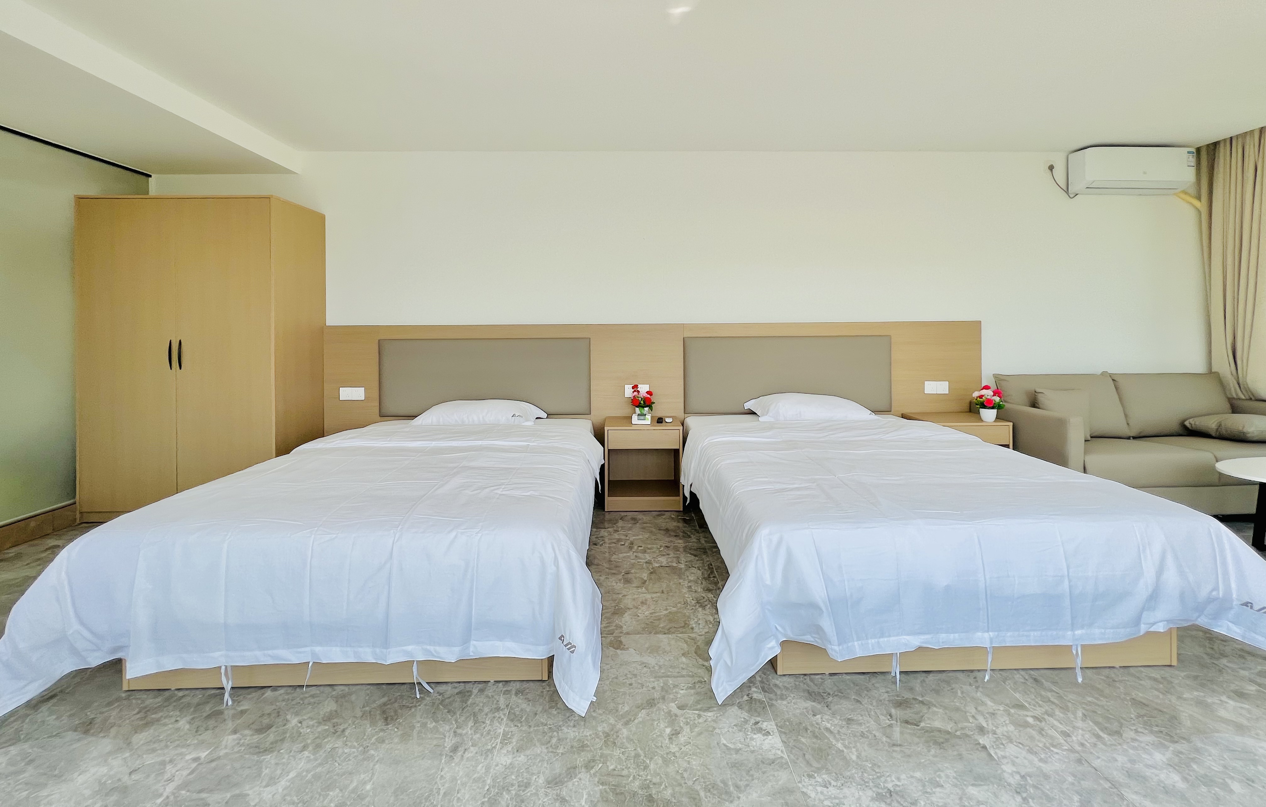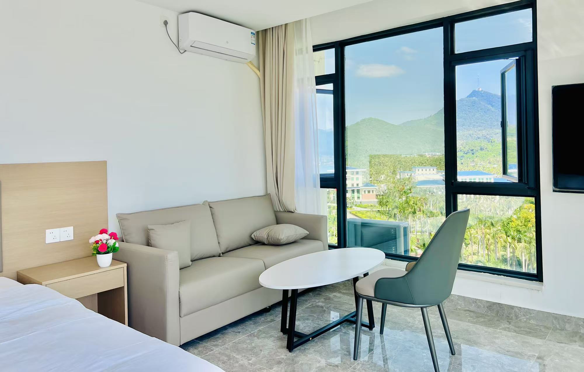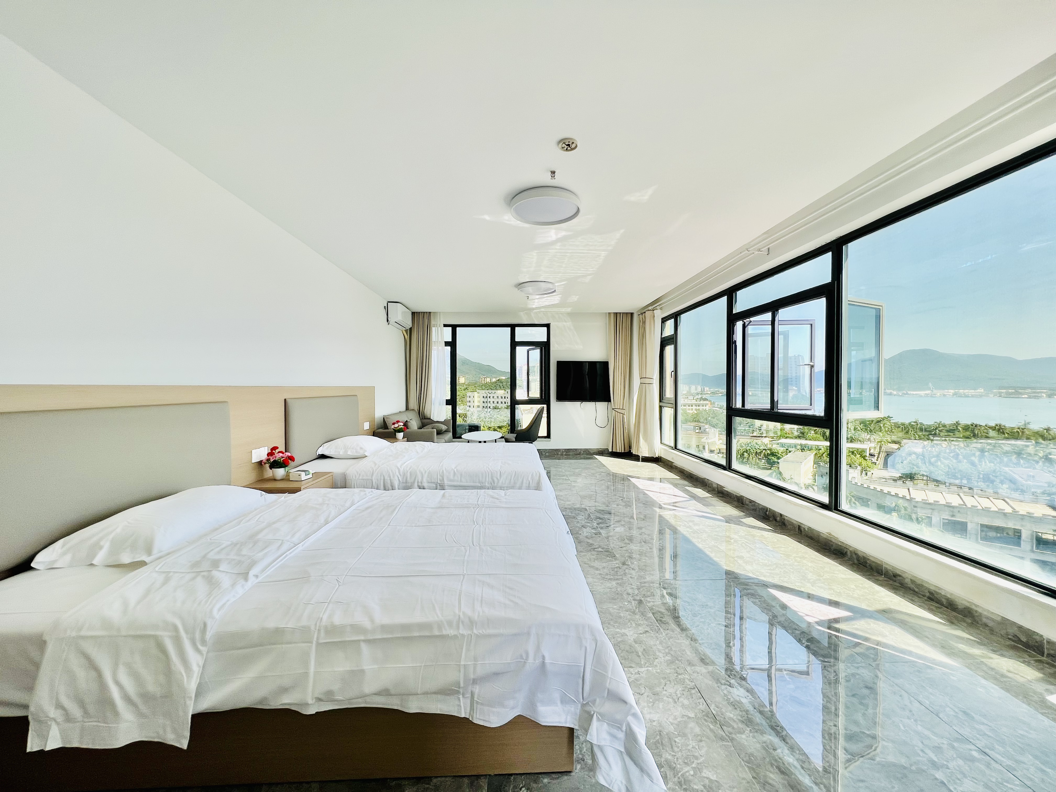 基地集旅游度假、会展商务为一体,拥有诸多间热带海滨风情特色海景客房及家庭套房,每房均拥有独立的观景阳台,可将榆林军港海景与大东海美景尽收眼底。均配有电视、空调、冰箱、衣柜、电水壶、网络、24小时热水等。