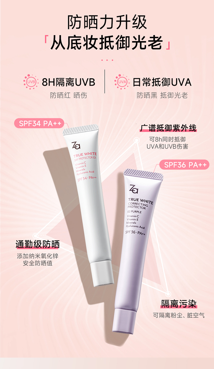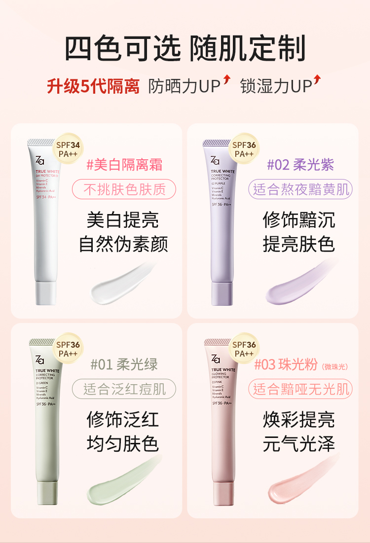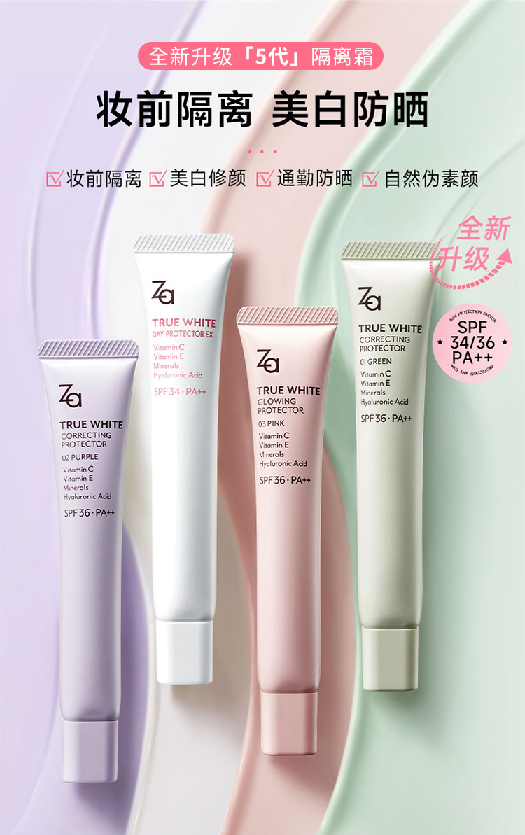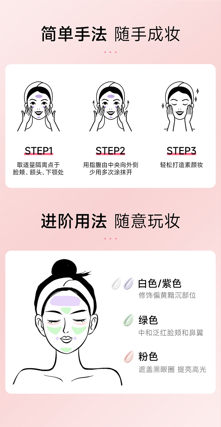 姬芮za隔离防晒霜美白遮瑕素颜霜三合一紫色妆前乳