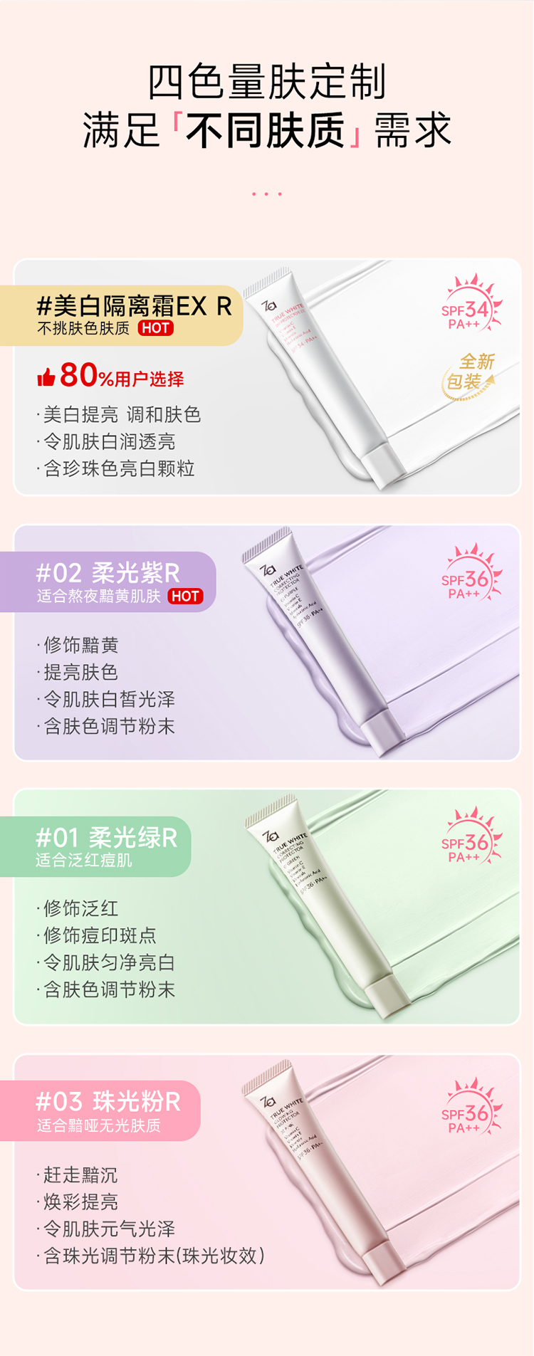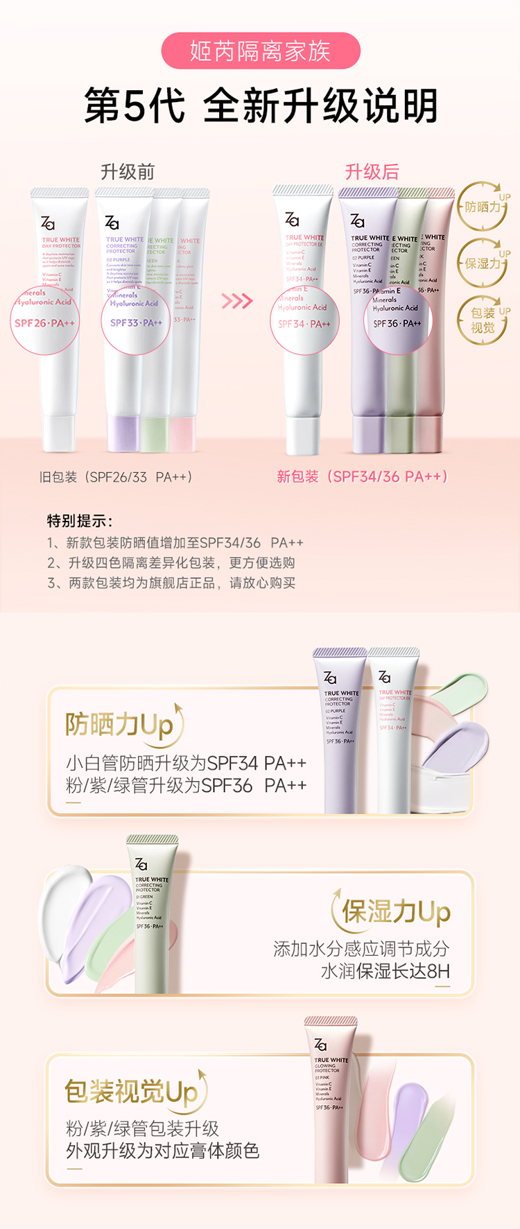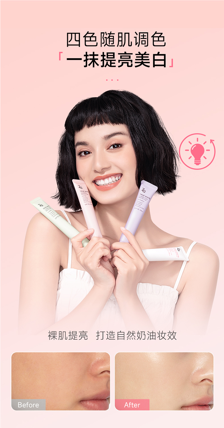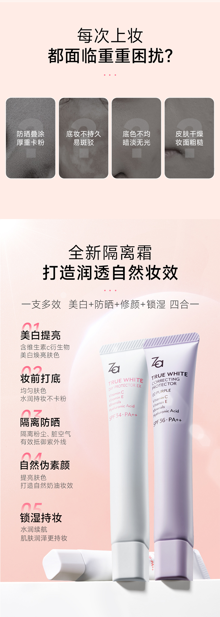 姬芮za隔离防晒霜美白遮瑕素颜霜三合一紫色妆前乳