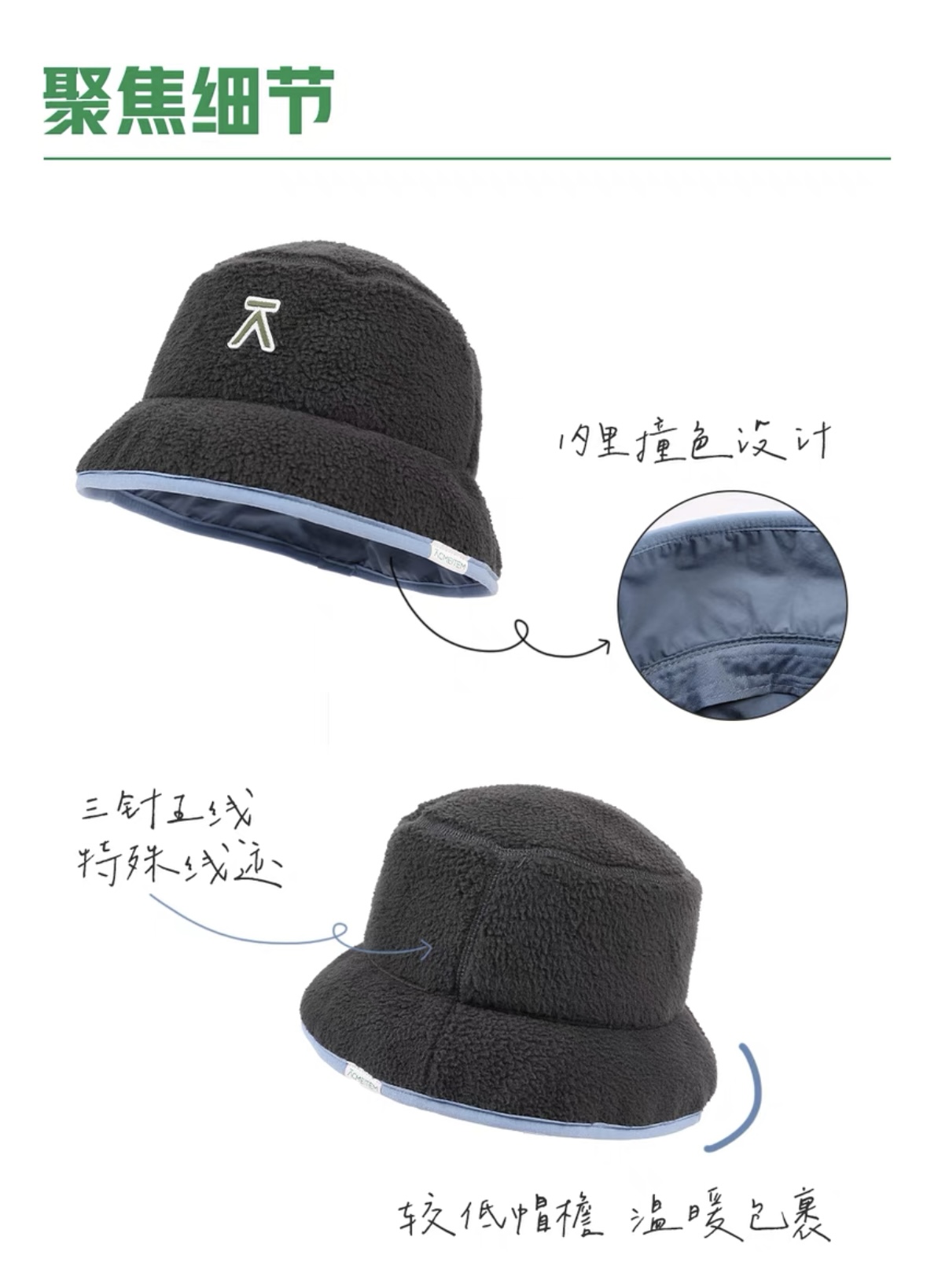【品牌直发】ACMEITEM爱棵米 户外秋冬亲子摇粒绒渔夫帽保暖加厚撞色休闲帽子GAF3540406G/GAF3540485G
