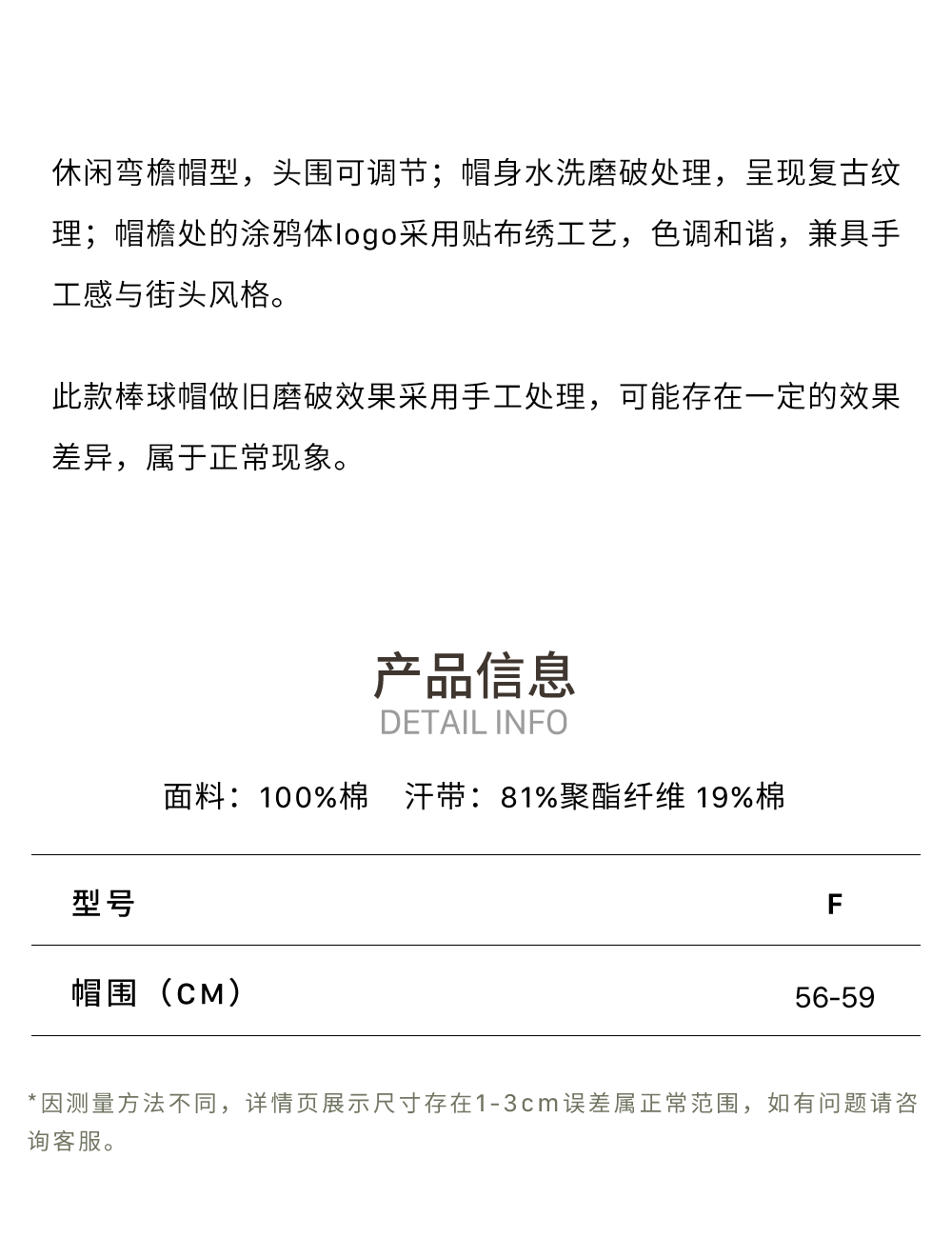 GOODBAI 新款个性复古水洗做旧破洞涂鸦弯檐棒球帽男女同款