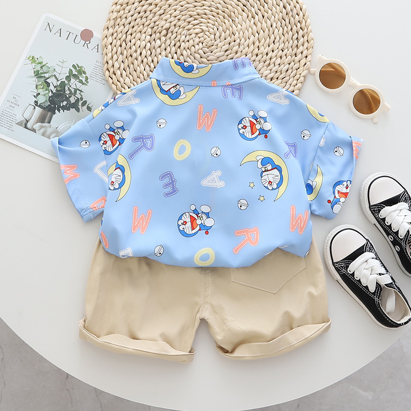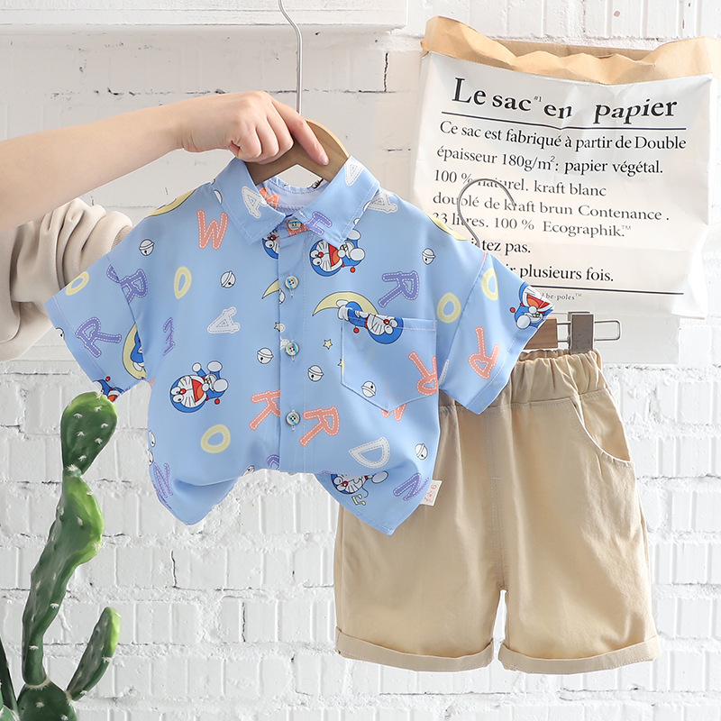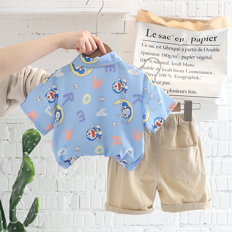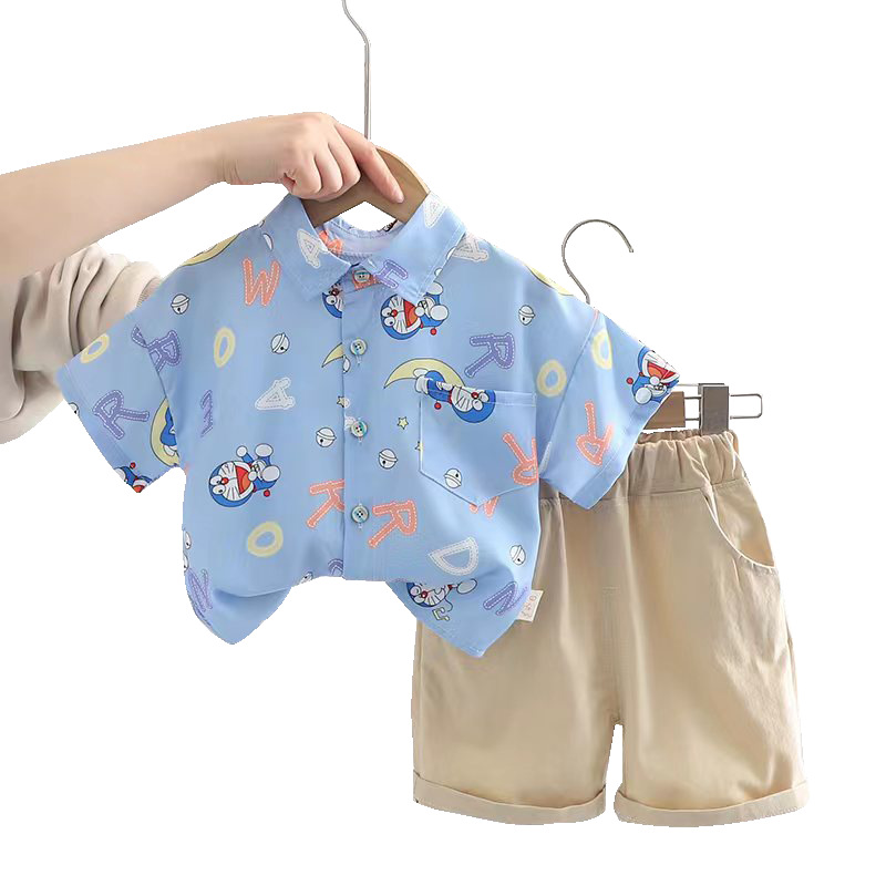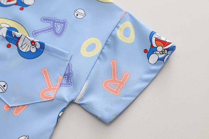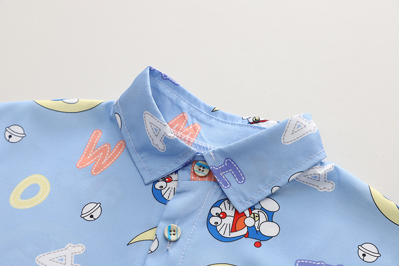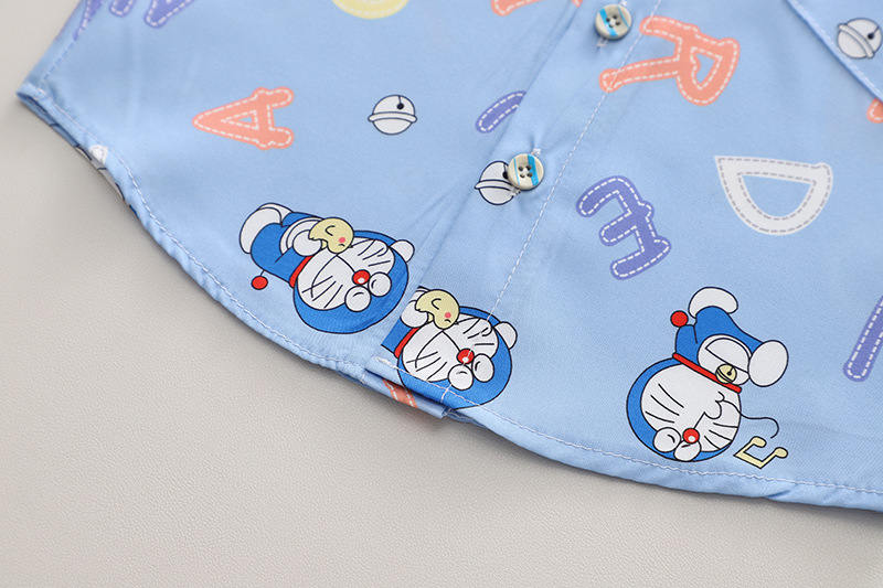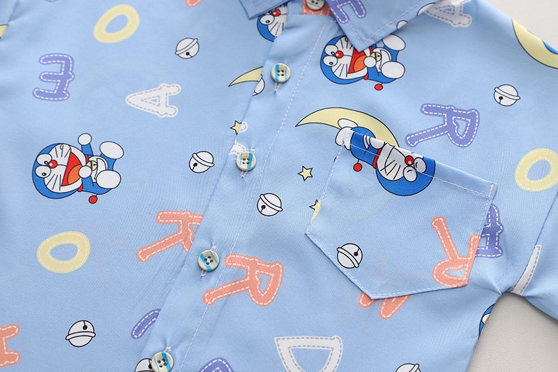 夏季新款叮当猫印花衬衫休闲中裤百搭潮流儿童两件套童装