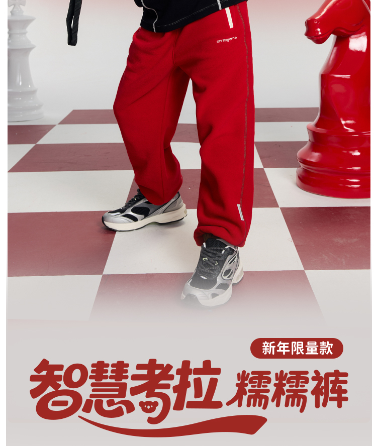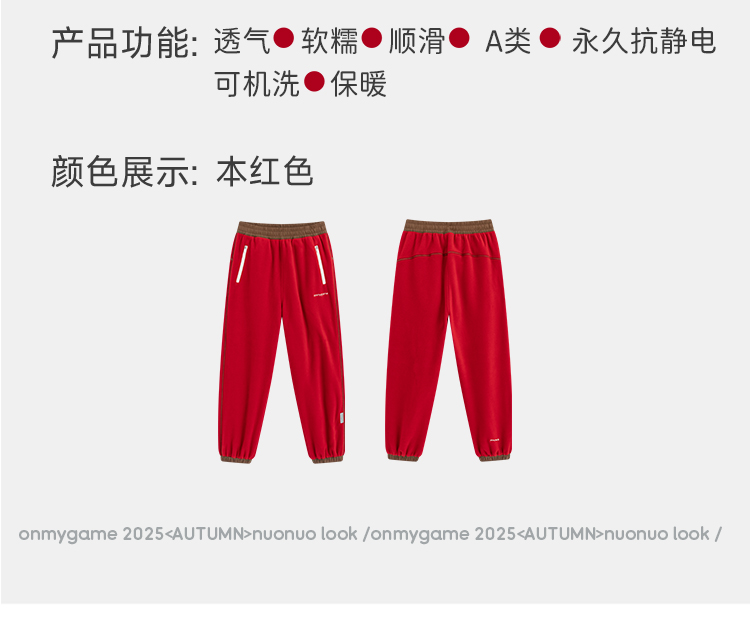 onmygame【小马当先】男女童糯糯裤儿童本命年裤子红色长裤26冬新