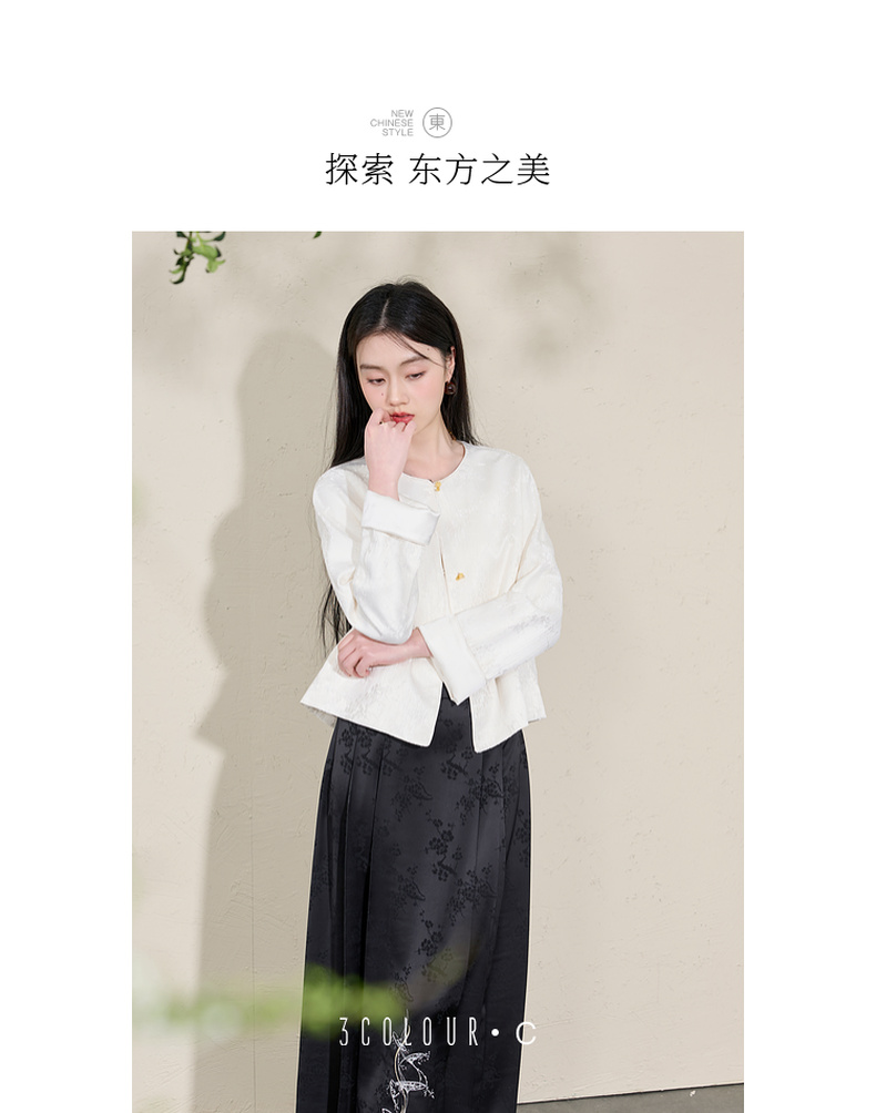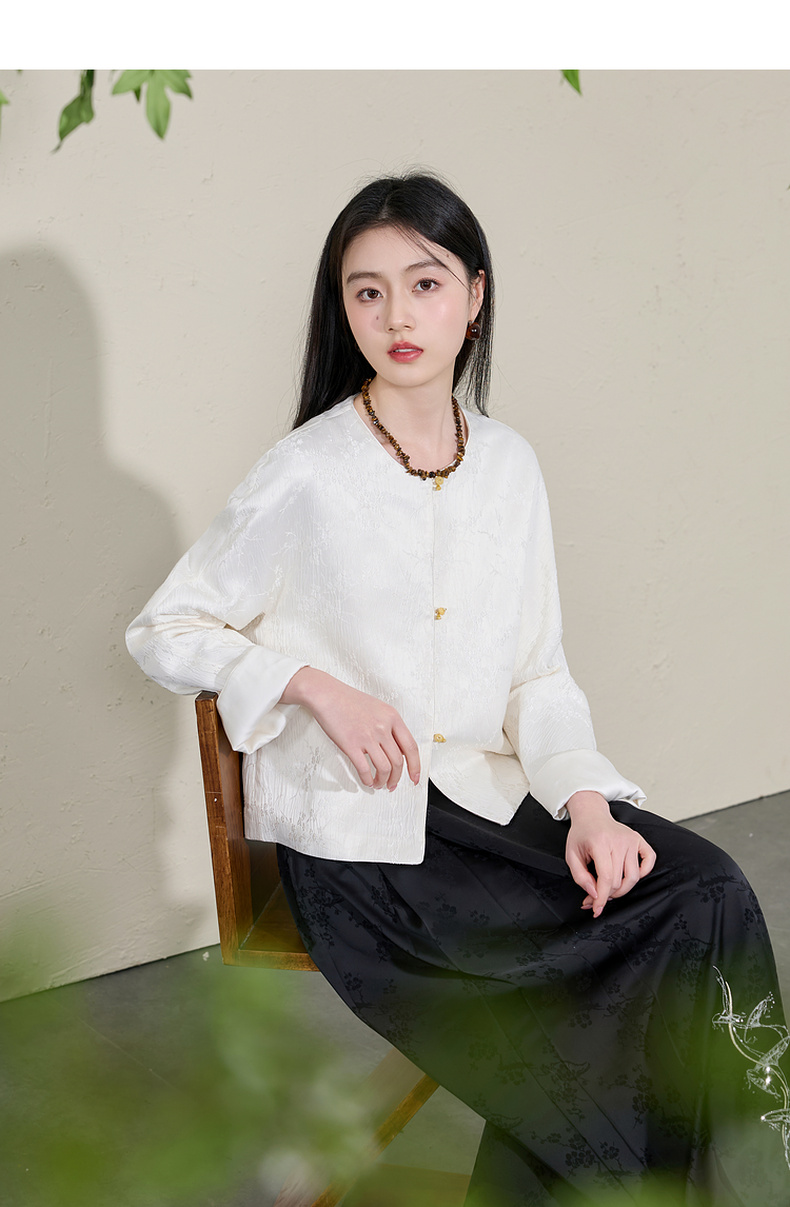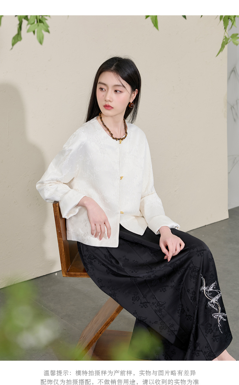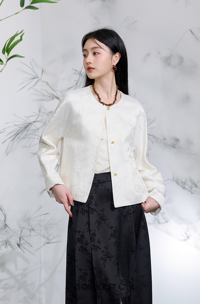 三彩【月下花影】2026春季新款新中式提花外套圆领开衫宽松C