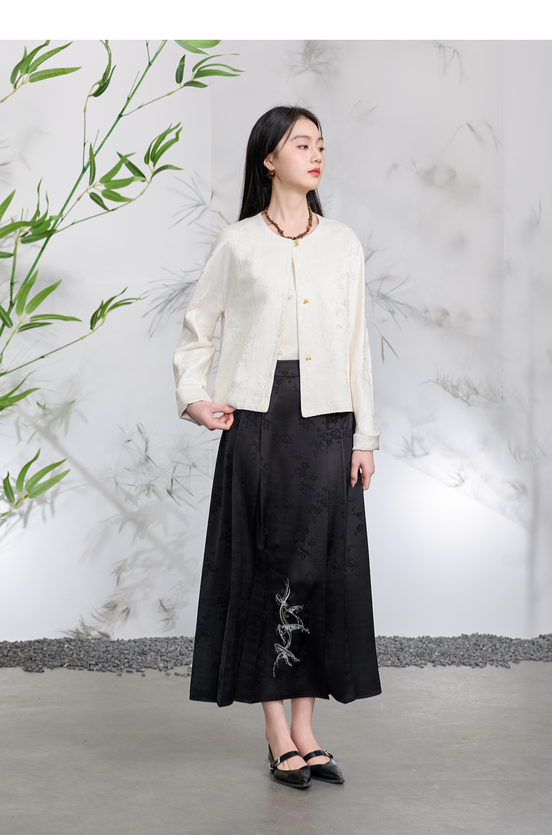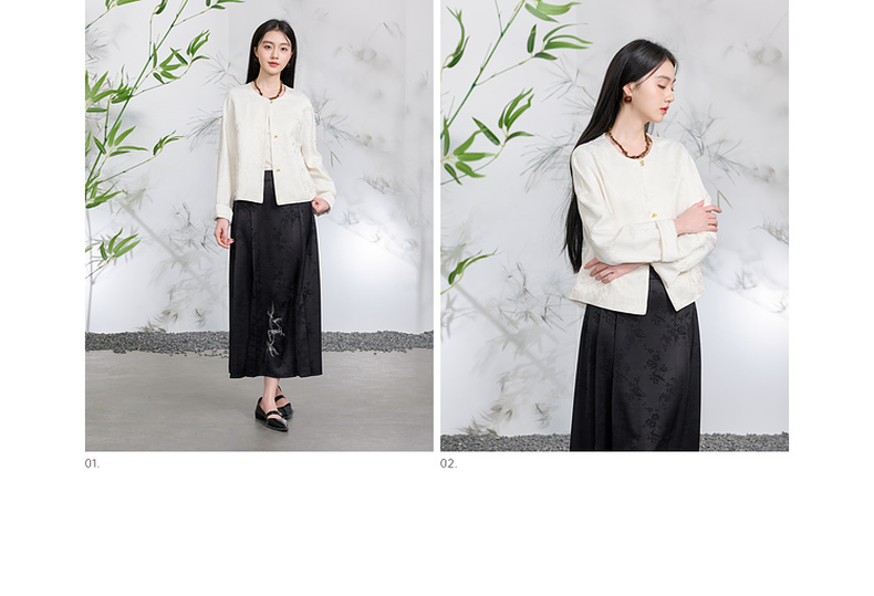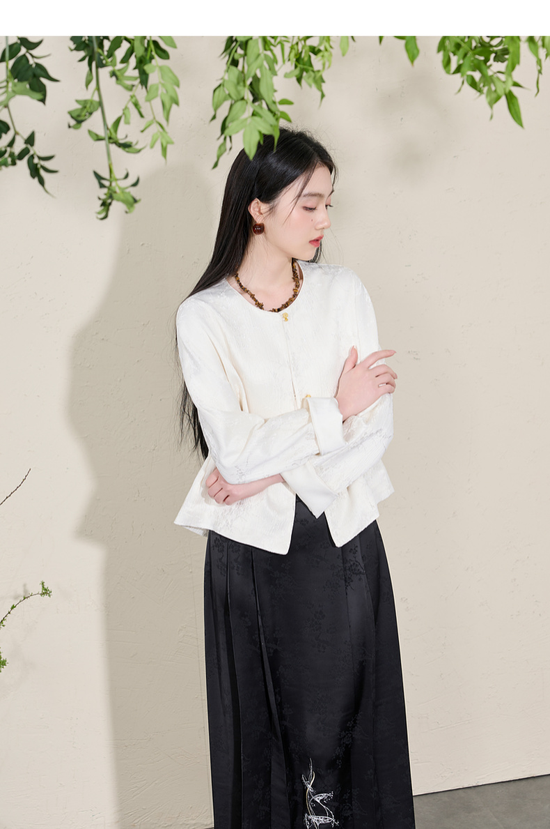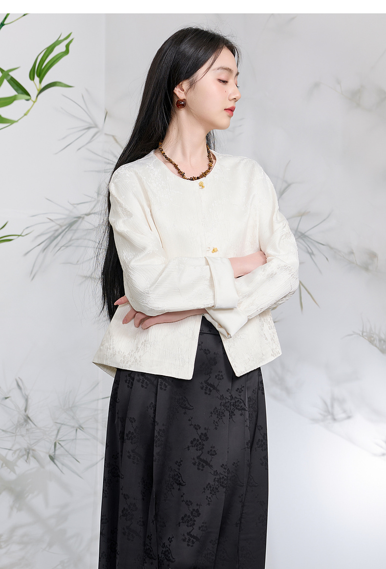 三彩【月下花影】2026春季新款新中式提花外套圆领开衫宽松C