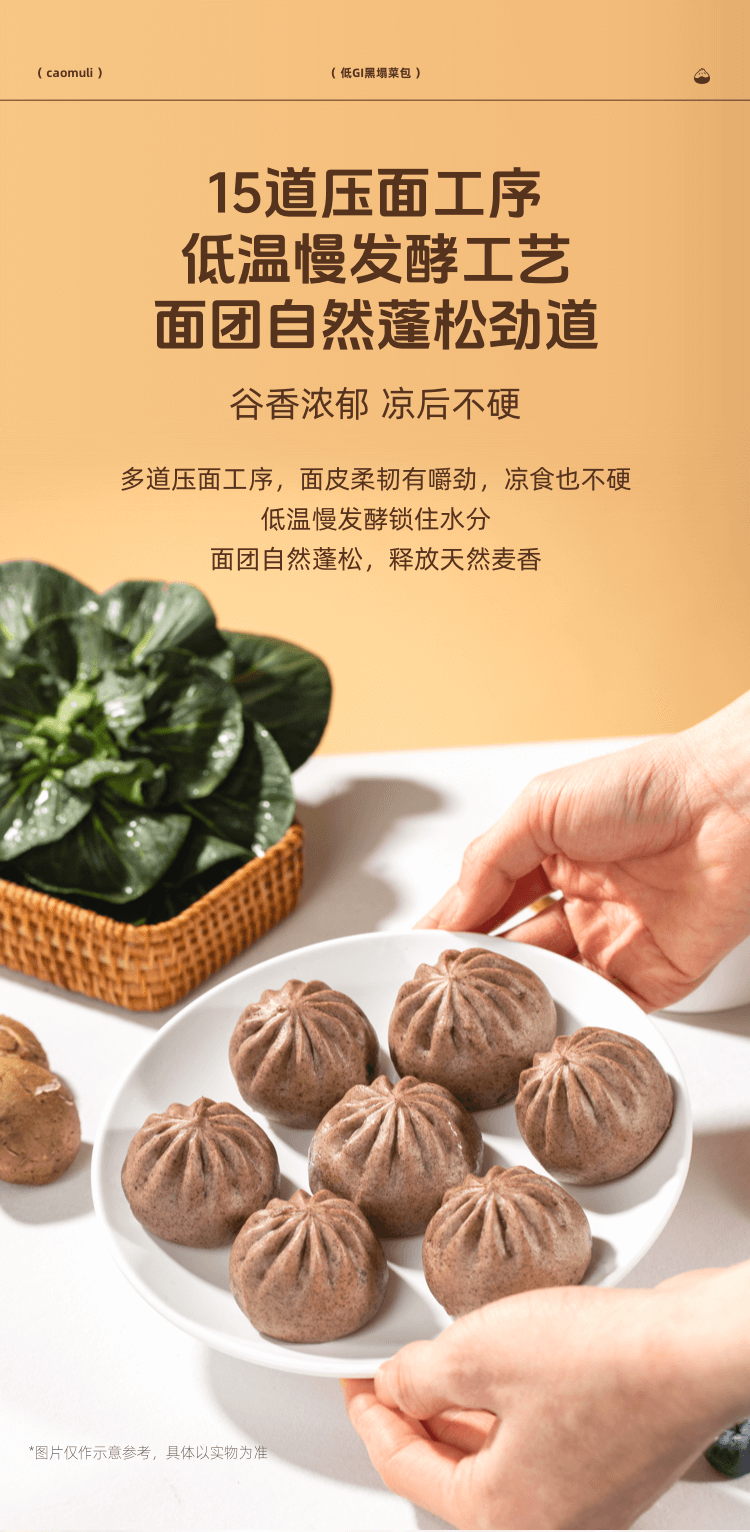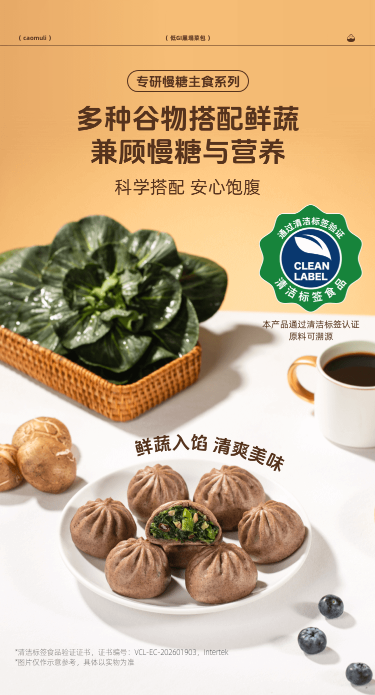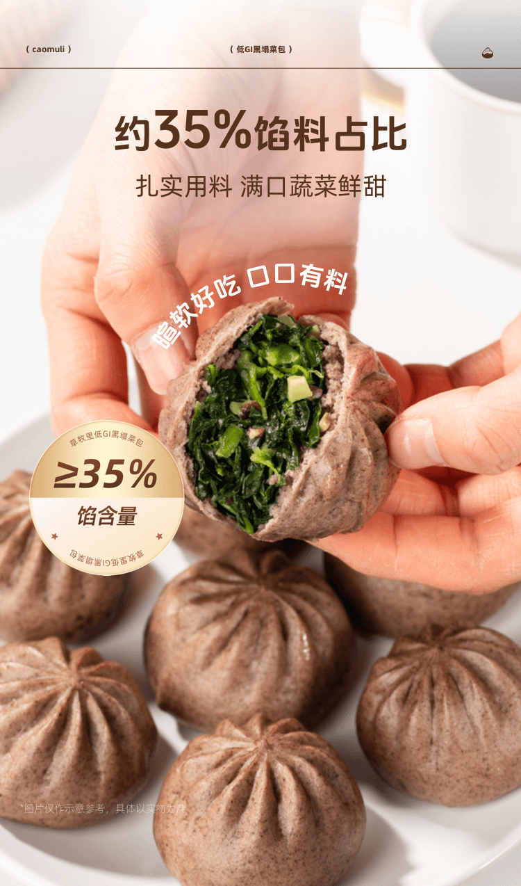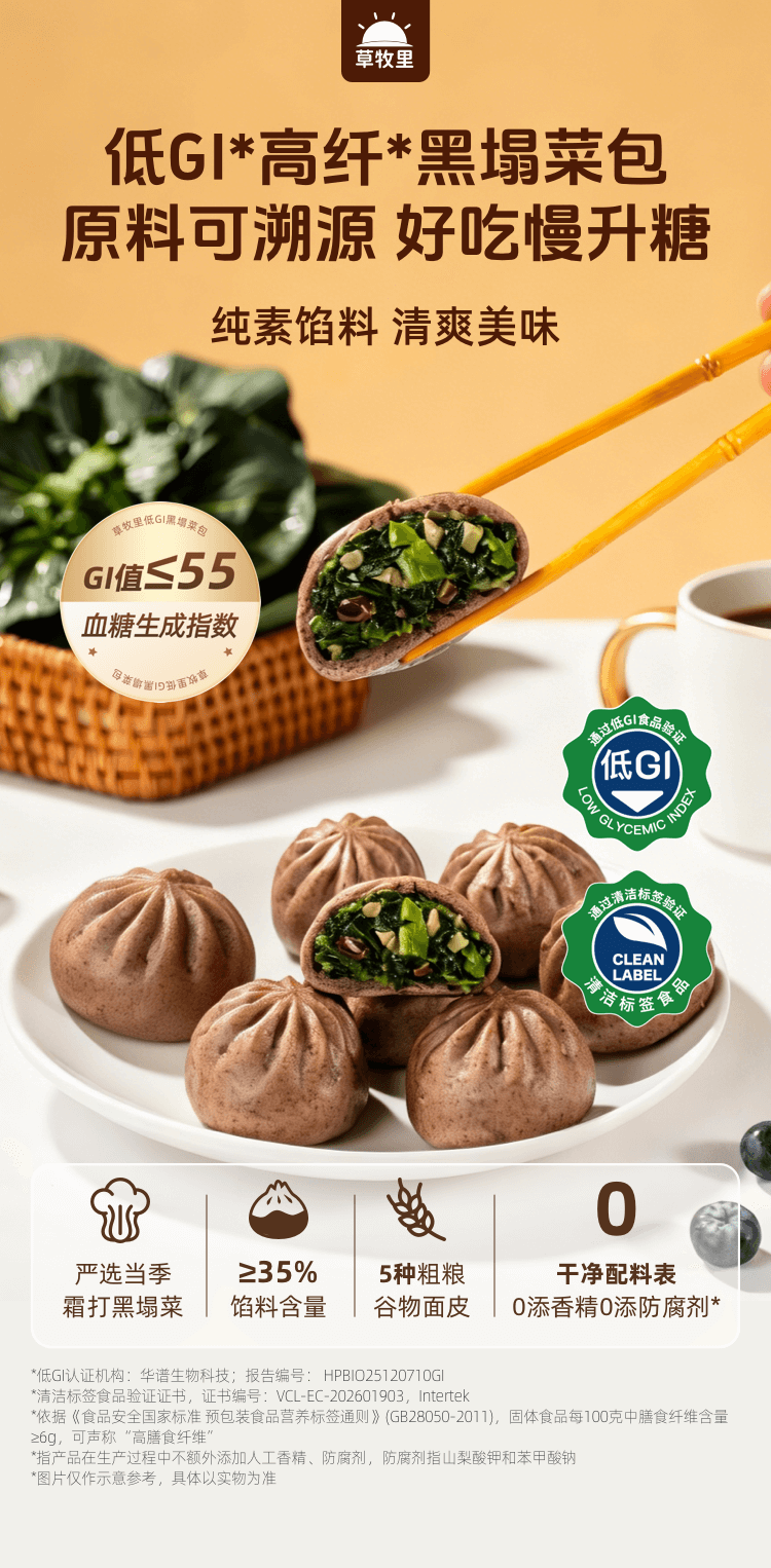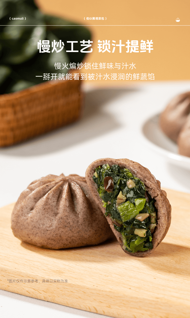 【严选当季霜打黑塌菜】草牧里 低GI黑塌菜包(素食包子) 420g(6个)/袋 慢炒工艺锁汁提鲜