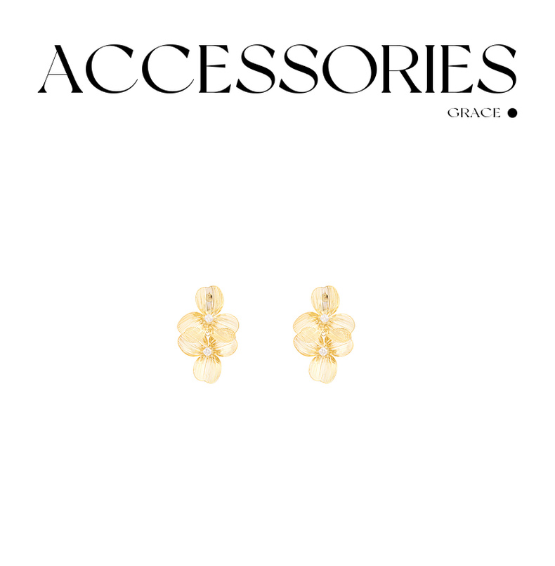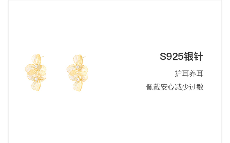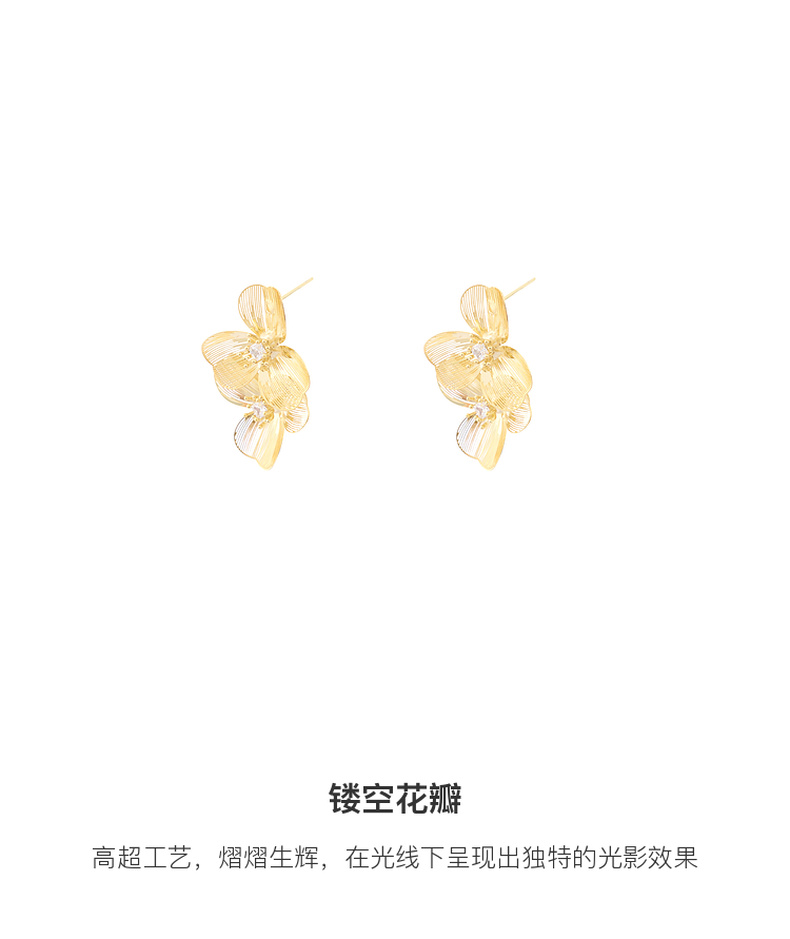 三彩2025新款浪漫立体花瓣耳钉耳饰S925银针镂空工艺轻奢锆石约会