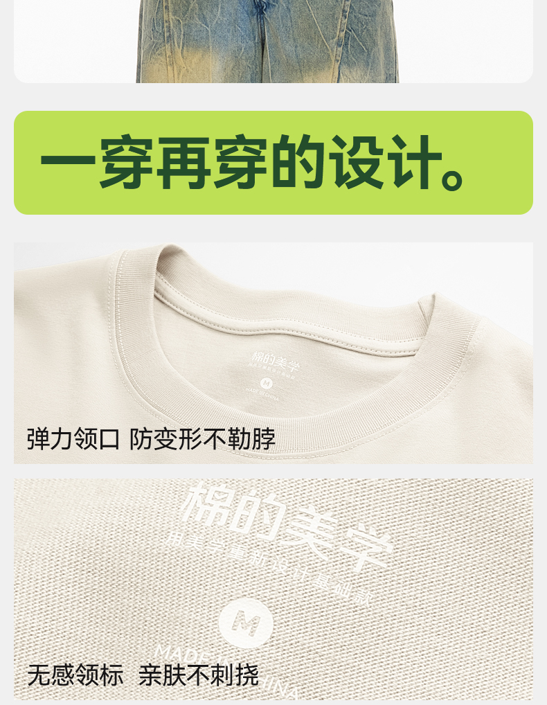 「棉的美学」新款休闲百搭上衣夏季男重磅T恤时尚潮流舒适印花