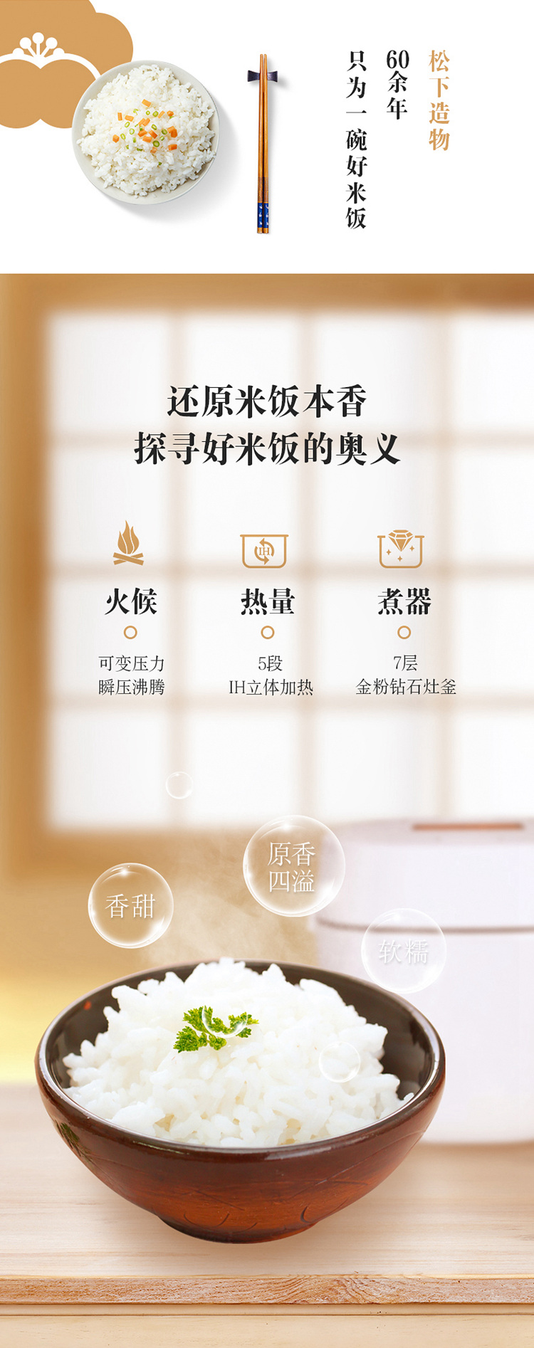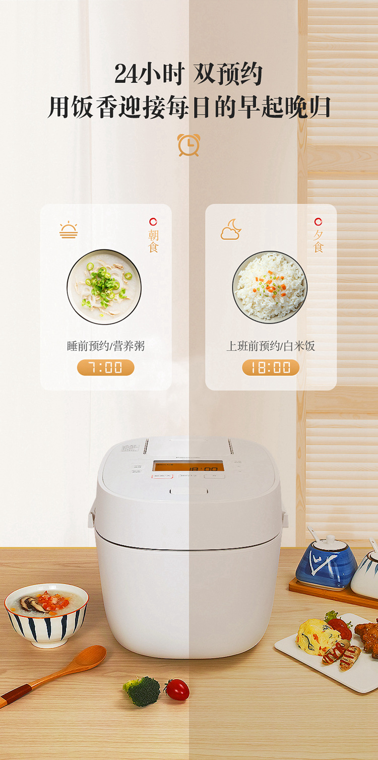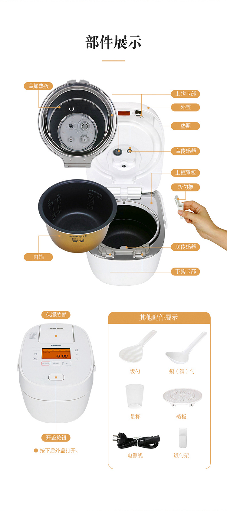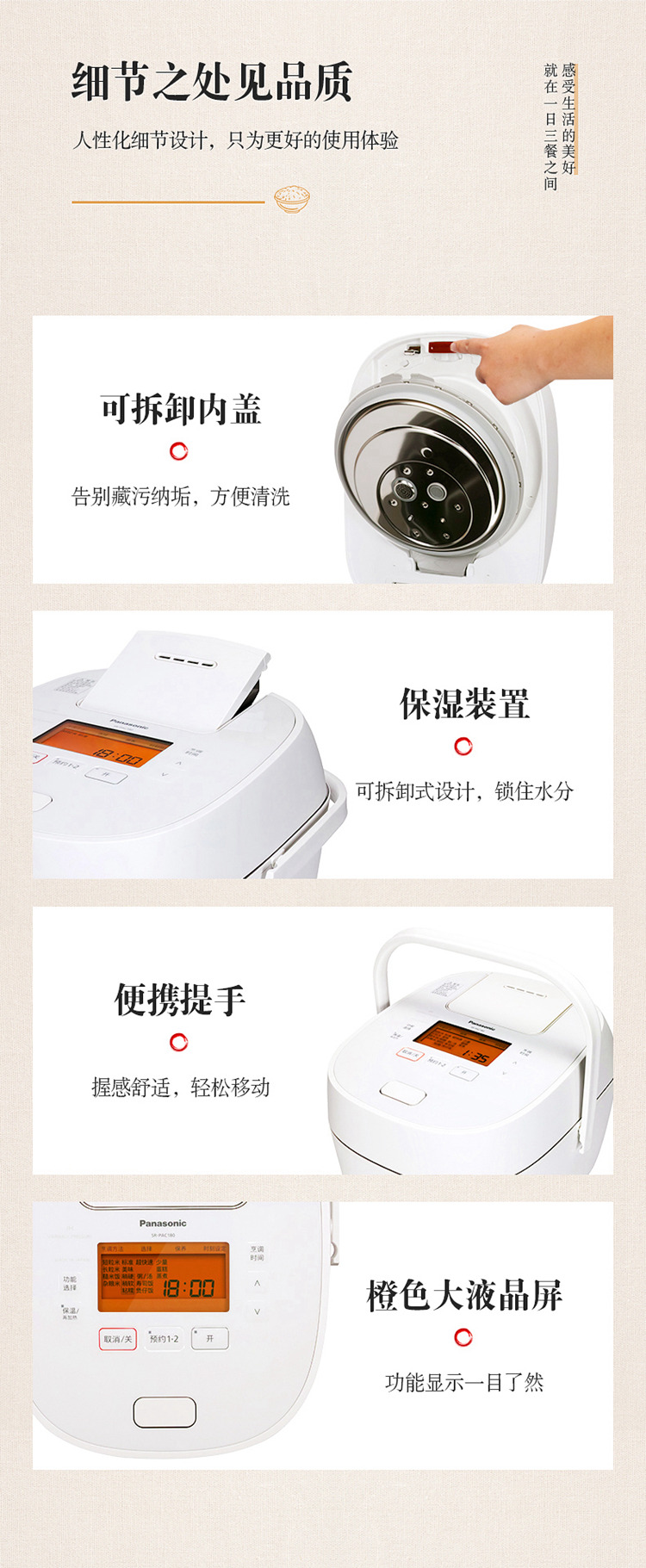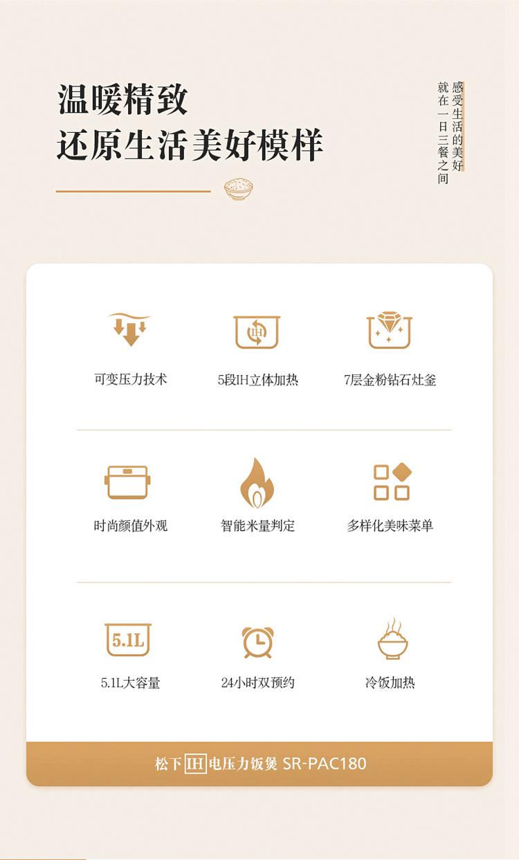 松下(Panasonic)日本原装进口5L电饭煲 5段IH电饭煲 智能米粮判定 24小时双预约 SR-PAC180WSA
