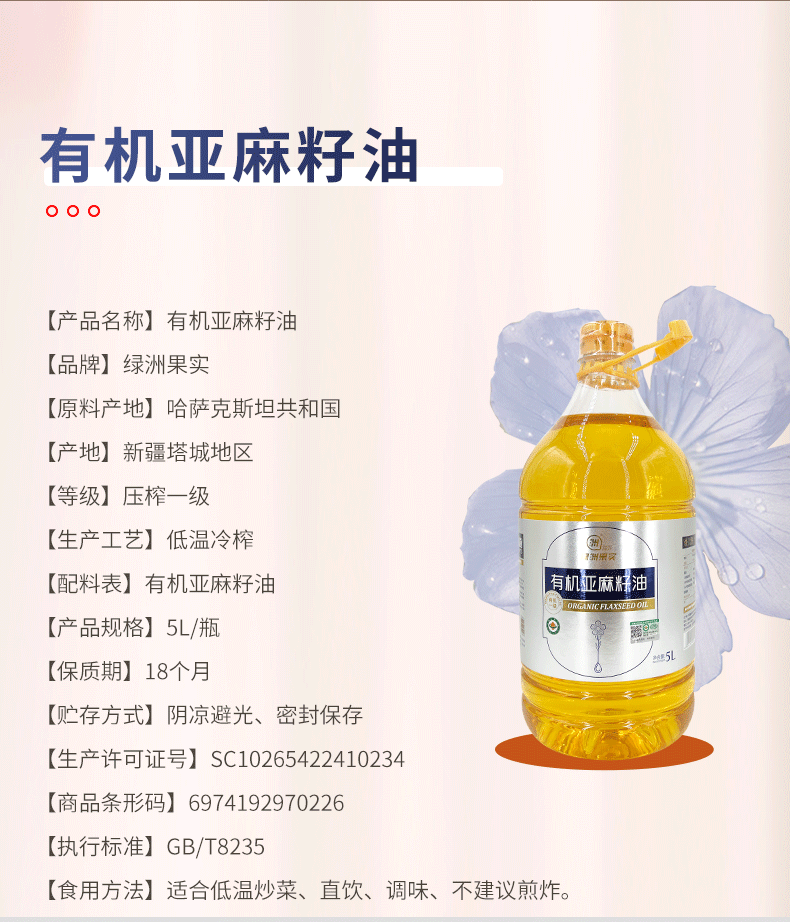 【绿洲果实】有机亚麻籽油 5 L