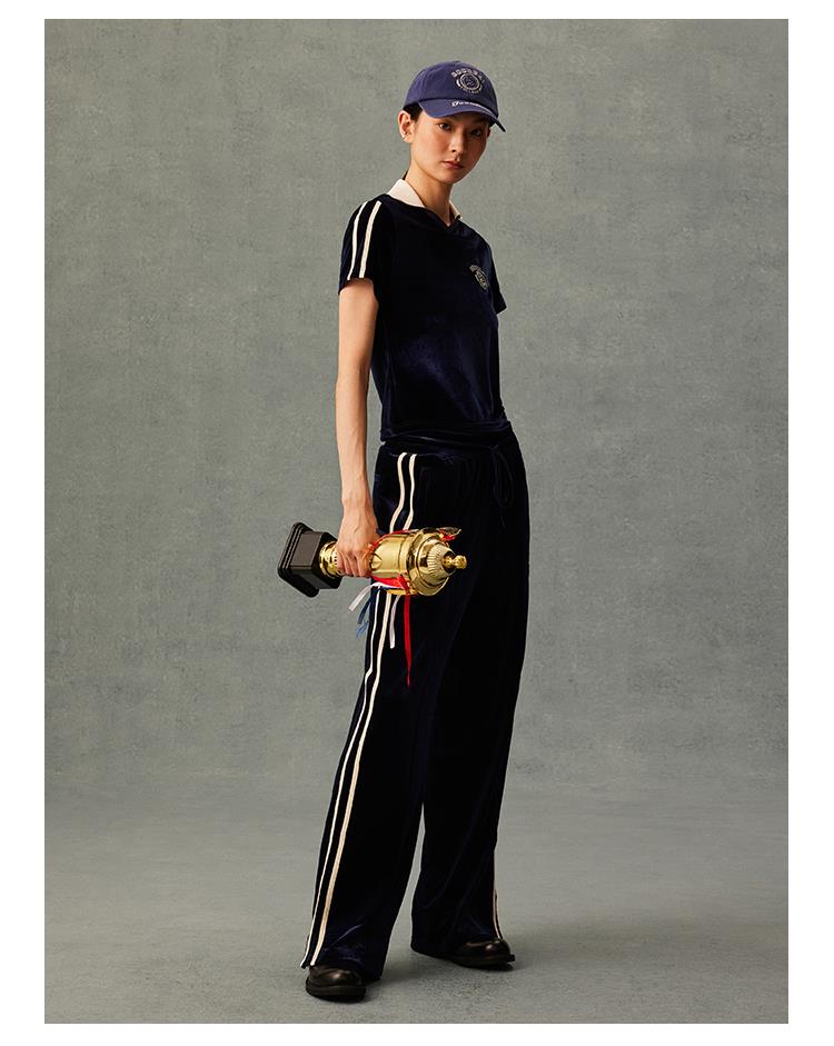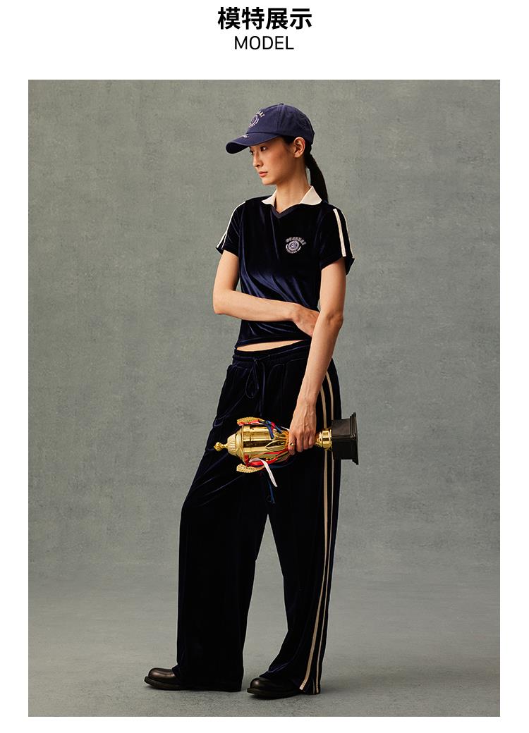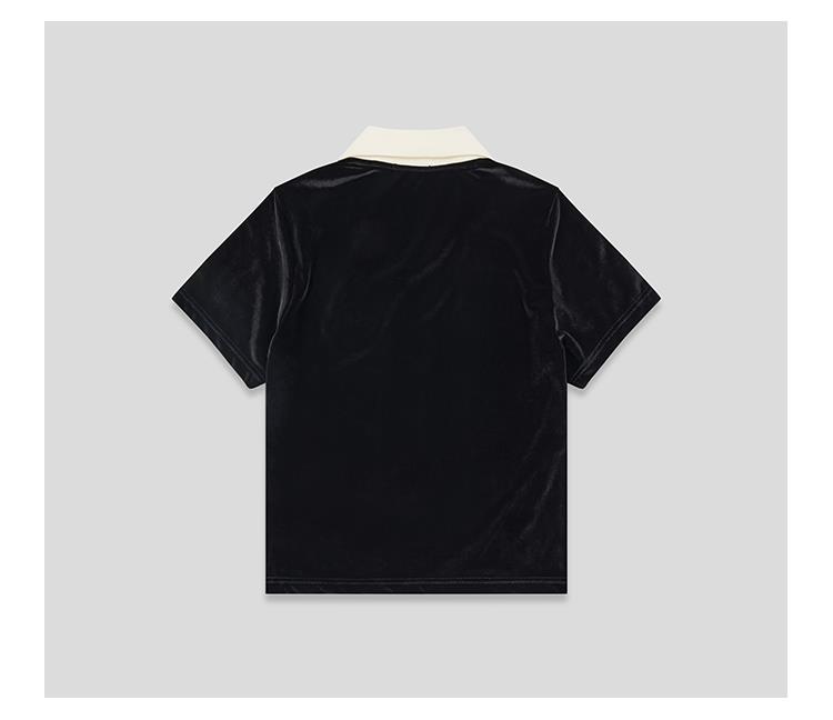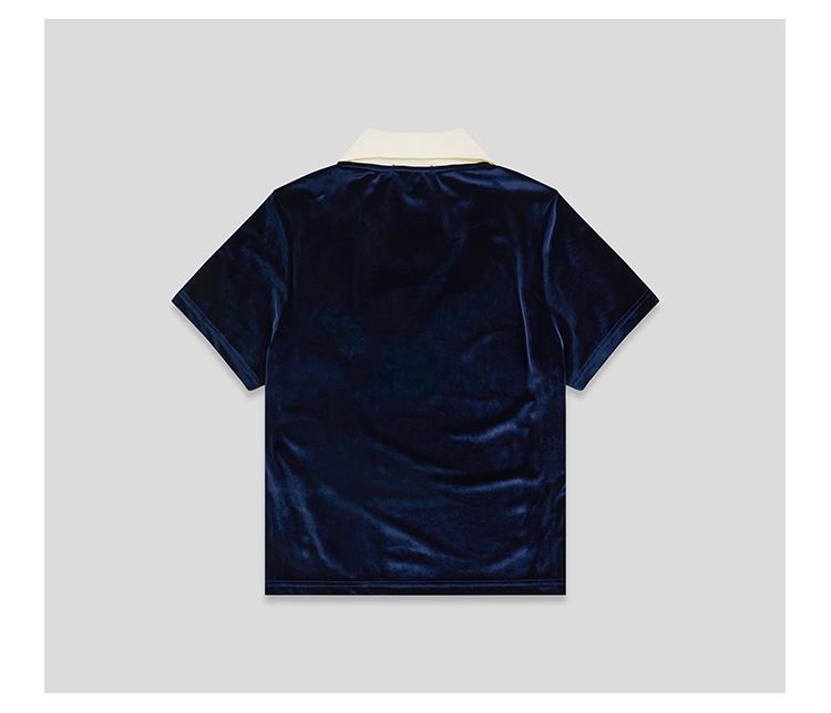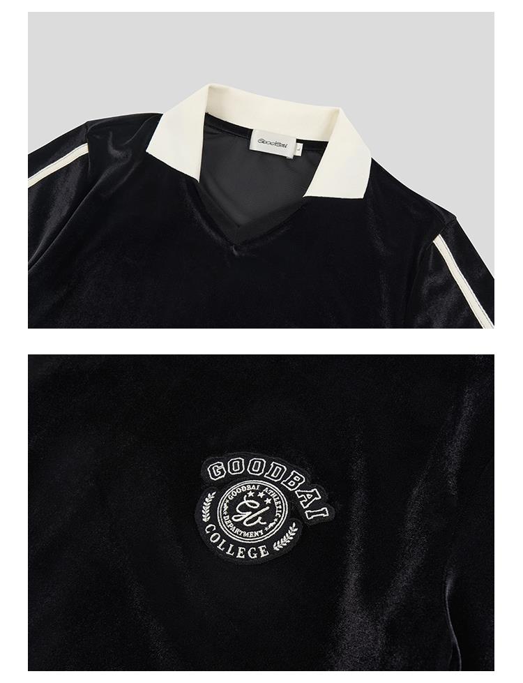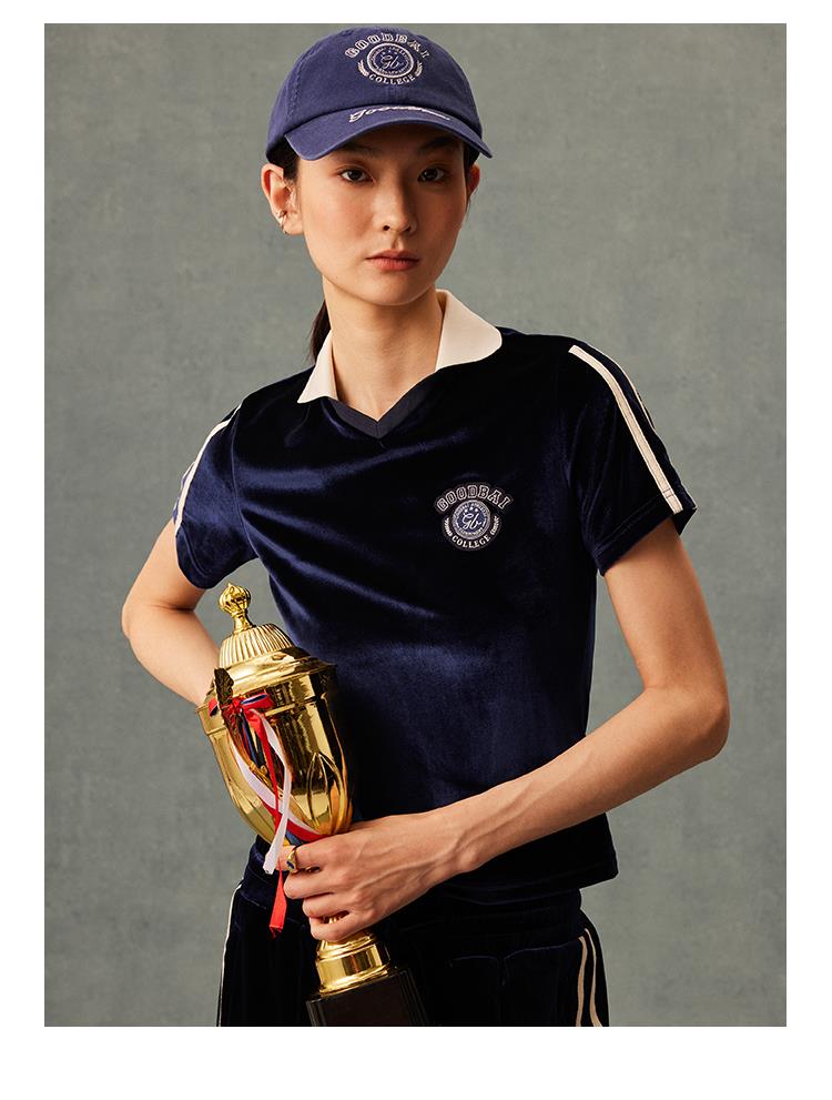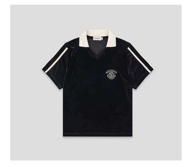 GOODBAI athletic学院logo刺绣翻领丝绒短袖衫