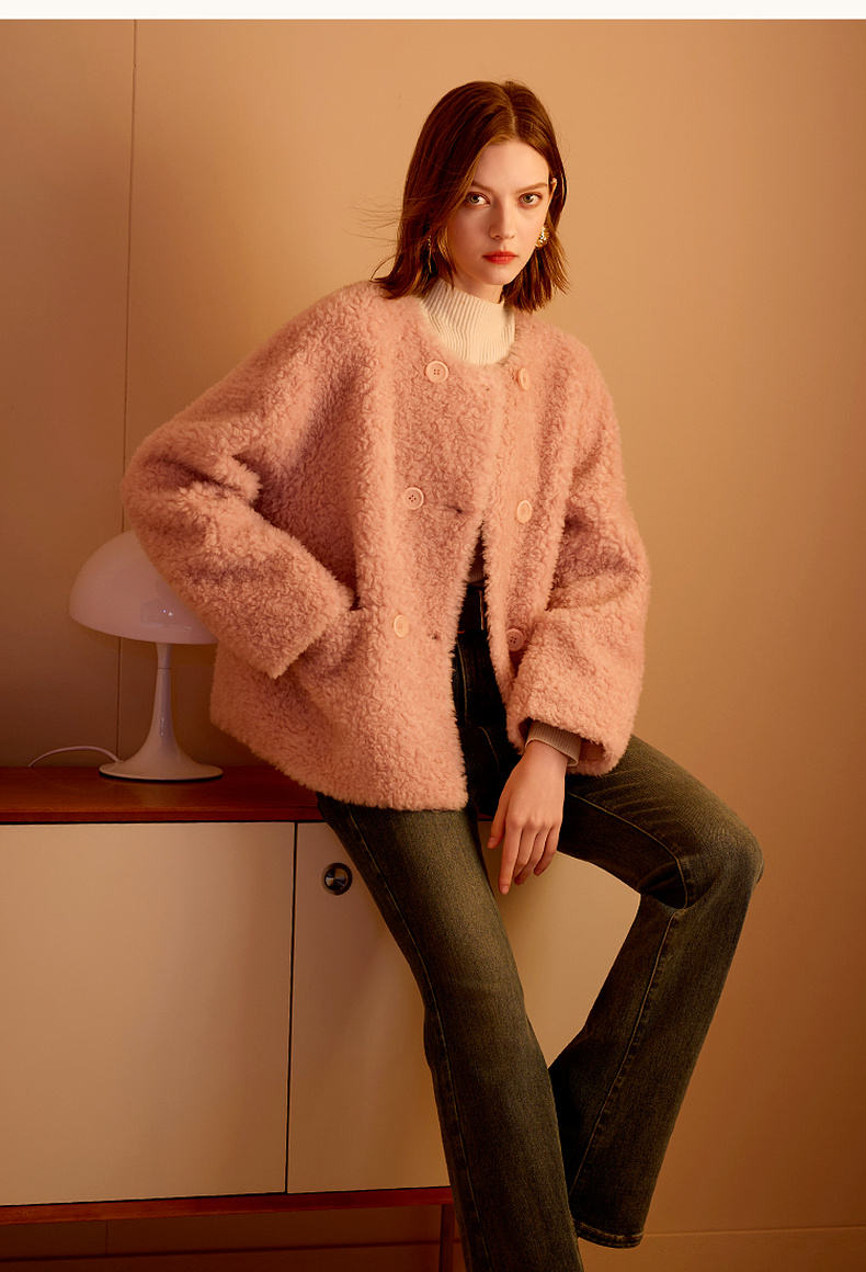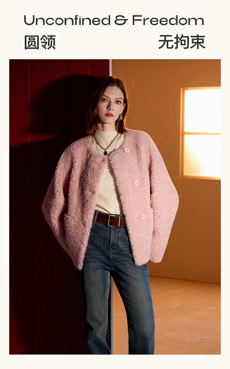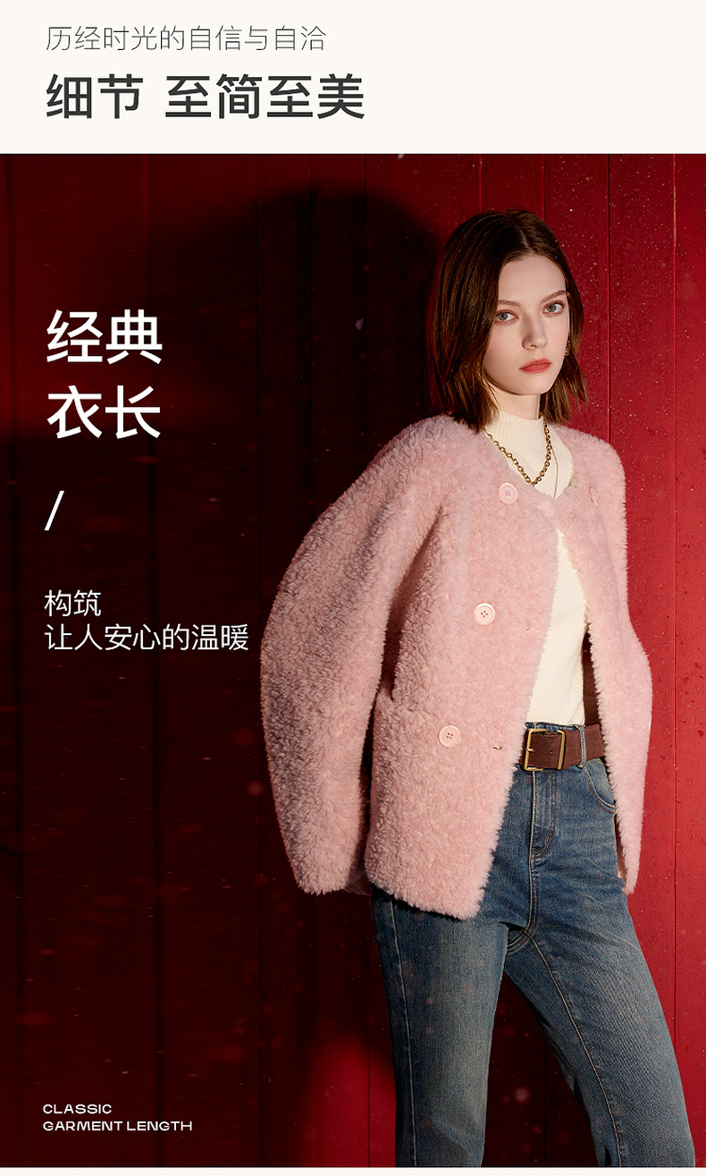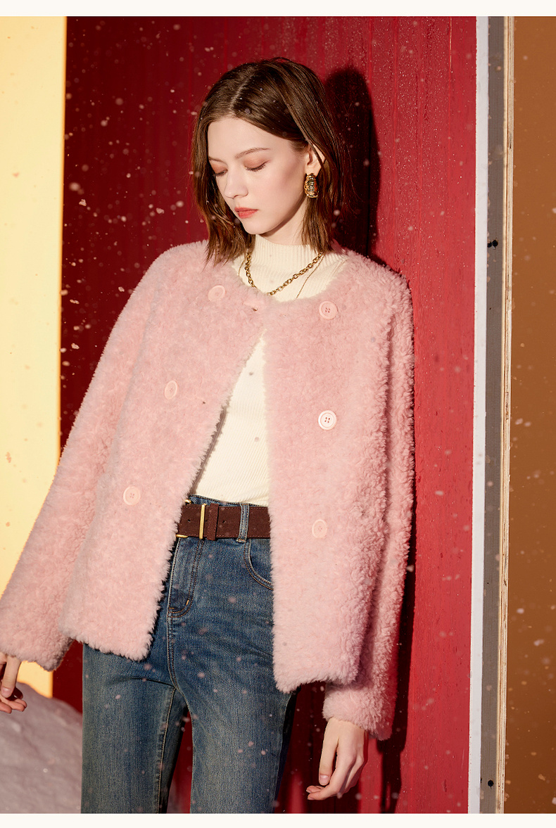 【100绵羊毛瘦瘦皮草】三彩2025冬季新款圆领皮草毛毛外套双排扣S