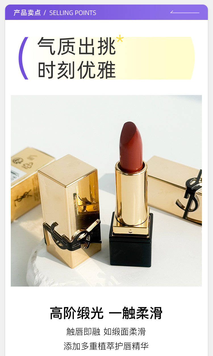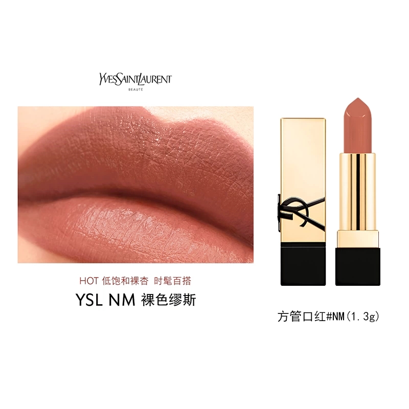 【秒杀】YSL圣罗兰 慕斯口红#NM/RM/OM 1.3g小样 裸杏奶茶色红色黑金浮雕方管 持妆易上色