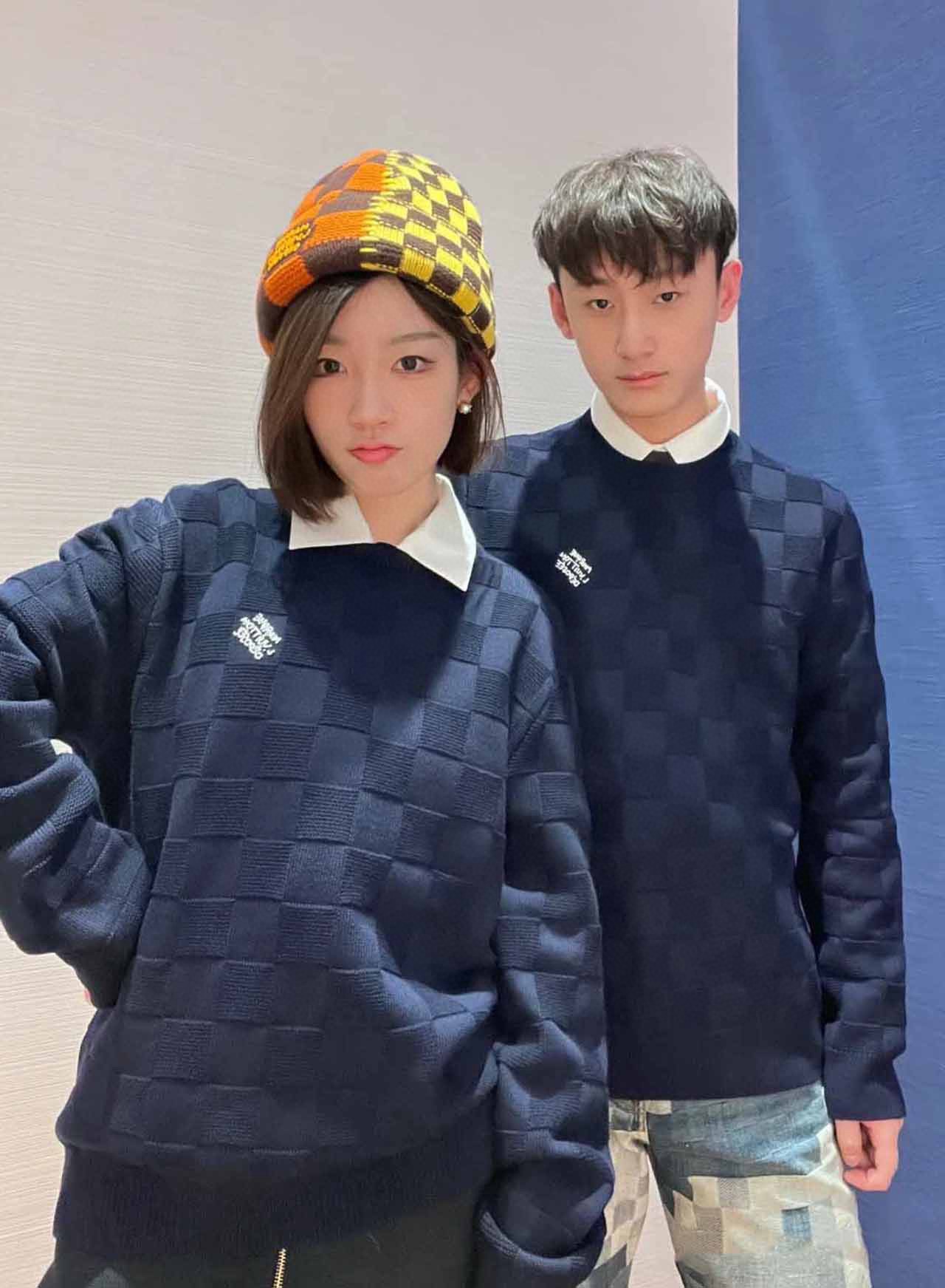 驴家 羊毛钉珠 棋盘格套头毛衣(JN)
