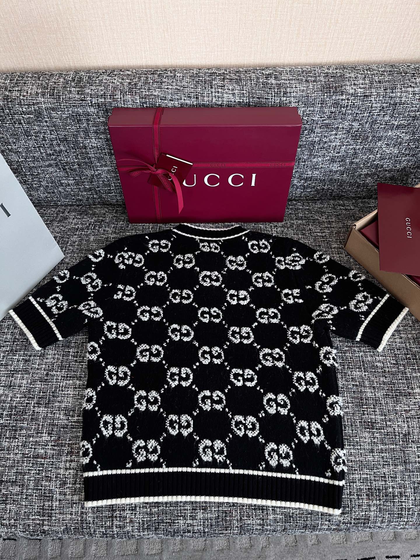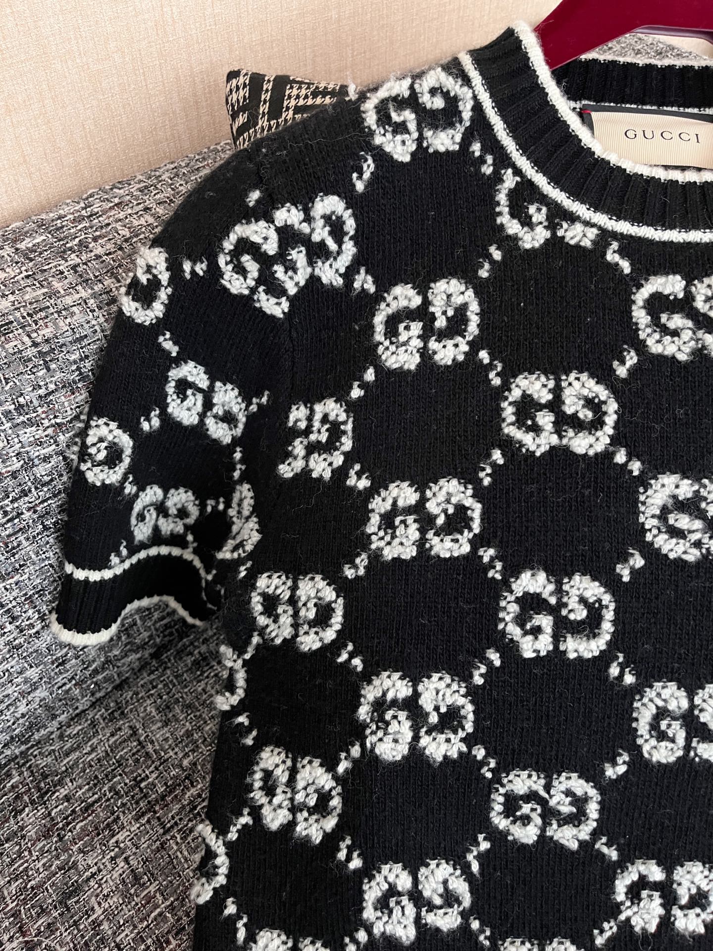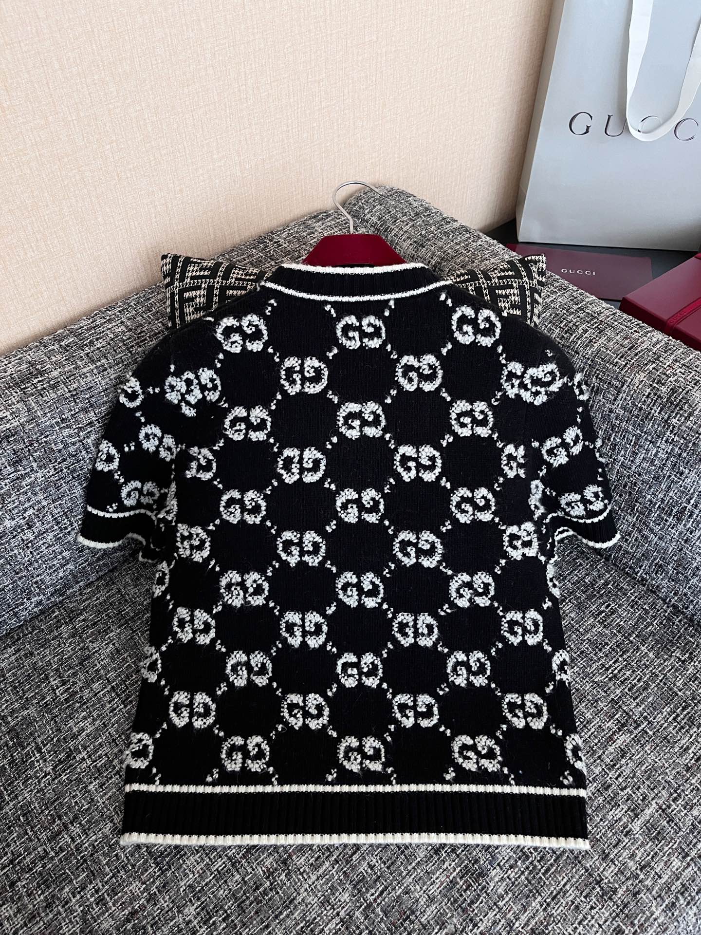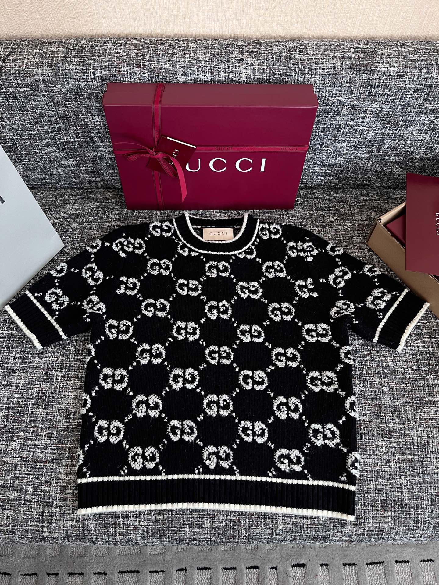 古驰25早春满提花短袖🐮9900购买Zp拆解打造,订织订染羊毛棉纱面料🐮真正用到原版订织纱线做到对版出货💪纹路放大看细节除还原度接近98以上 做工也无敌了🔥真正做到1:1还原 直接闭着眼购买👀码数:S M L