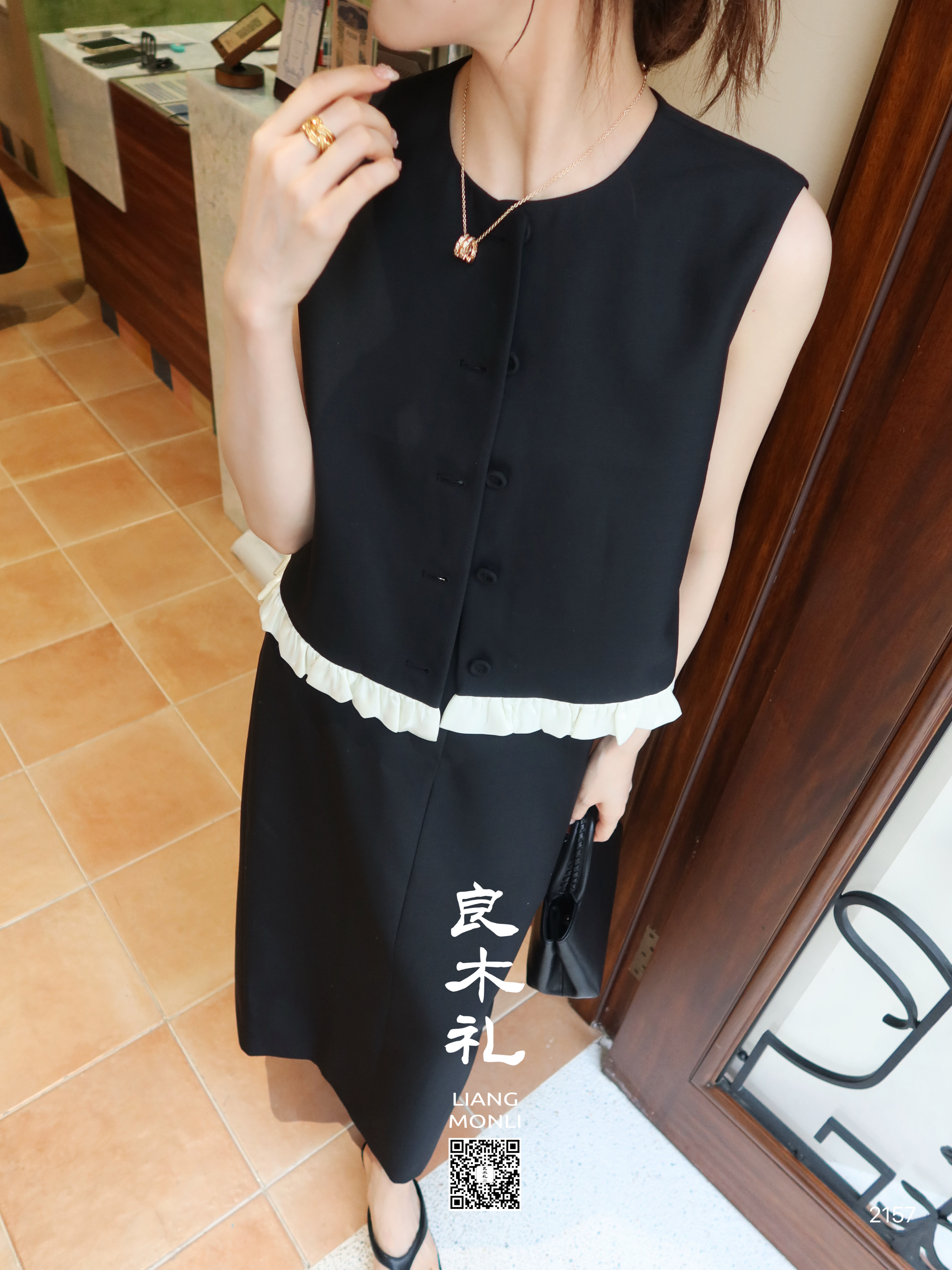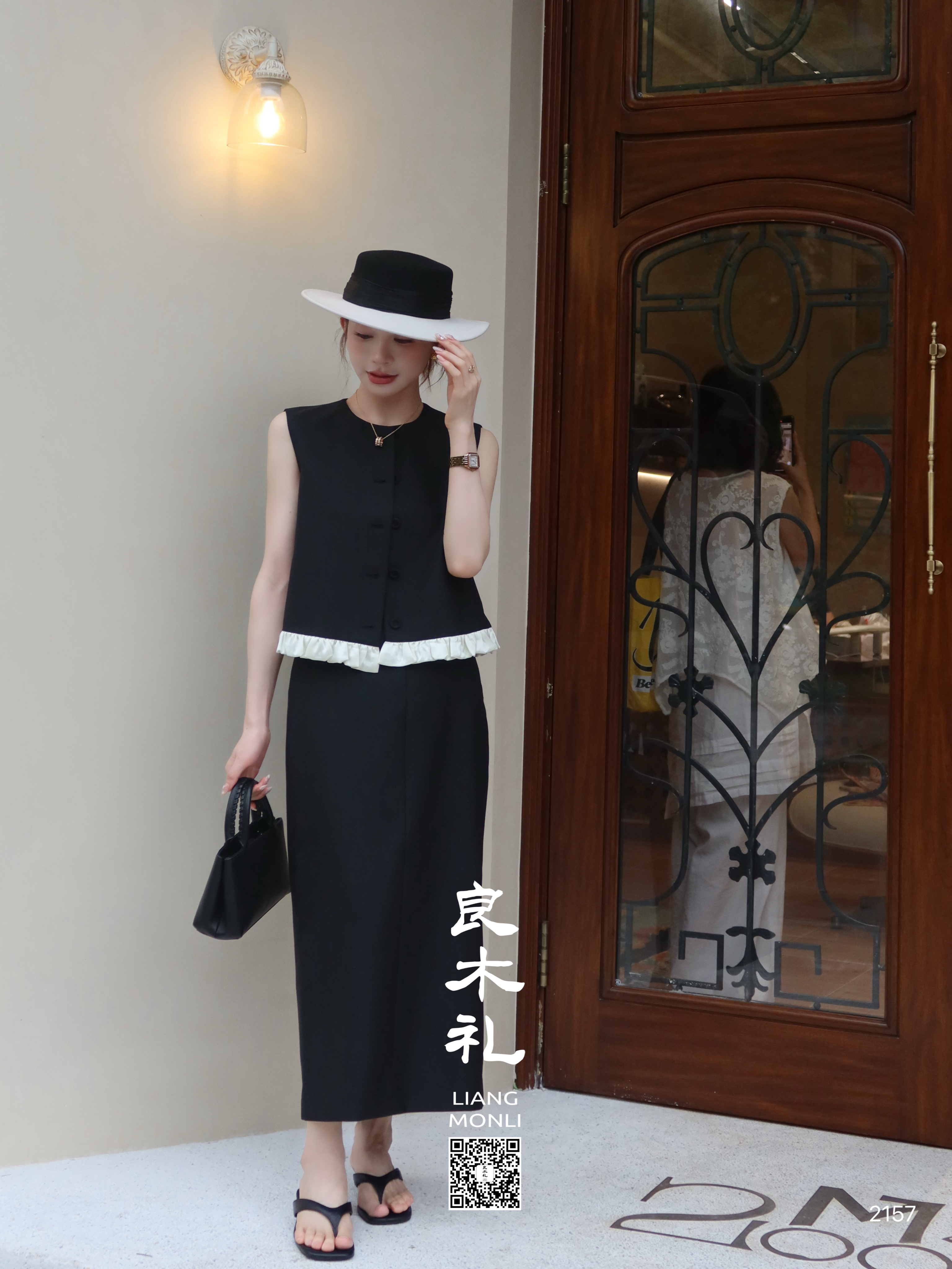 【预售7天】良木礼丝绒开叉半裙(黑绒绒)(Q2581130)