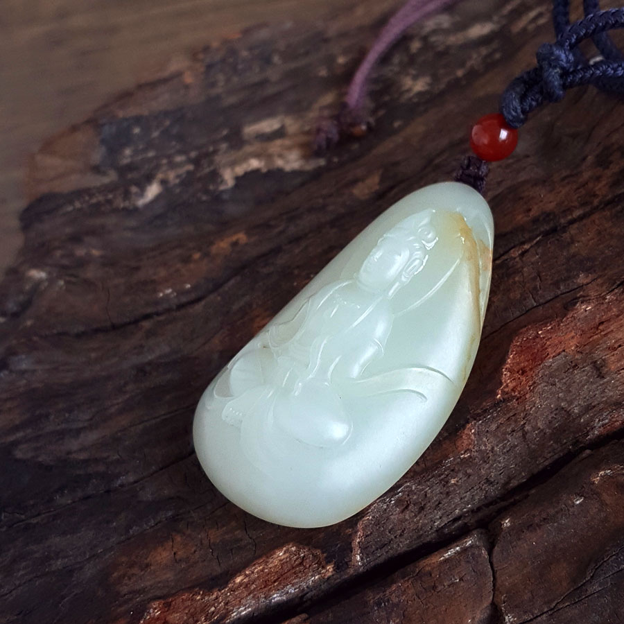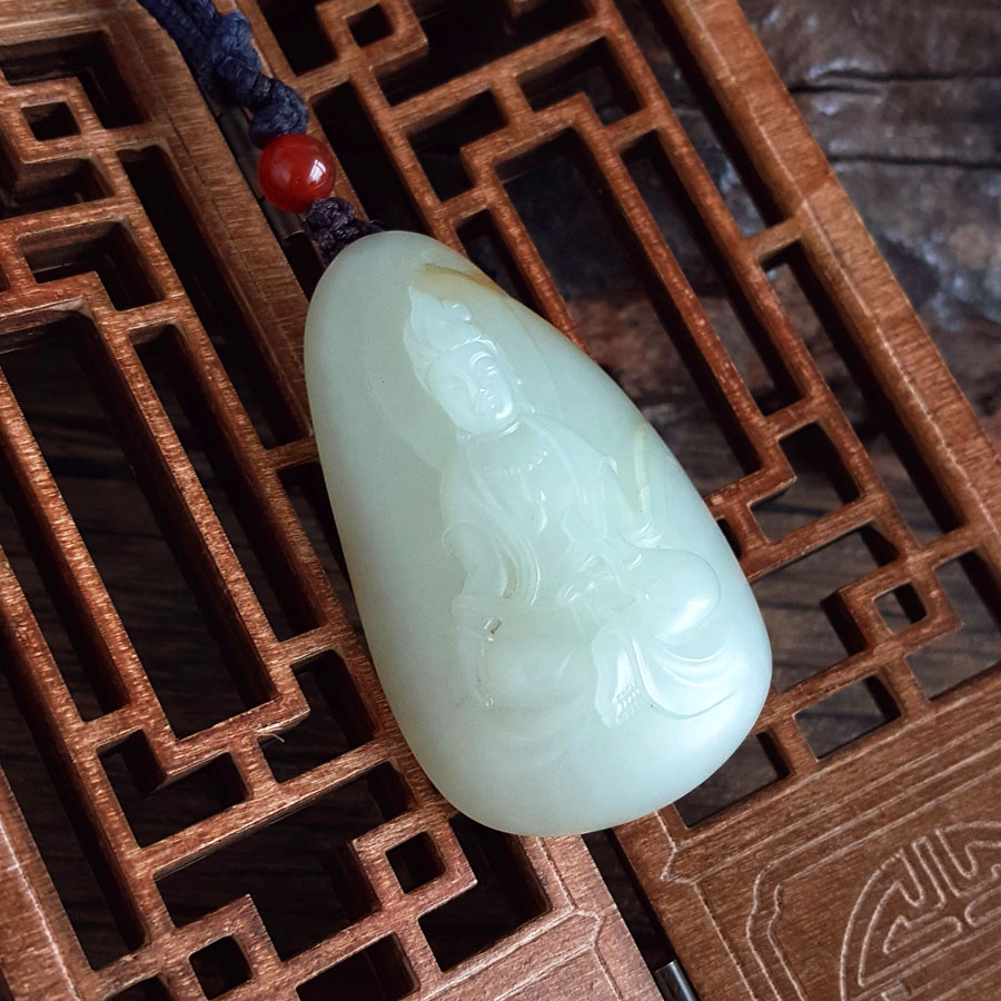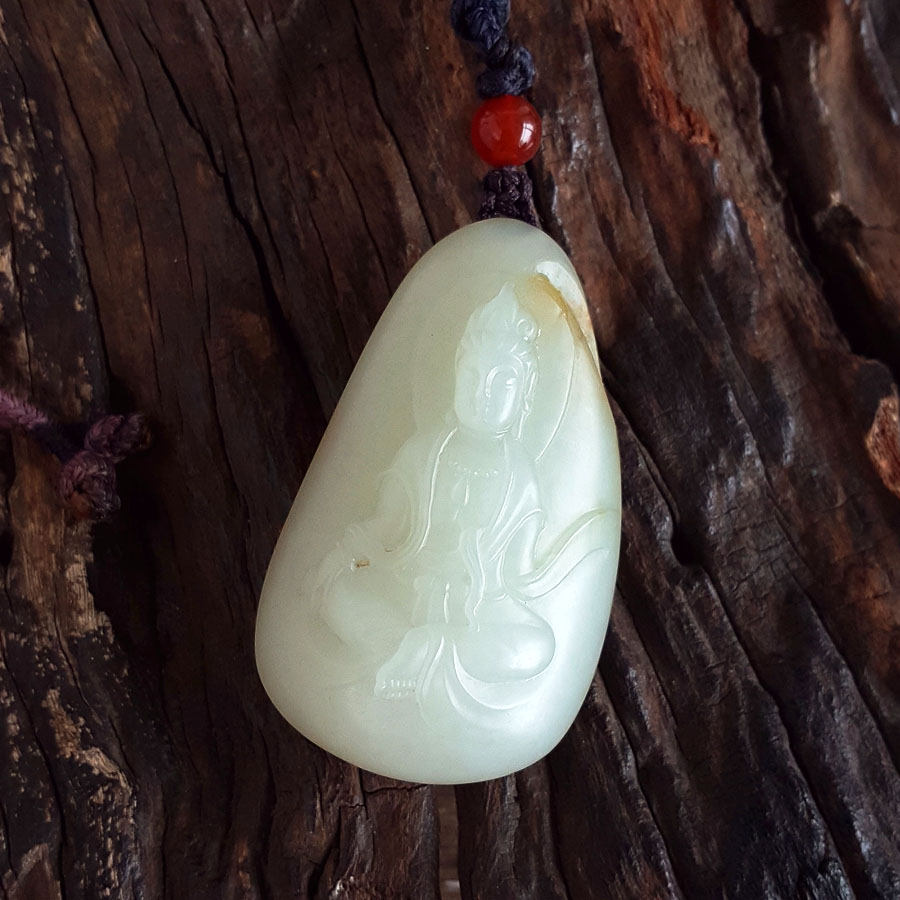 名称 | 天然精品新疆籽料细腻油润度佳观音和田玉吊坠项链 |