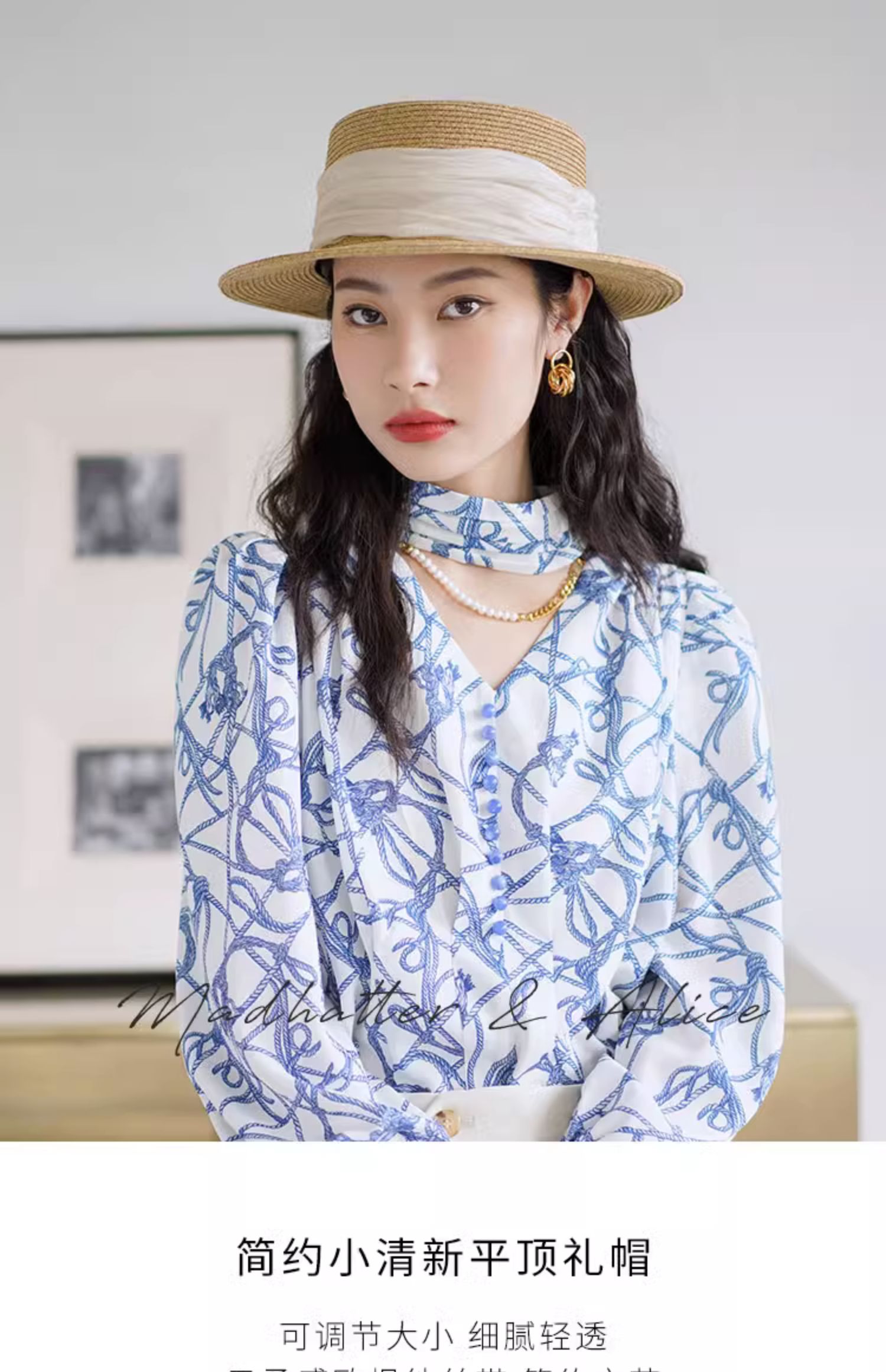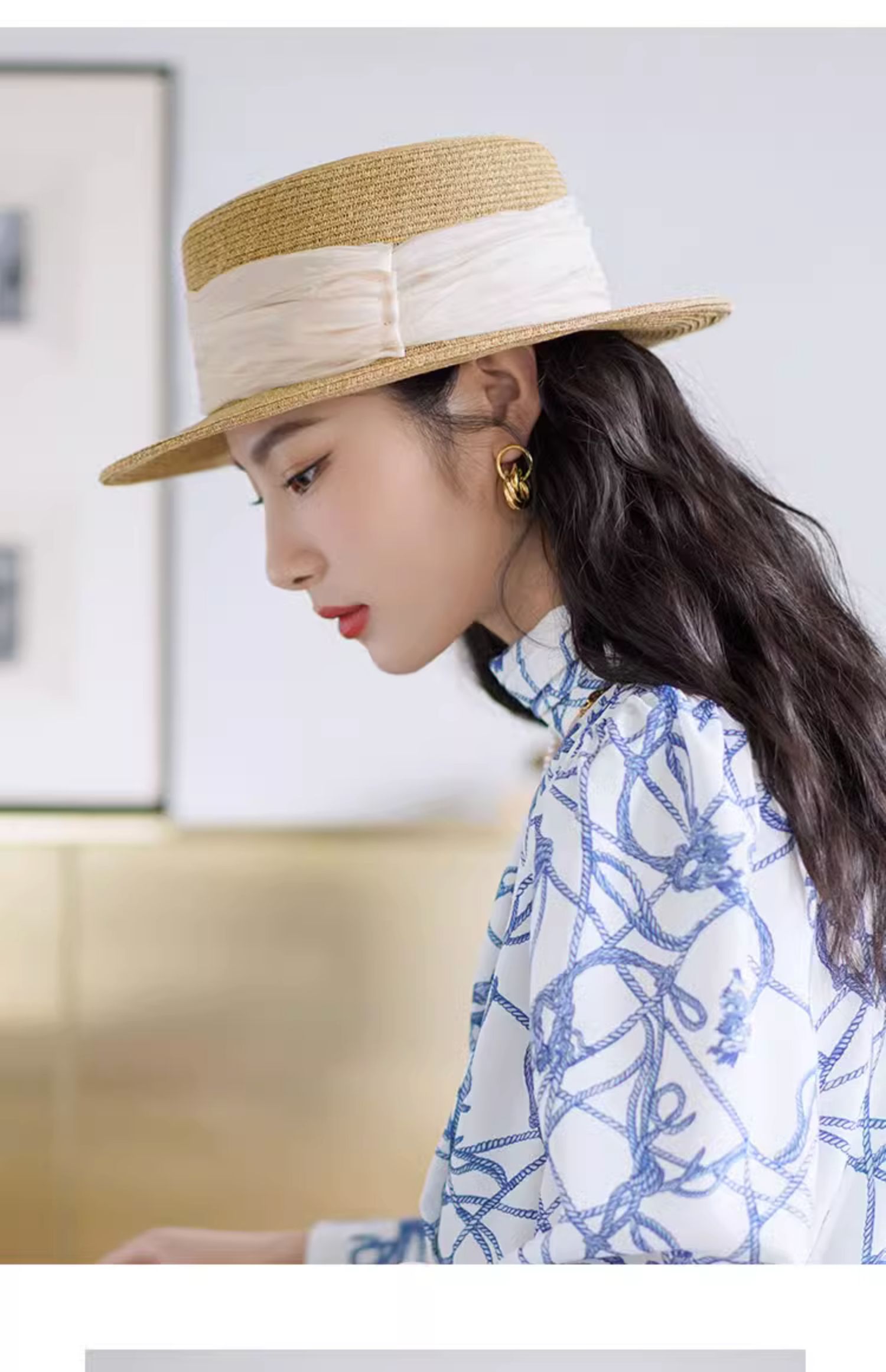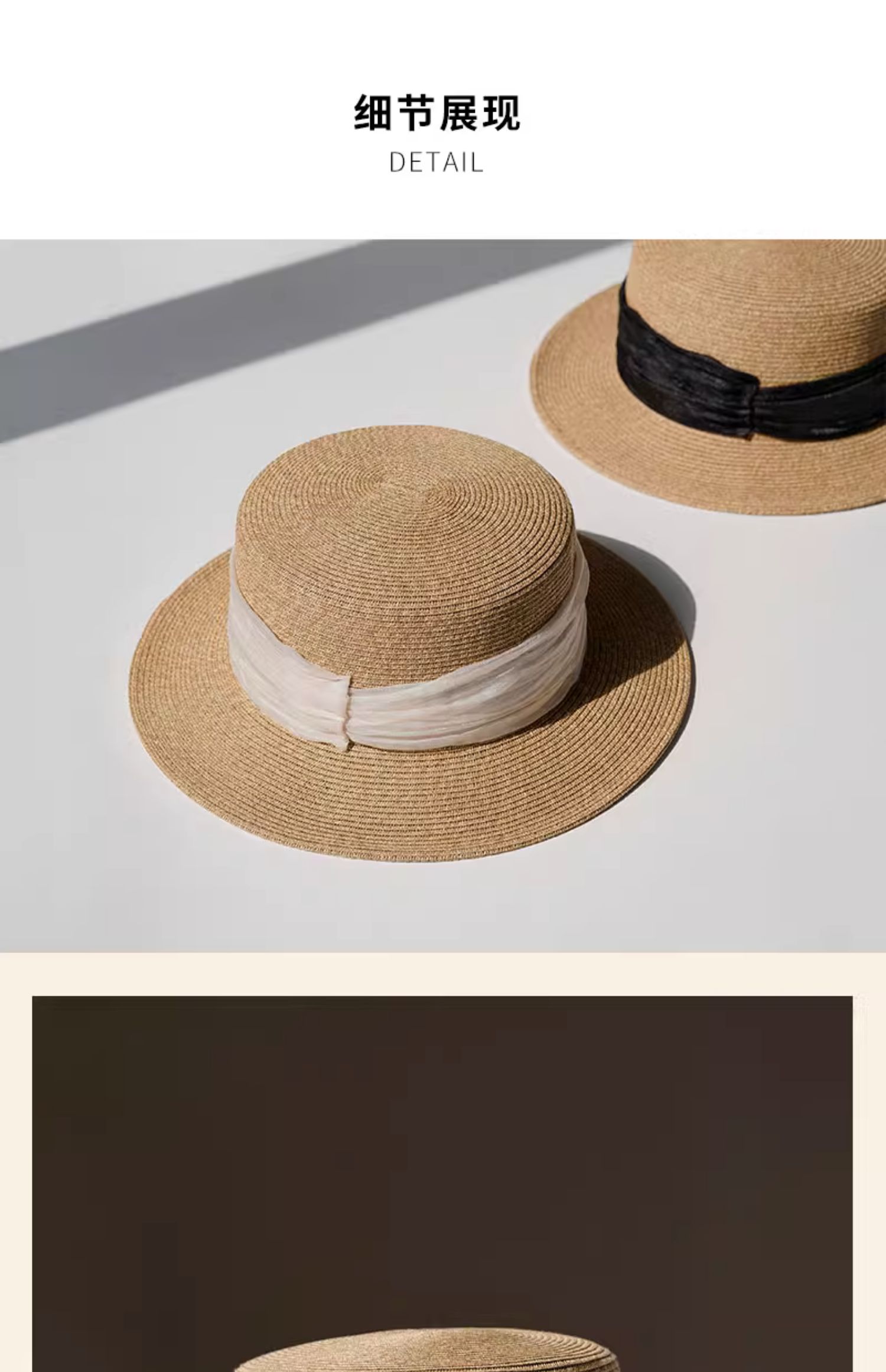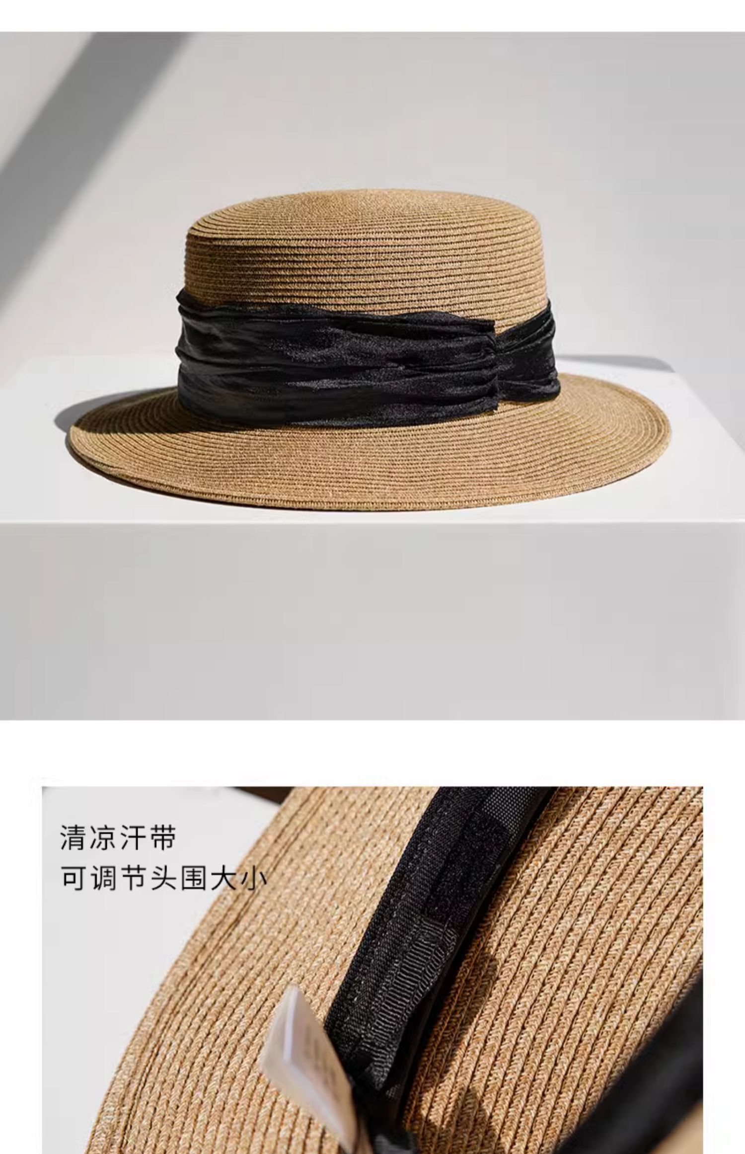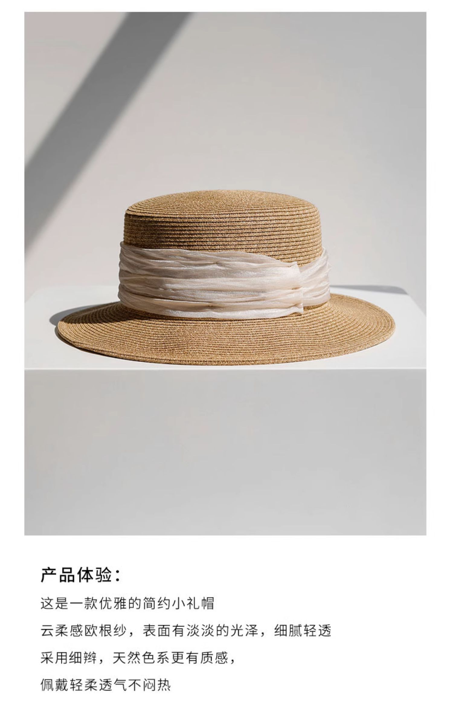 疯帽子 颜值系 夏季法式平顶礼帽遮阳草帽海边度假逛街 春夏