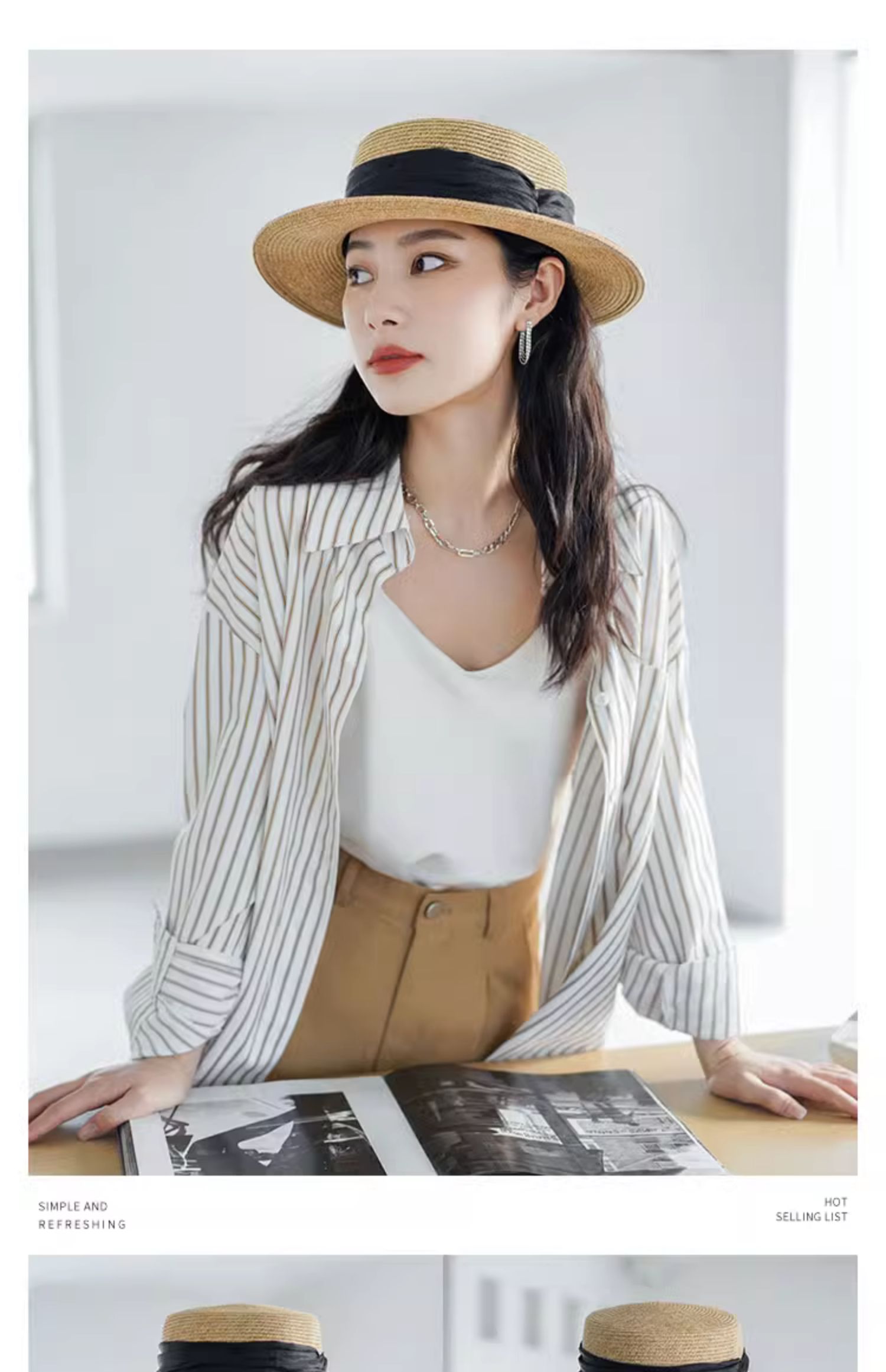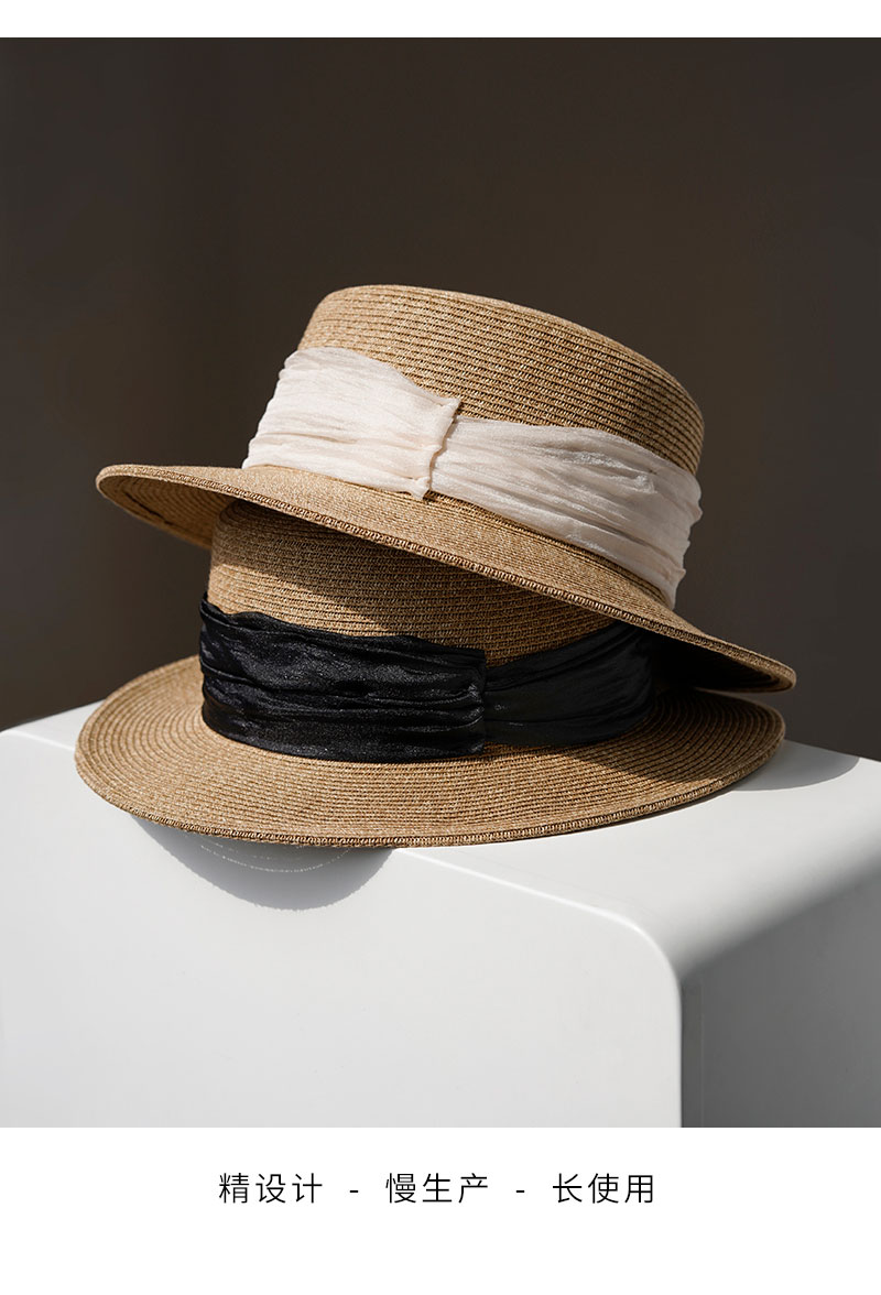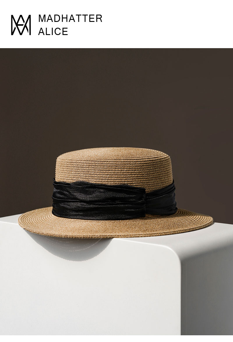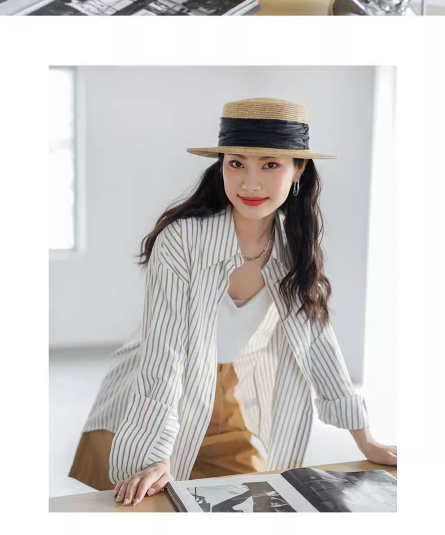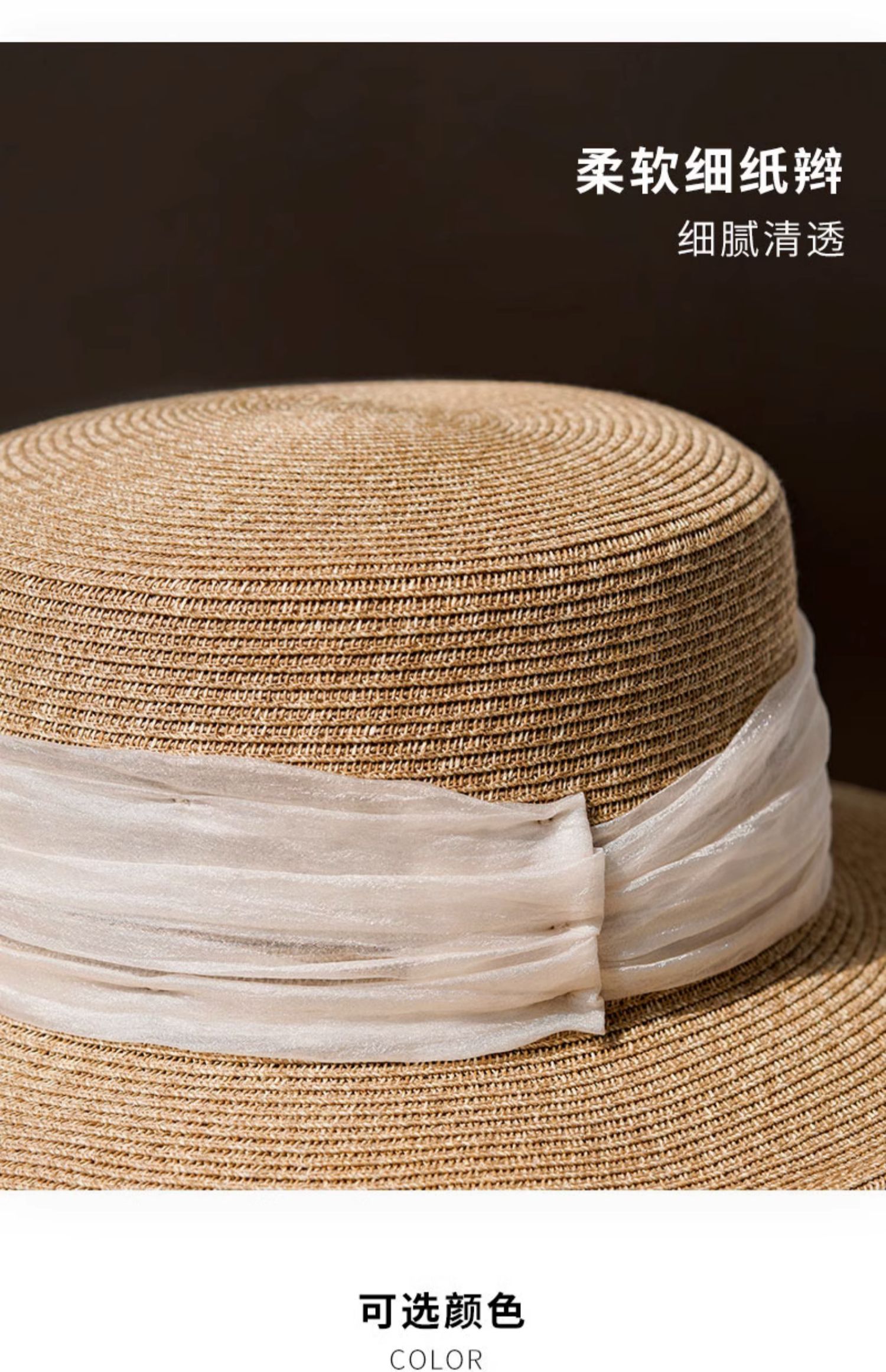 疯帽子 颜值系 夏季法式平顶礼帽遮阳草帽海边度假逛街 春夏