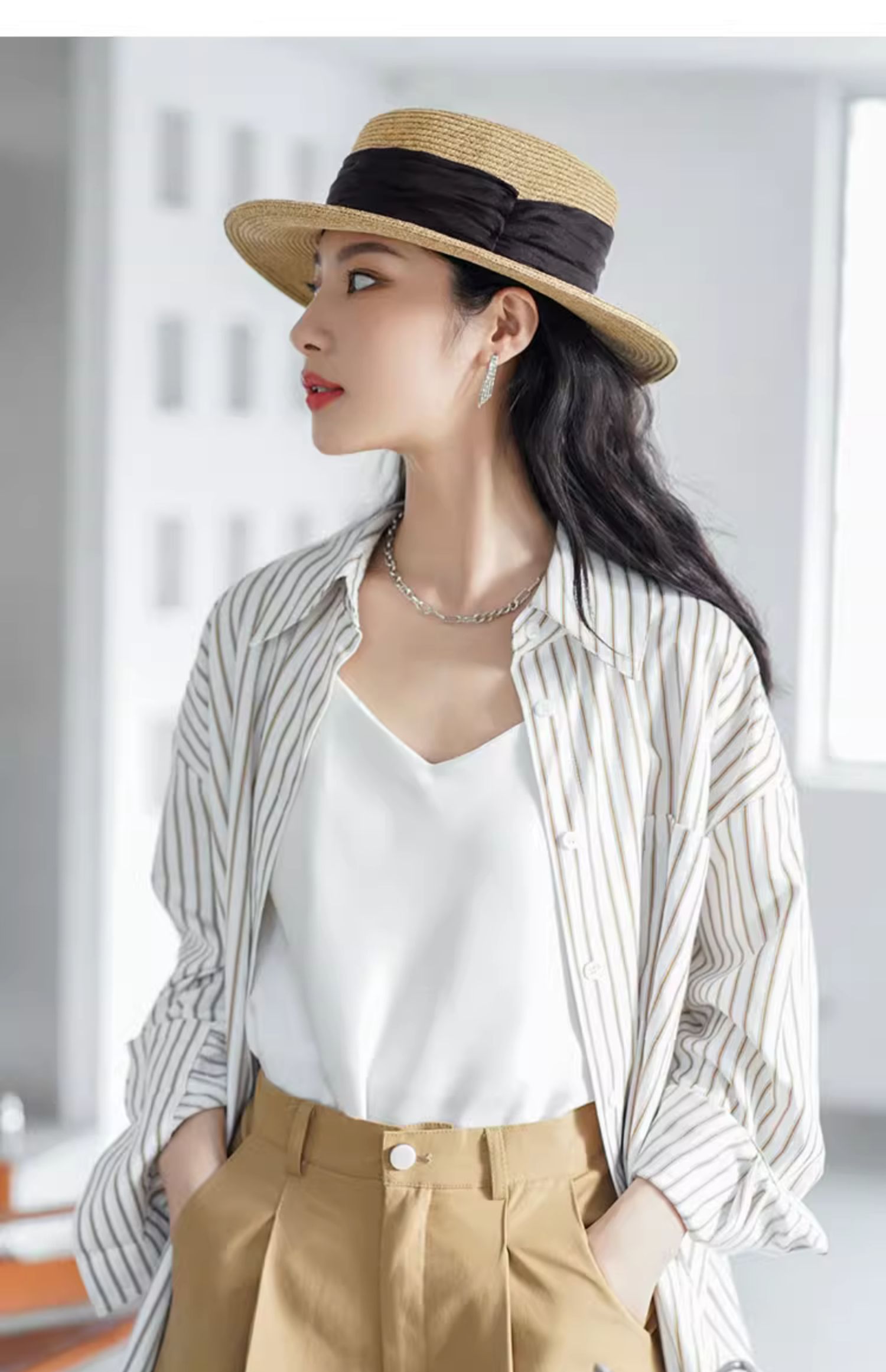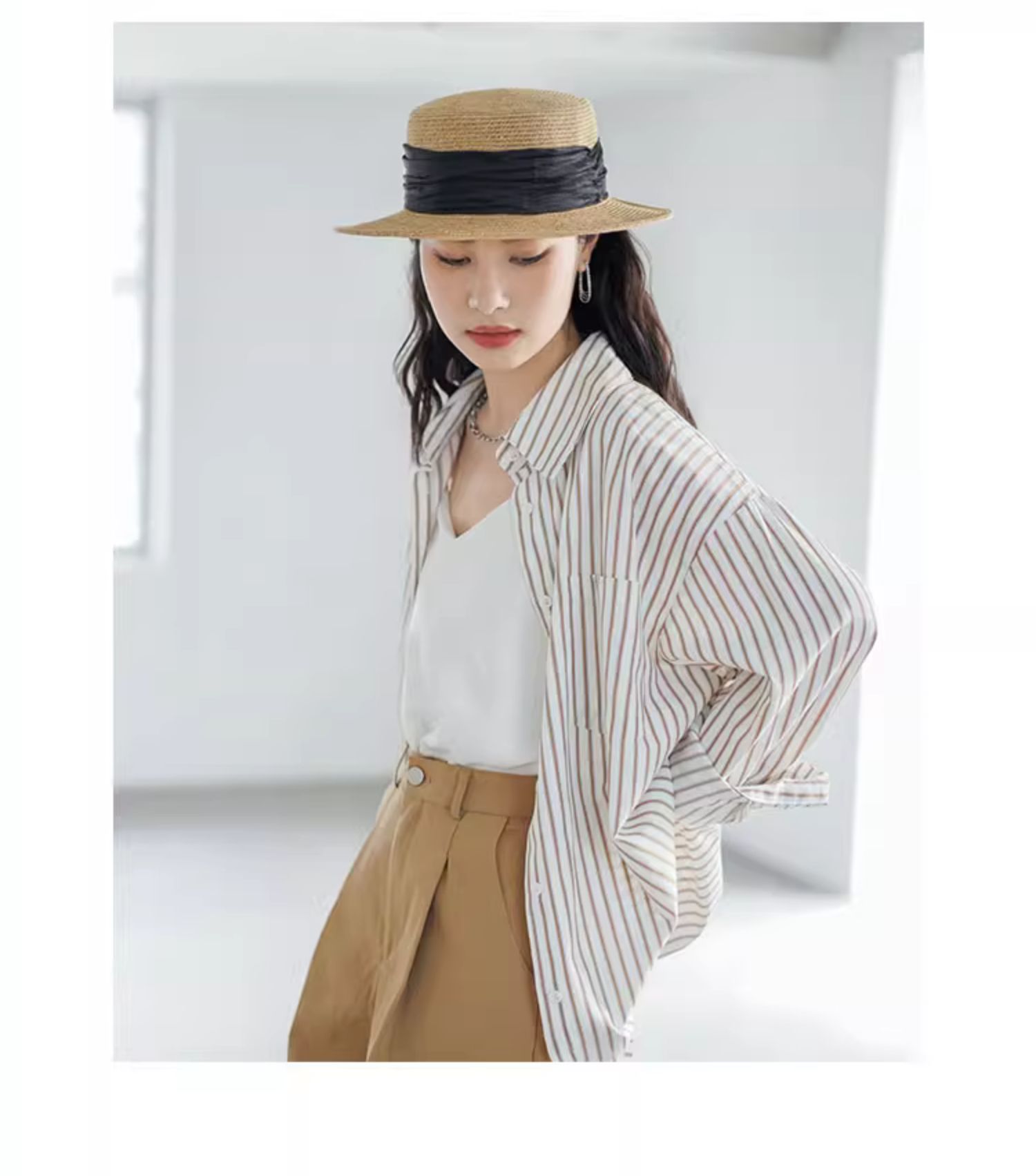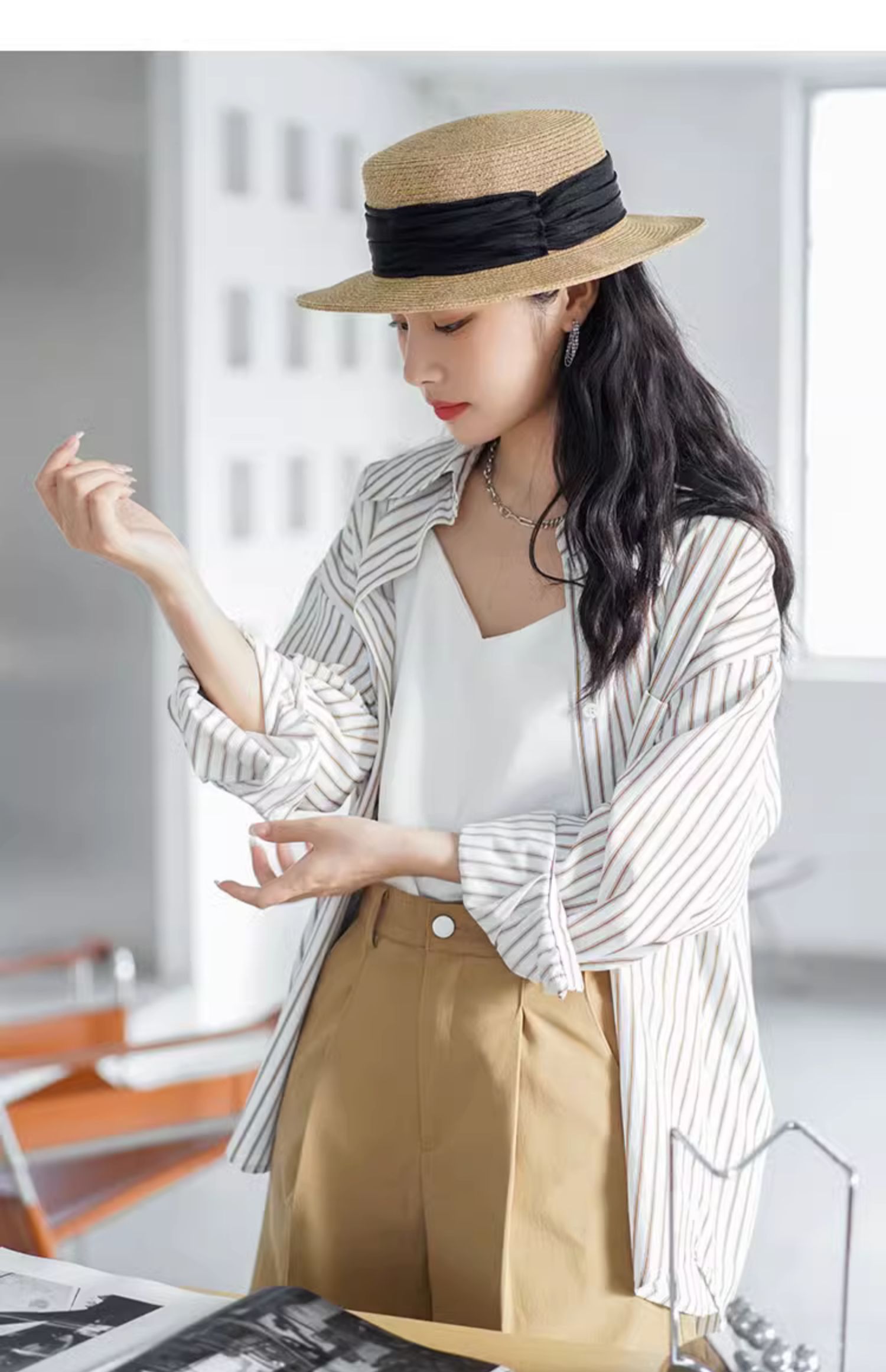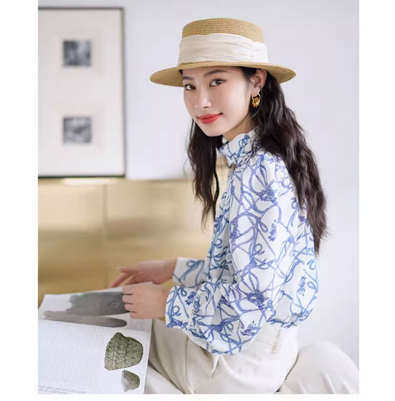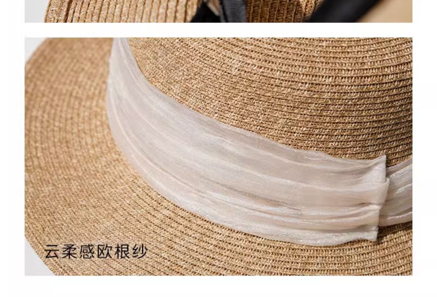 疯帽子 颜值系 夏季法式平顶礼帽遮阳草帽海边度假逛街 春夏