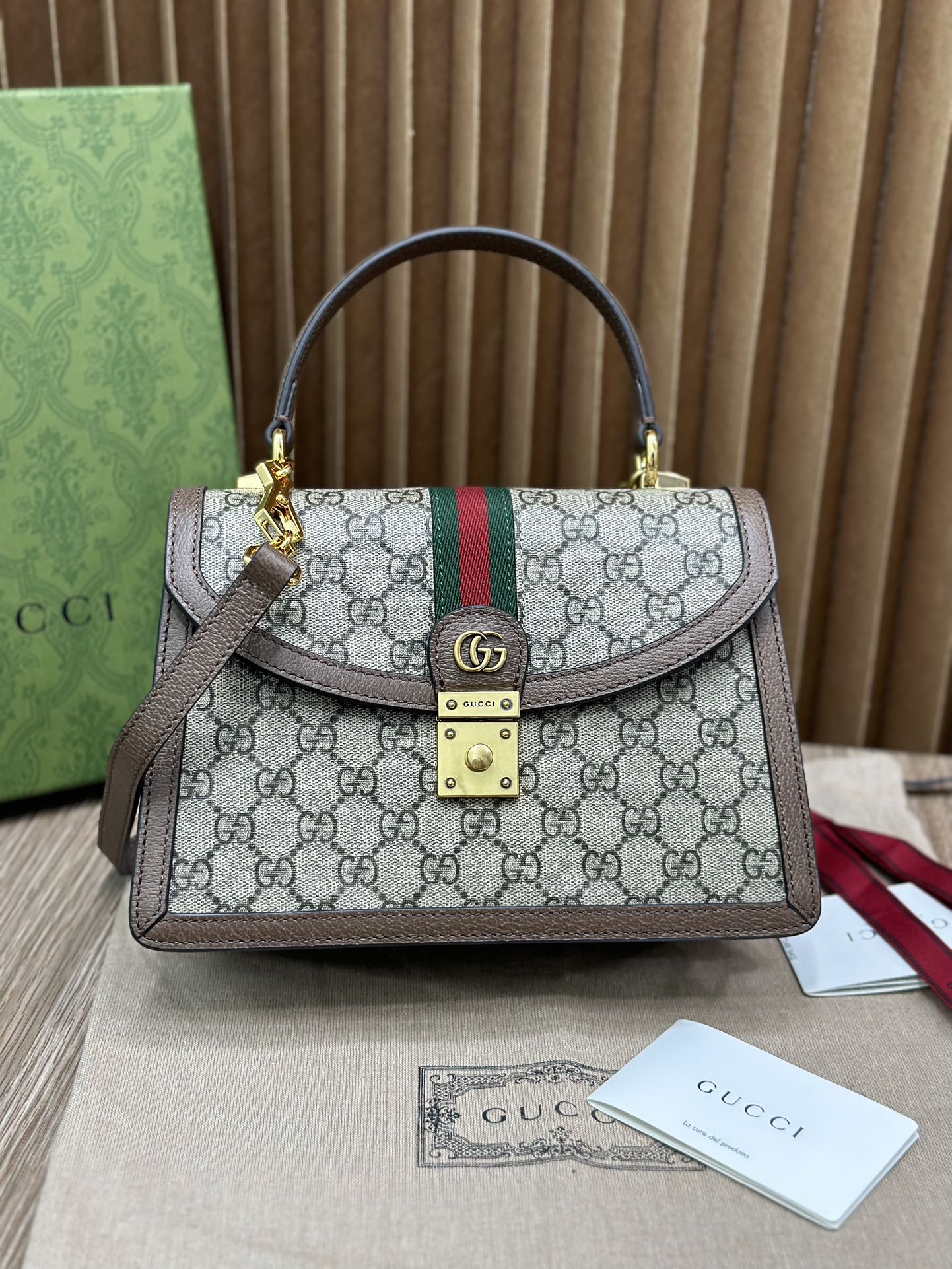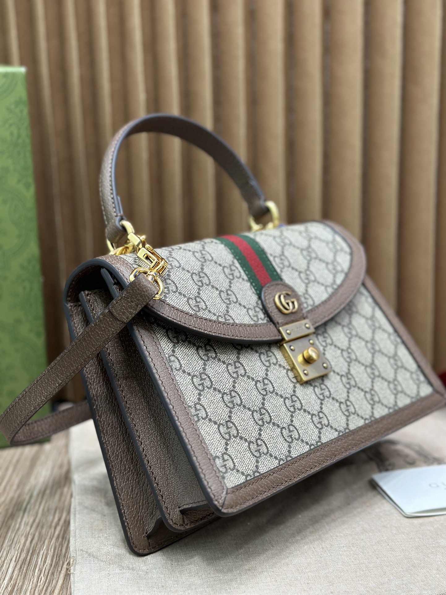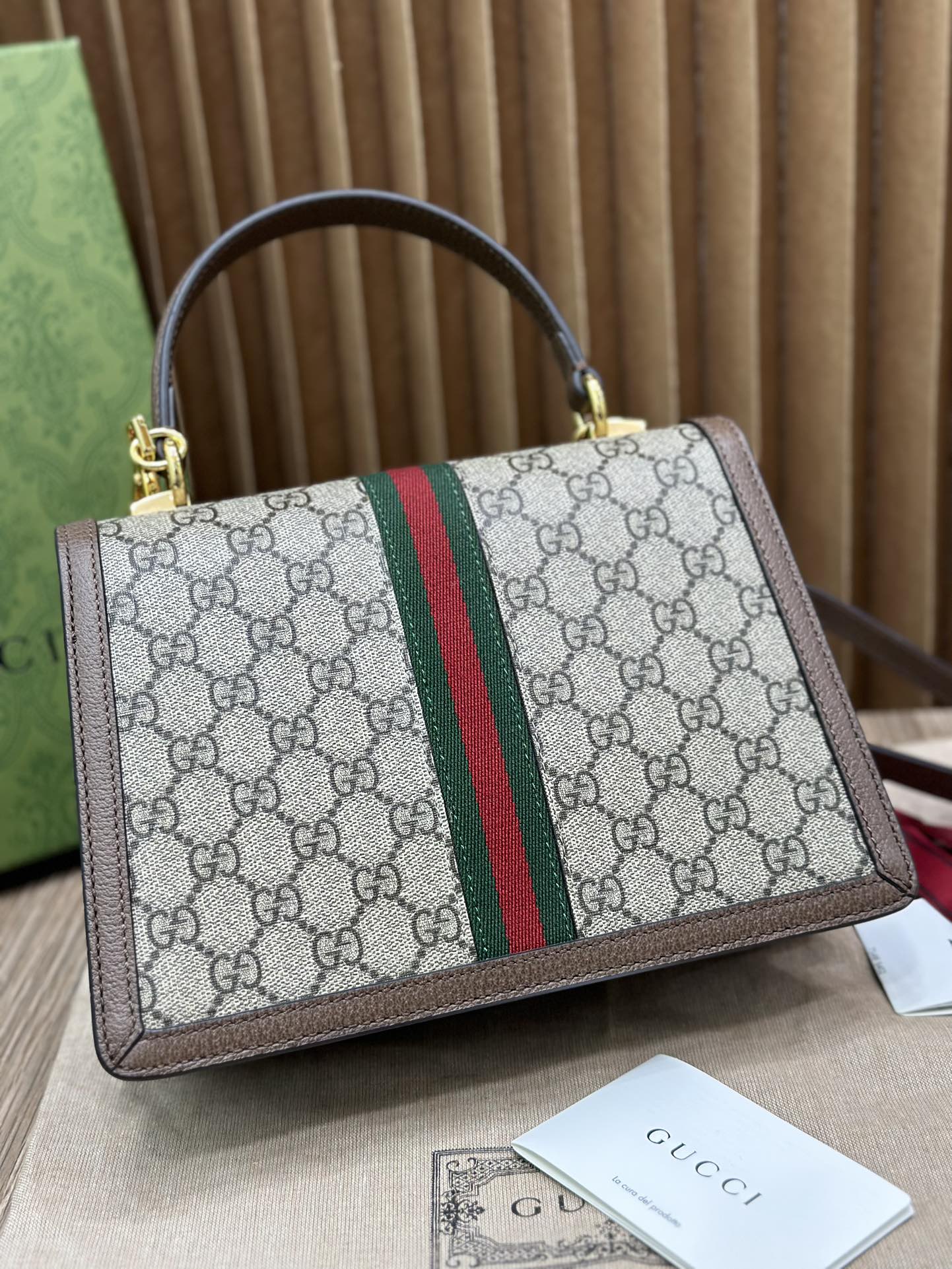 🔥Orphidia 经典的复古格调绝对是此系列难得适合各年龄段的款了Ophidia系列不断发展壮大,在每一季都会带来令人惊艳的新品。这款手提包是Epilogue系列中的一款,配有可拆卸肩带。方形复古造型融合品牌经典条纹织带和双G造型配件,该配件灵感源自70年代典藏腰带搭扣设计!型号651055 尺寸:25/17.5/7cm