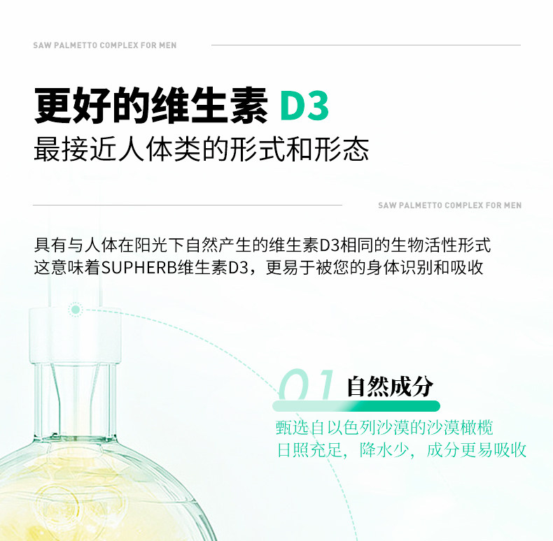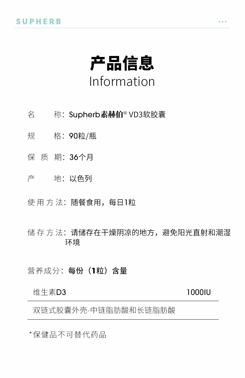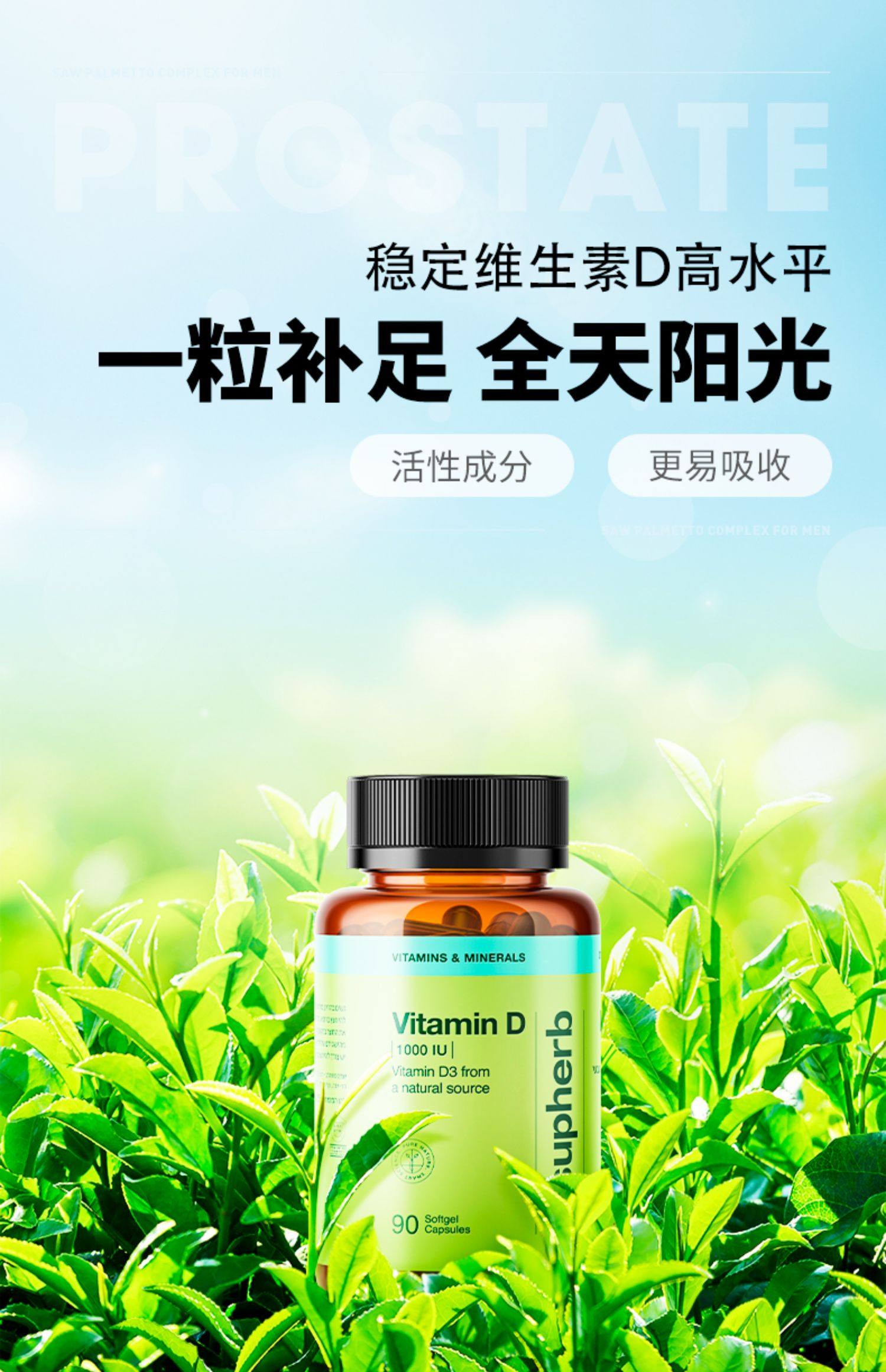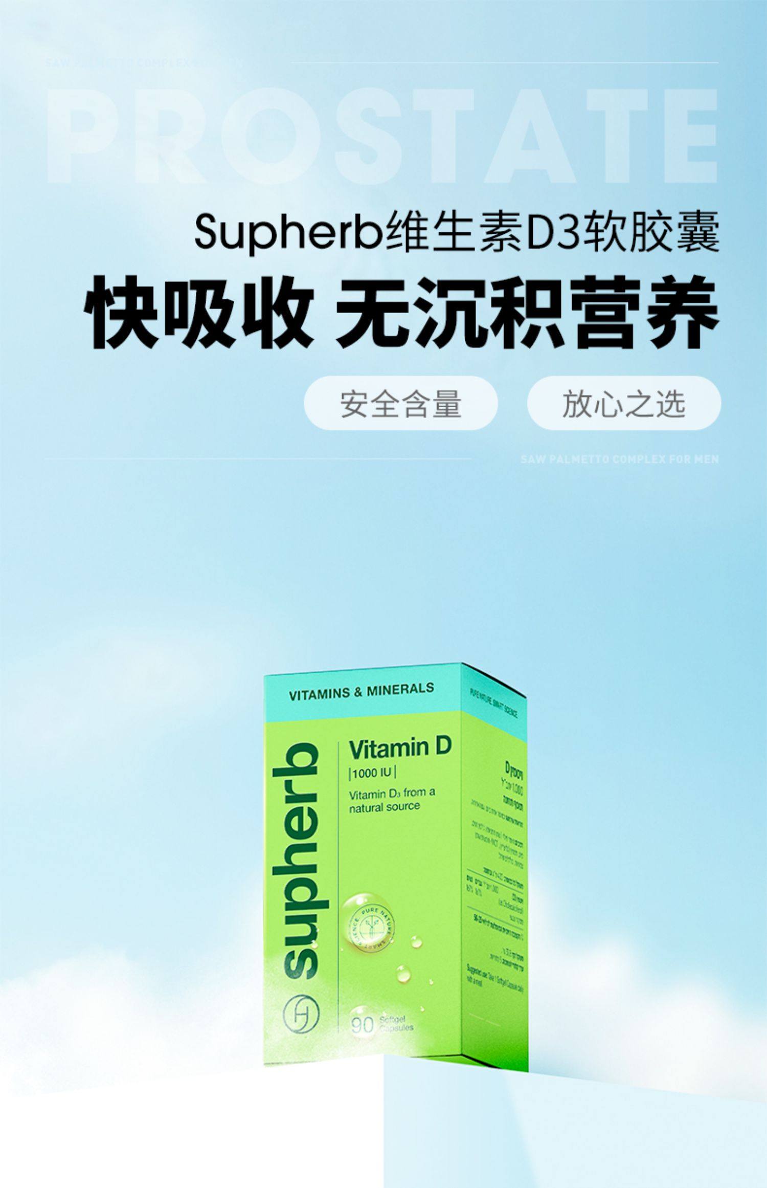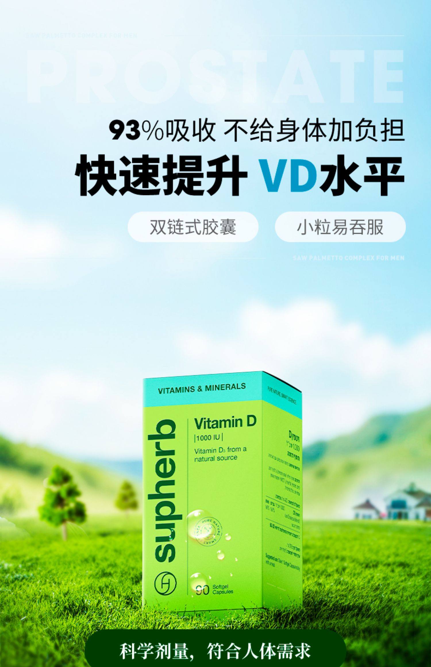 Supherb进口1000IU活性维生素D钙吸收软胶囊中老年补钙